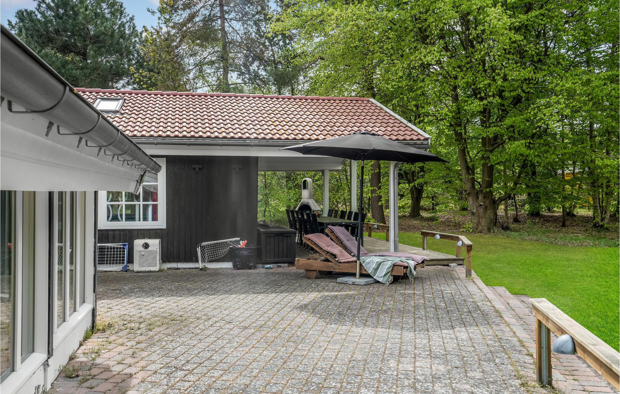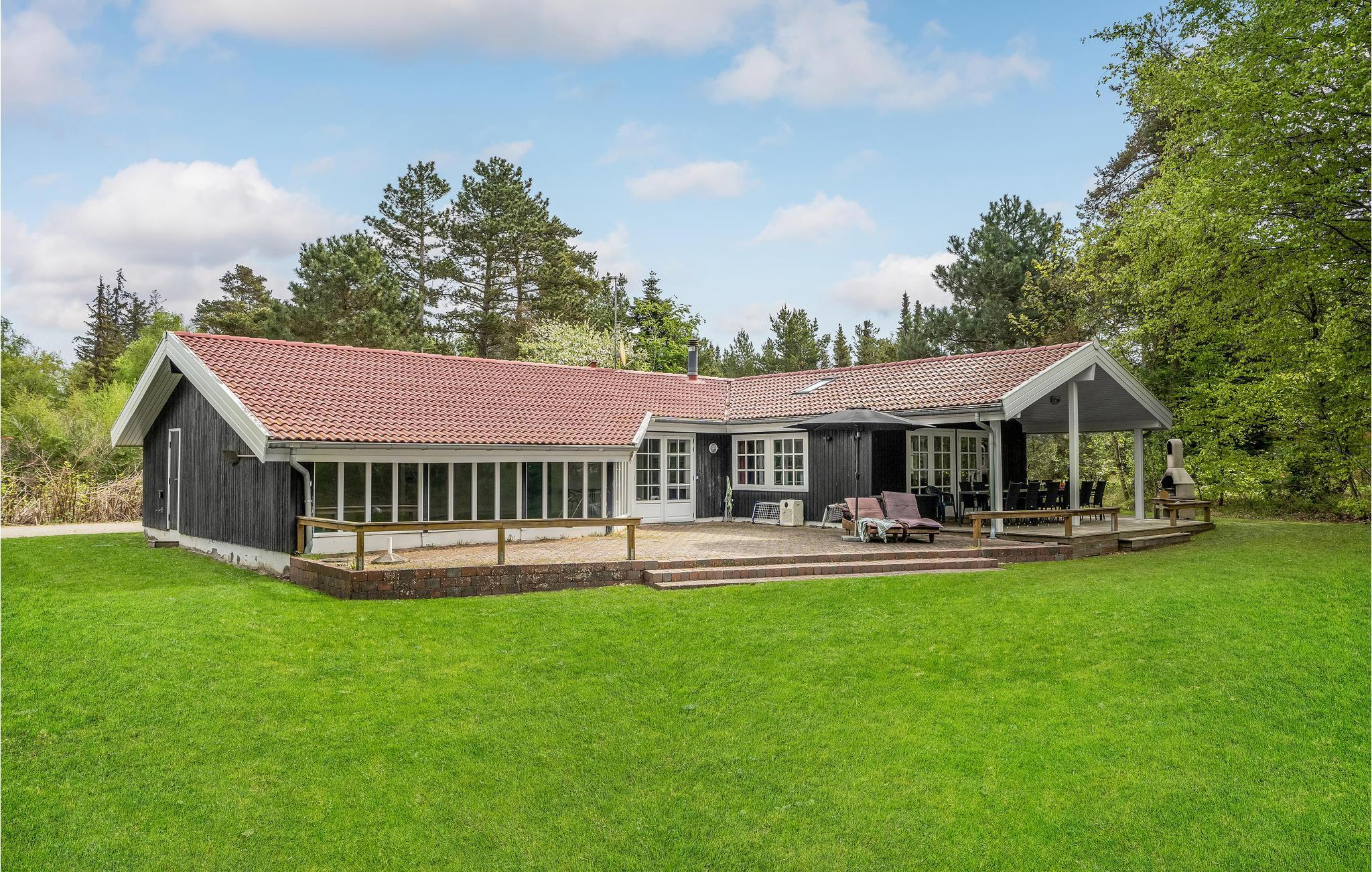 Skønt feriehus ved Hønsinge Lyng Strand med pool, sauna, legeplads og tæt på børnevenlig strand.