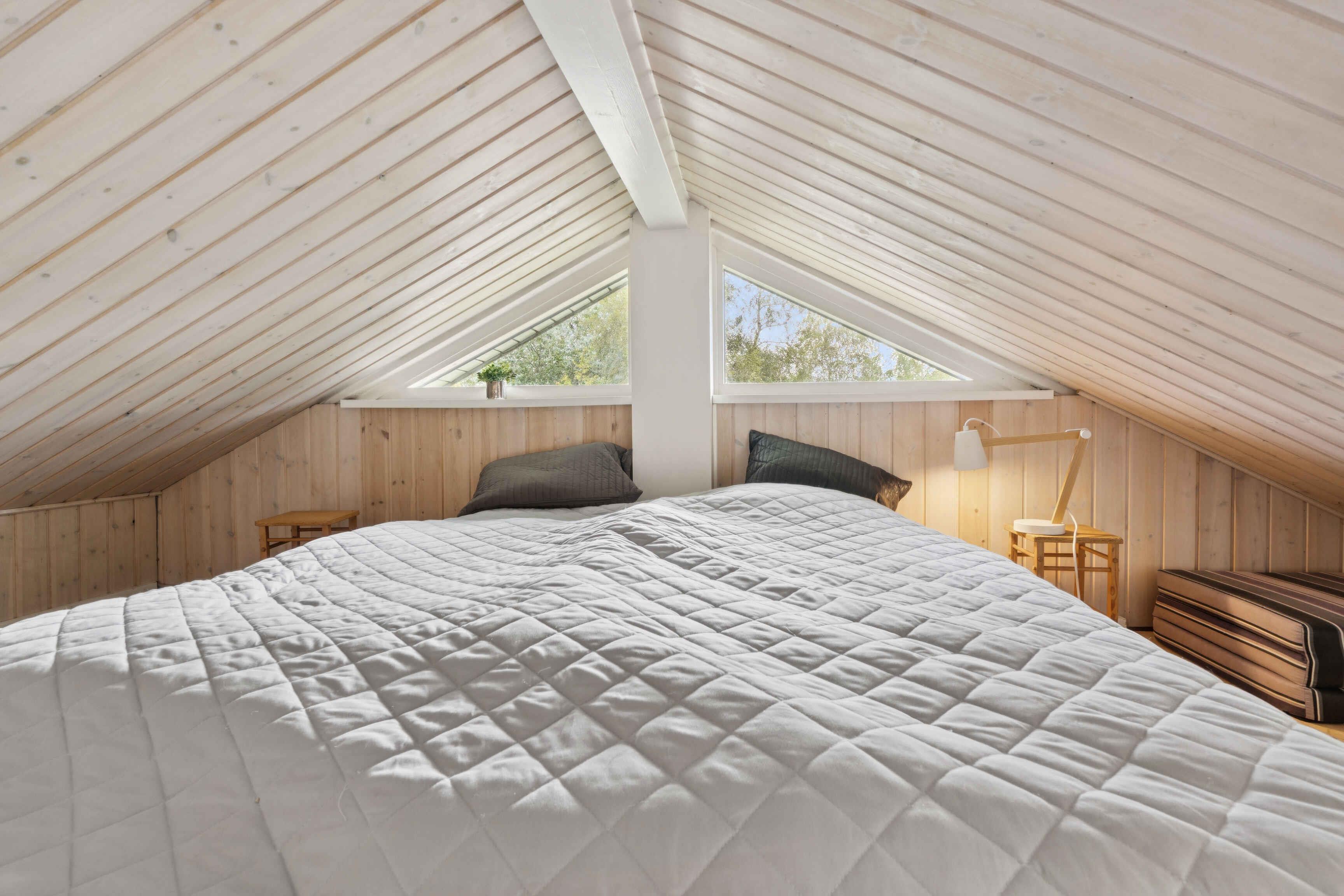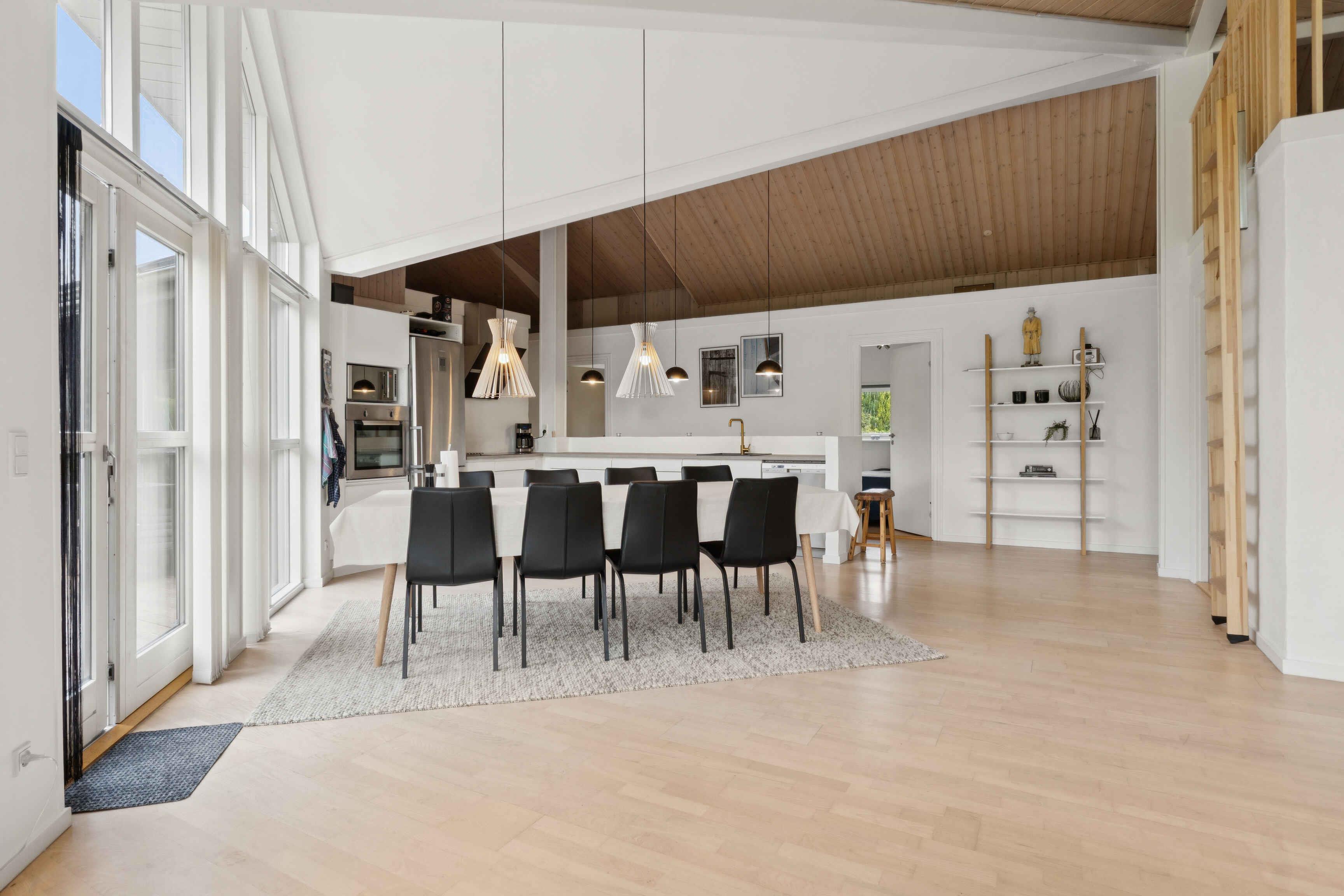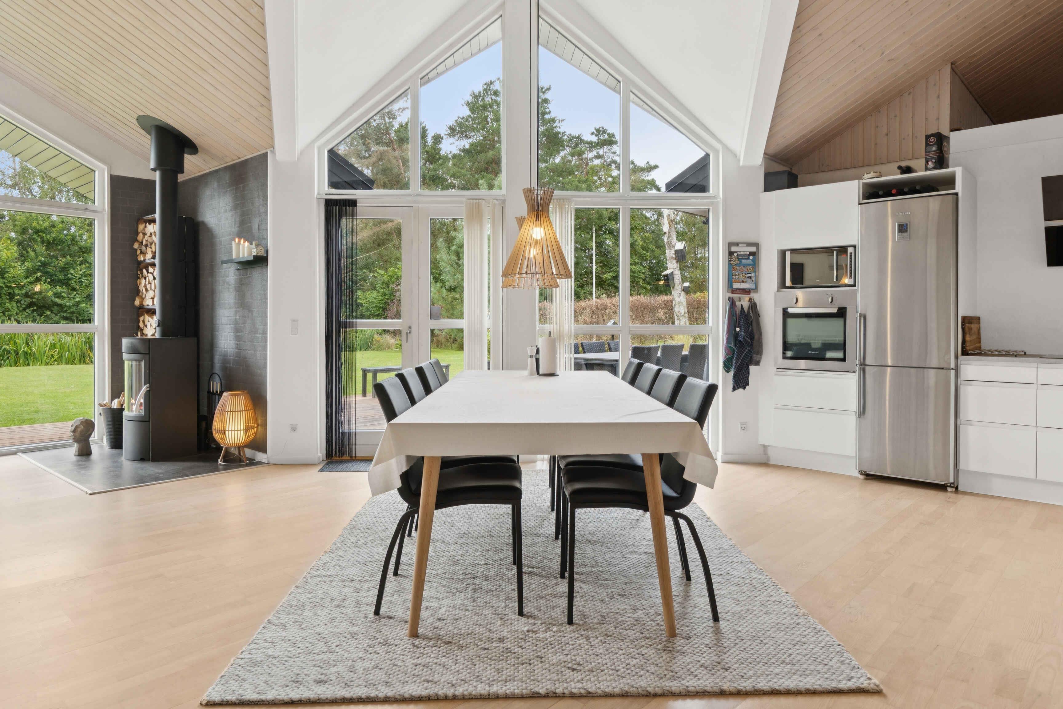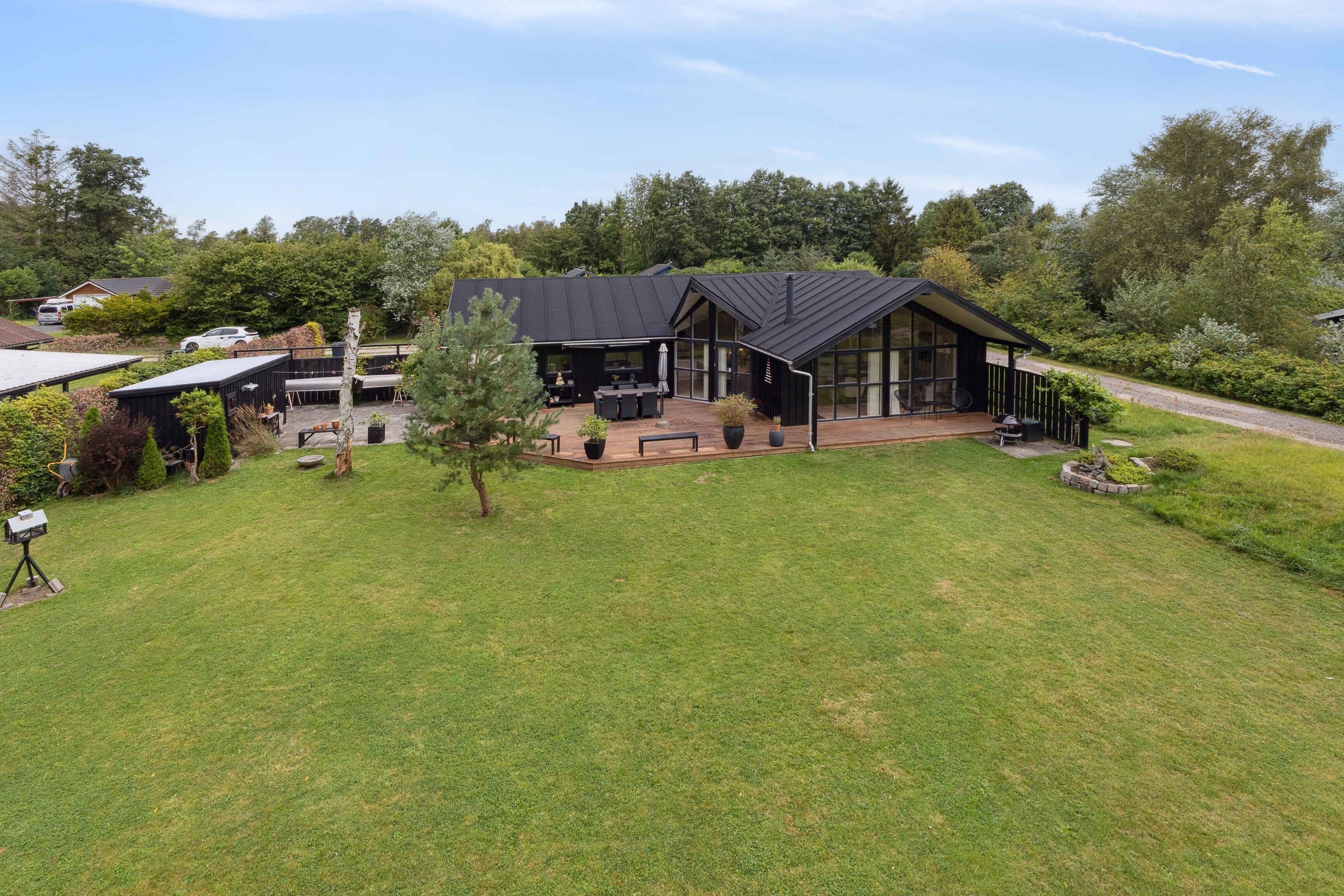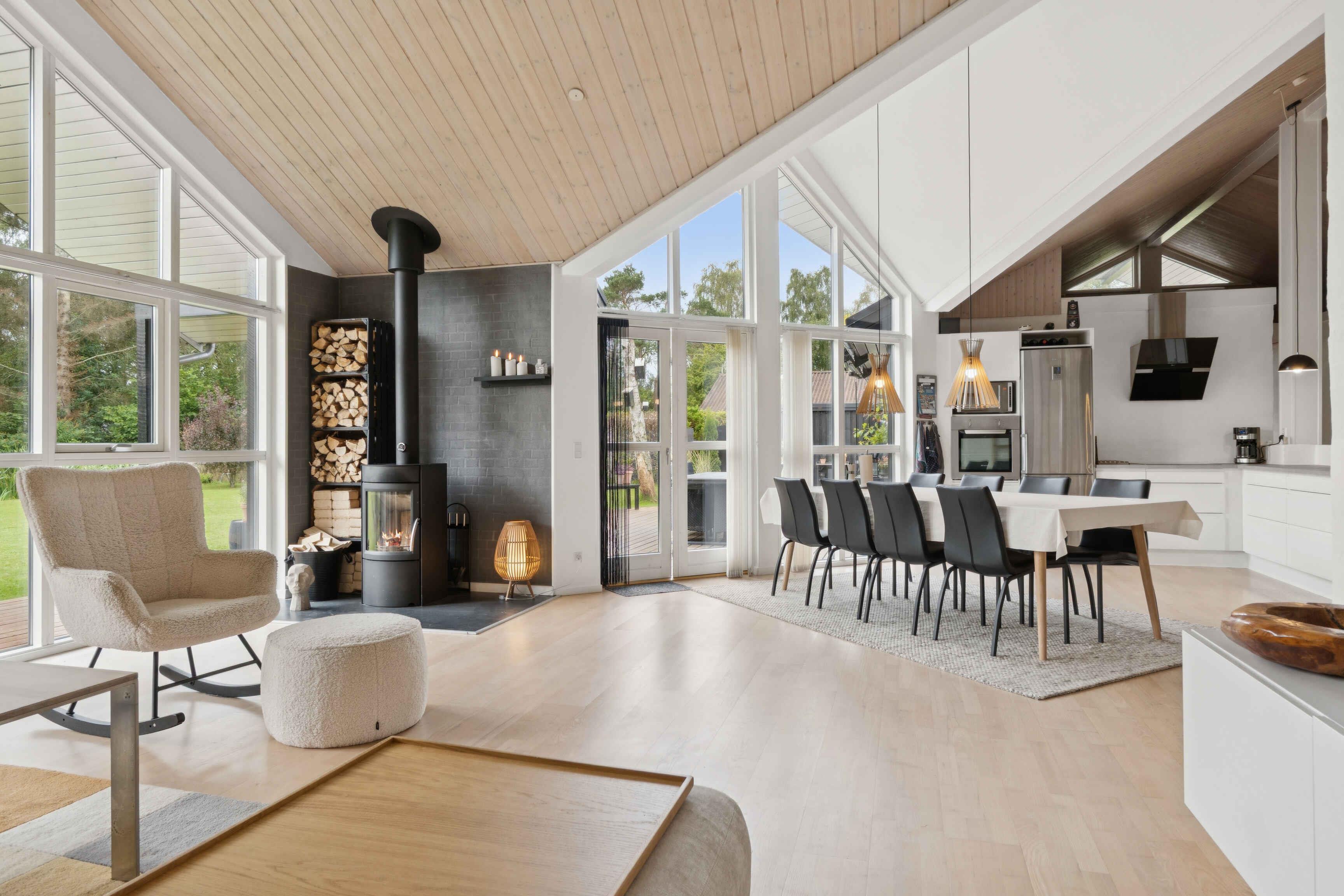 Dette feriehus, som kombinerer skandinavisk design med moderne komfort byder på 128 m² og rummer plads til fire personer. Der er syv soveværelser, hvoraf to pladser findes på en hems med dobbeltseng. Planløsningen er funktionel og gør huset oplagt til familien, der ønsker plads og gode rammer til ferien. Stuen har store vinduer, som giver et dejligt lysindfald og en åben forbindelse til køkkenet. Her kan måltiderne samles med udsigt til terrassen og haven. Der er brændeovn til de kølige aftener samt varmepumpe og internet, så komfort og praktiske behov er dækket. Udenfor venter en stor træterrasse med markise, hvor dagens måltider kan nydes, eller man kan finde ro efter aktiviteterne. Den korte afstand på 500 meter til vandet gør stranden let tilgængelig, både for en hurtig dukkert eller en afslappet gåtur. Ejendommen er omgivet af smukt anlagte haver, der blander "vild med vilje" områder med velholdte græsplæner og giver det bedste af begge verdener for naturelskere. Området er kendt for sine brede strande, som giver plads til både badning, leg og lange dage ved vandet. Naturen omkring Mariager Fjord og Kattegat indbyder til cykelture, vandreture og fuglekiggeri, mens kystlandskabet giver en særlig feriestemning. Byen Hadsund tilbyder indkøb, restauranter og små butikker, og herfra er det nemt at tage på udflugter. Nærheden til skov og strand gør området oplagt for gæster, der vil kombinere afslapning med aktivitet. Her kan man opleve både ro og variation i ferien. Flere familievenlige attraktioner ligger inden for overskuelig køreafstand, hvilket gør huset til en god base for både korte og længere ophold. Her er det let at skabe en ferie, hvor der er tid til både fælles oplevelser og afslappende stunder. Vi købte sommerhuset i sommeren 2025, da vi ønskede et fristed hvor vi kunne finde ro, samt havde en fornemmelse af luft og natur. Det har vi fundet i Helberskov, og vi håber I vil have samme følelse når I lejer vores hus. Samlet set giver huset en rummelig ramme med lys, terrasse og nærhed til vandet. Et sted, hvor strand, natur og gode faciliteter går hånd i hånd. Som en ekstra bonus har gæsterne mulighed for at leje eller låne kano af ejerne, hvilket gør det nemt at udforske de lokale vandveje og tilføje et ekstra element af eventyr til jeres ophold.
