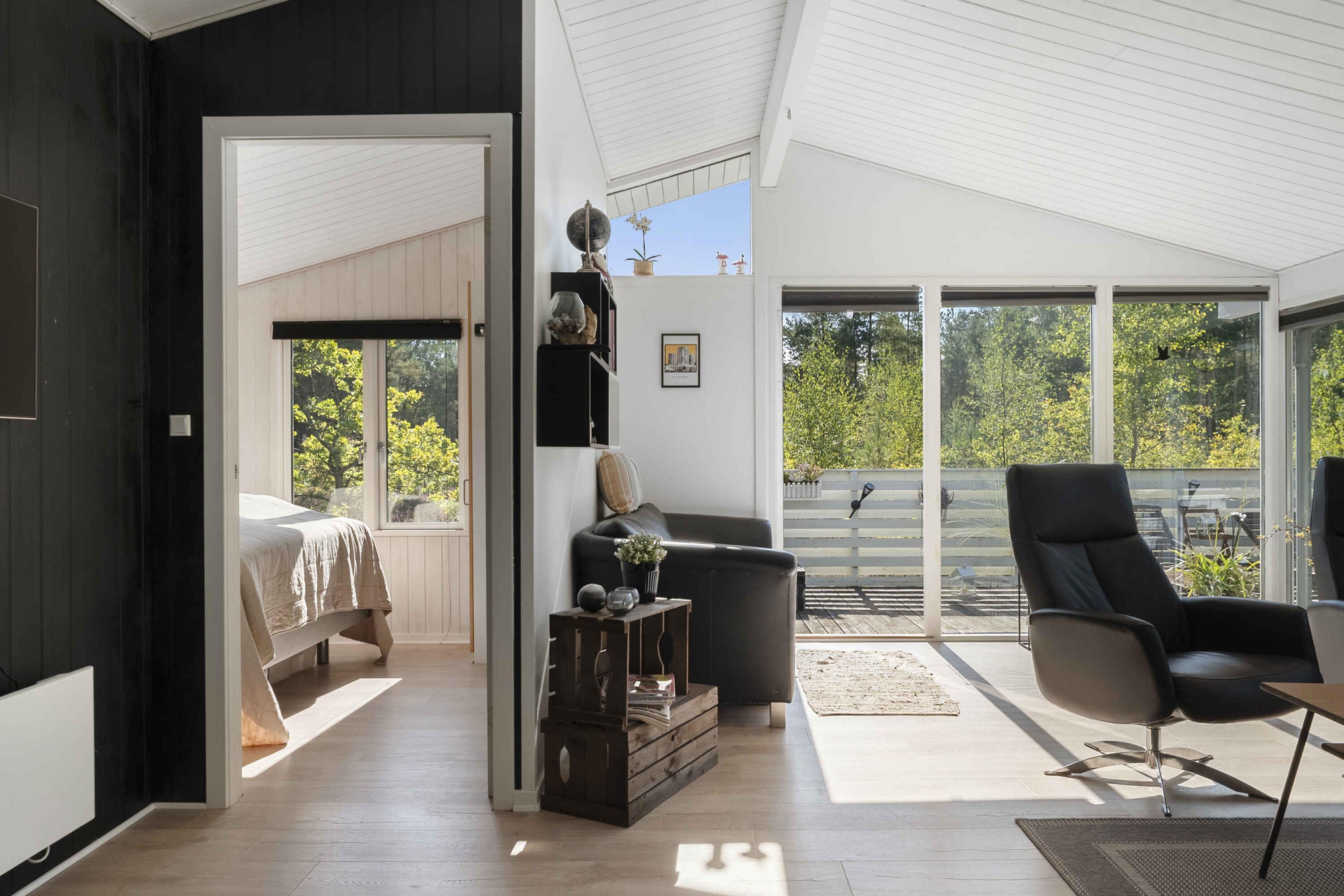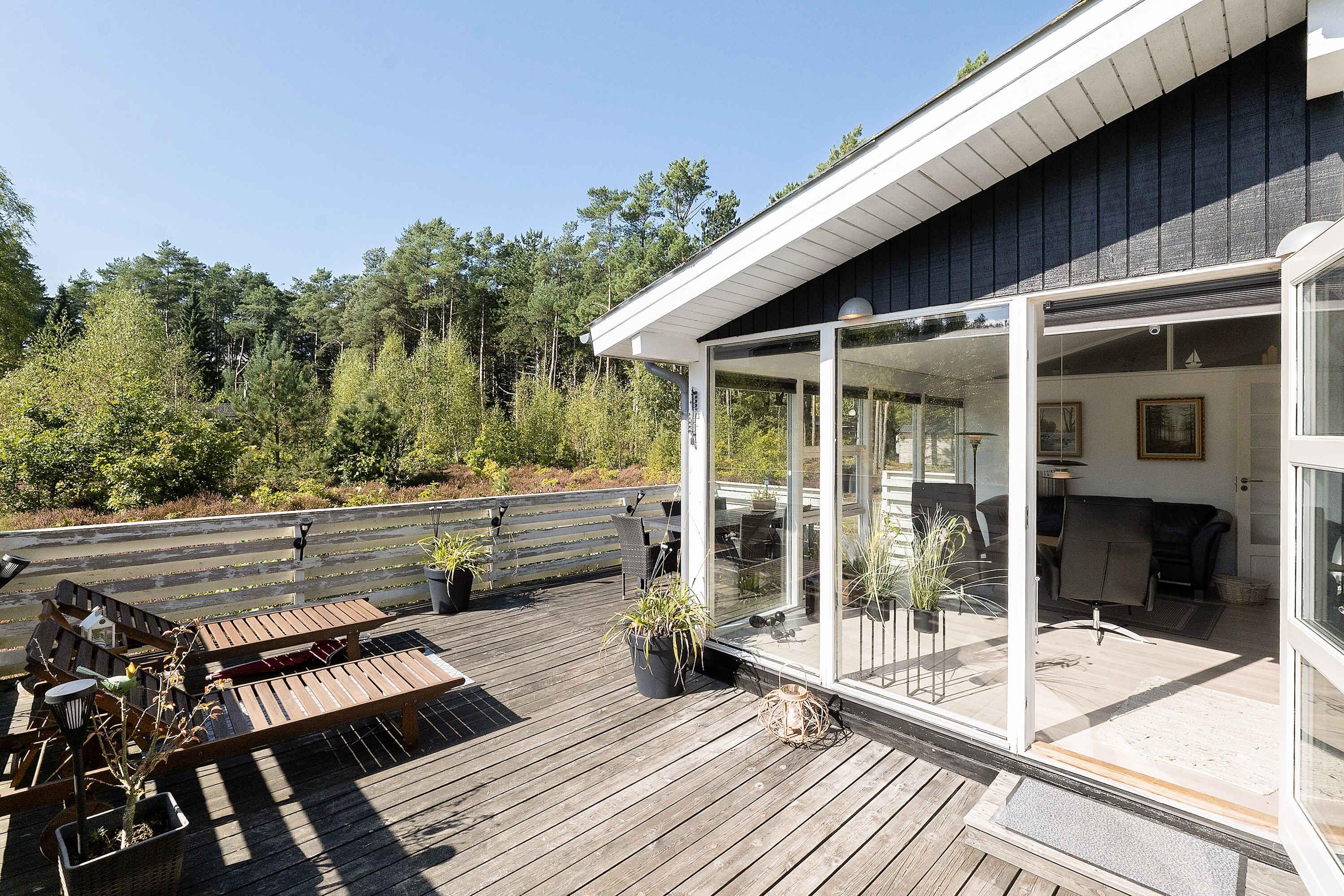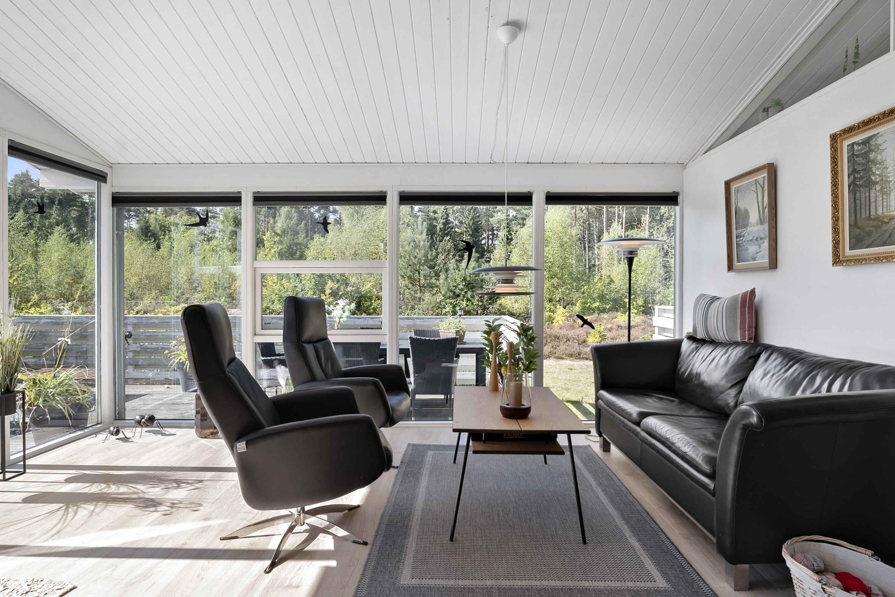 Dejligt sommerhus til 6 personer på kæmpe stor naturgrund (4300m2). Sæt dig i stuen eller på terrassen og slap af, imens du nyder udsigten over den store naturgrund, hvor lyngen blomstrer, fuglene synger og et rådyr eller en hare kigger forbi.