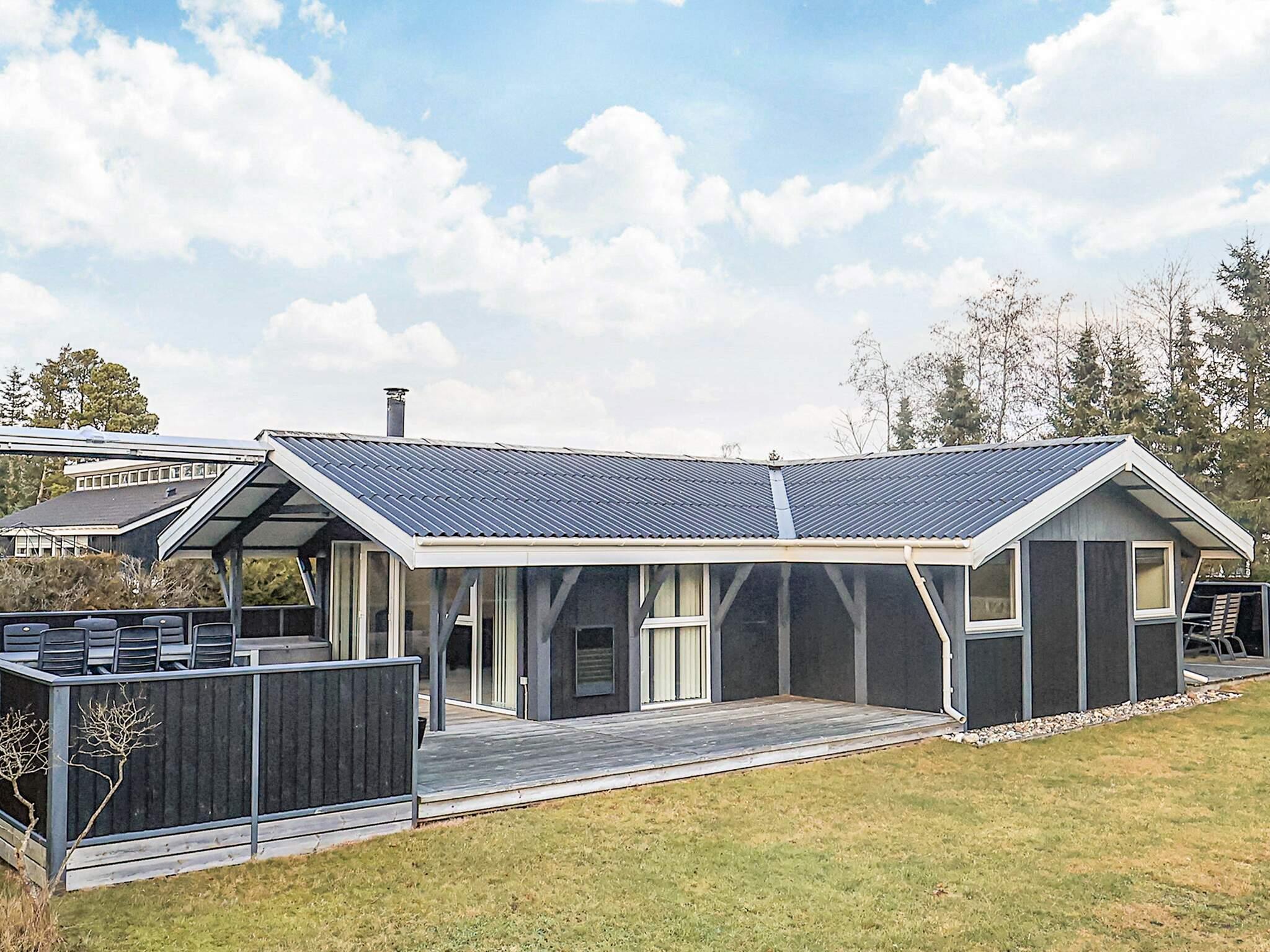 Sommerhus beliggende i roligt område. 5 m² stor sandkasse med lidt tilhørende legeredskaber. På den sydvendte terrasse er der 2 markiser, der kan rulles ud for at gøre den 10 m² overdækkede terrasse til 60 m² overdækket i stedet. Et hus, hvor der er fokus på kvalitet og komfort. Huset ligger ca. 500 meter fra områdets 18-hullers golfbane. Udlejes ikke til ungdomsgrupper.