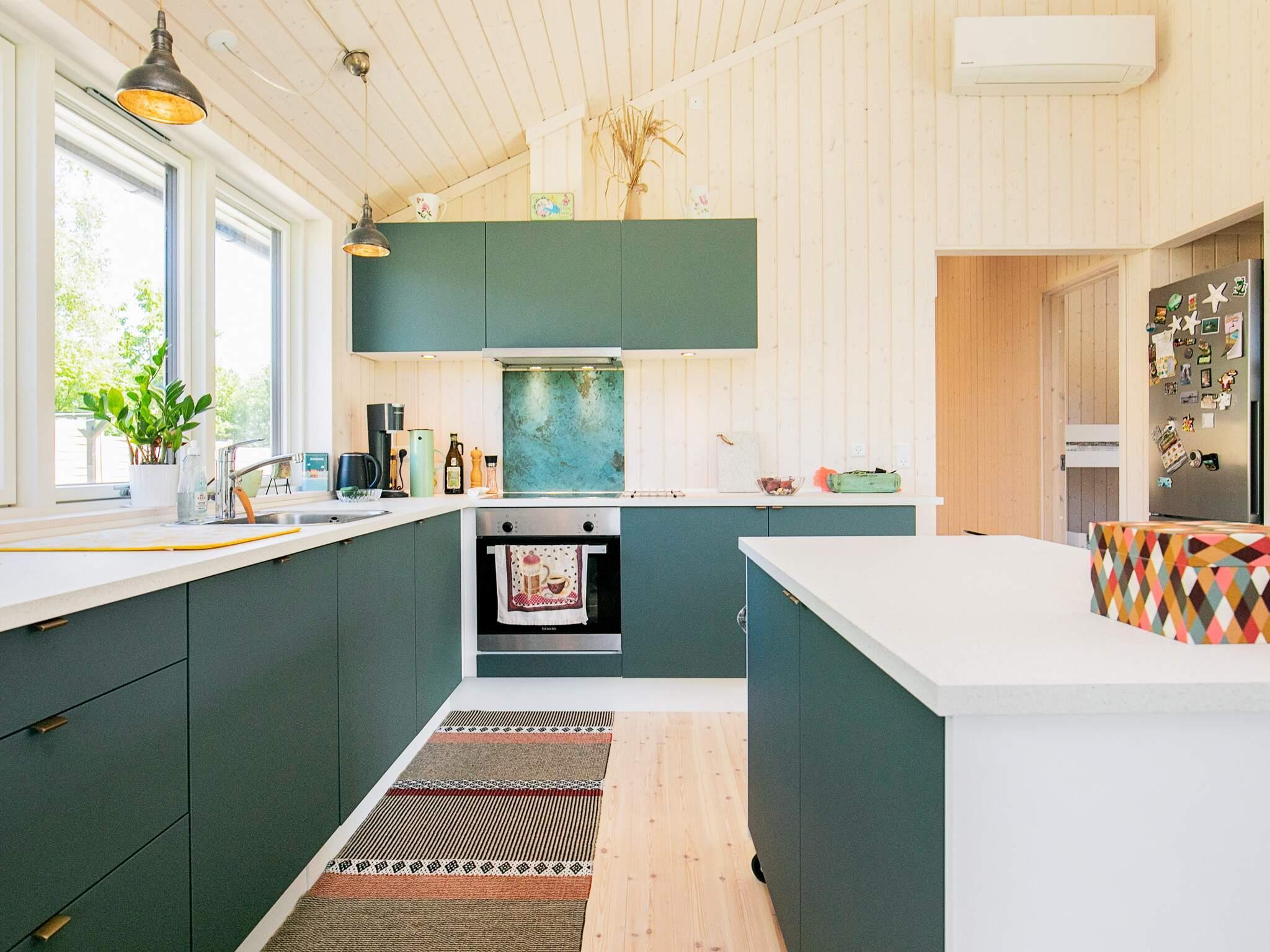 Køkken/alrum i åben forbindelse med stue med brændeovn samt luft/luft varmepumpe. Huset har i forbindelse med henholdsvis spisepladsen og stuen to gode alkover, hvor der er muligt at hygge sig med en god bog eller Ipad og stadigvæk være en del af fællesskabet.
