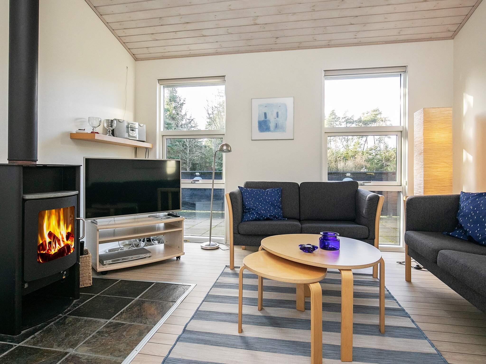 1 Opholdsstue: Brændeovn, tv, kabel-tv, høj stol