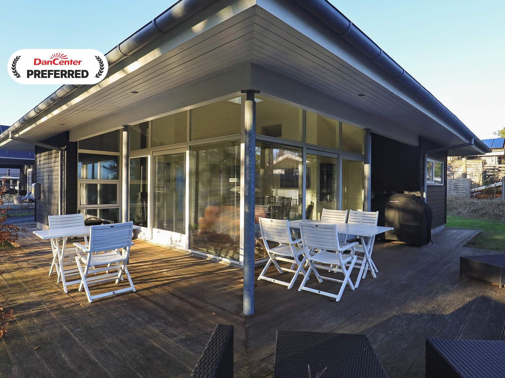 Og: Terrasse, overd. terrasse, el-varme, luft/luft varmepumpe, naturgrund 413 m2, moderne møblering, udsigt over vand, ikke-ryger hus