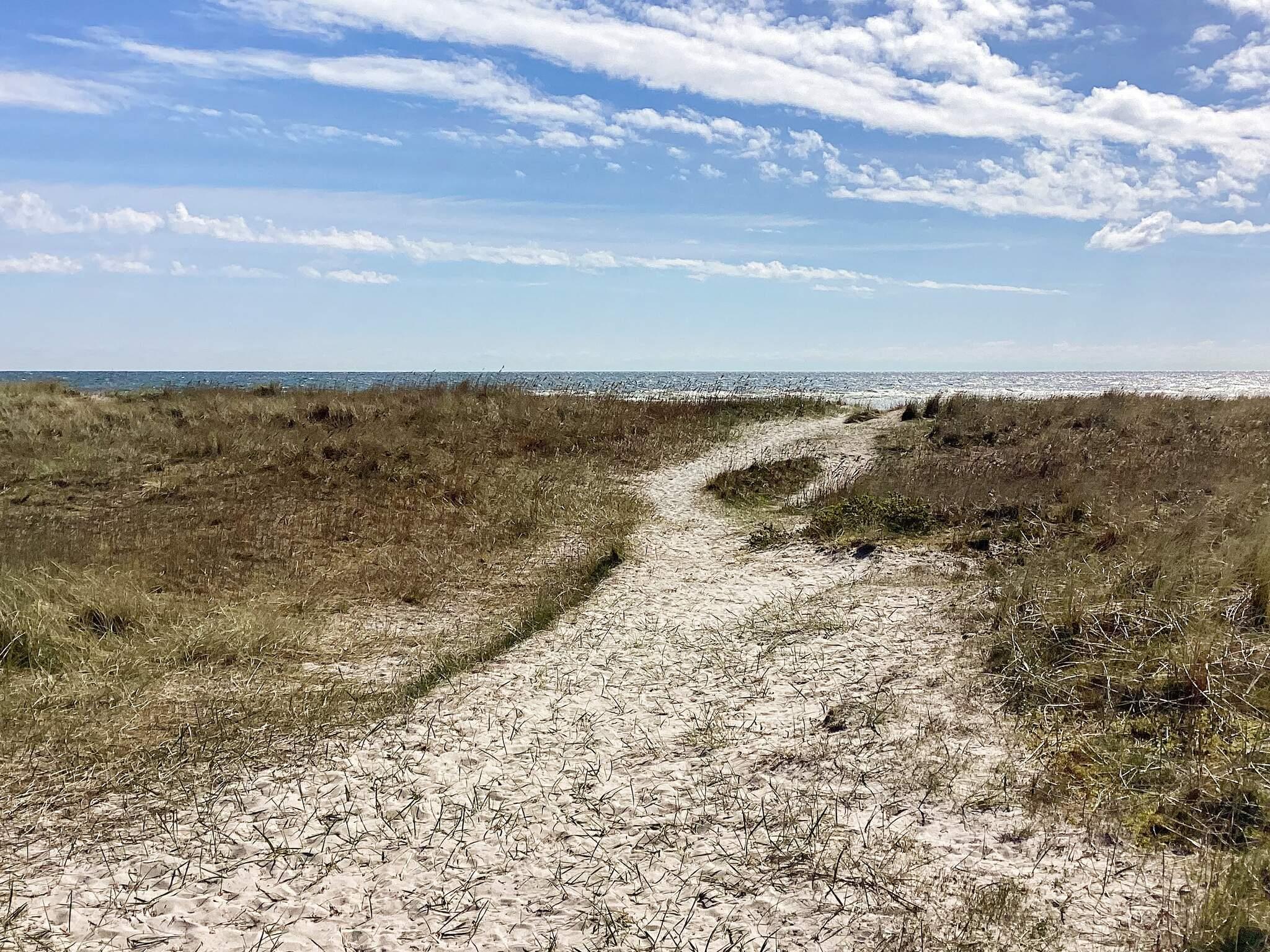 Attraktivt beliggende sommerhus med udsigt til havet med kun få minutters gang til den familievenlige sandstrand.