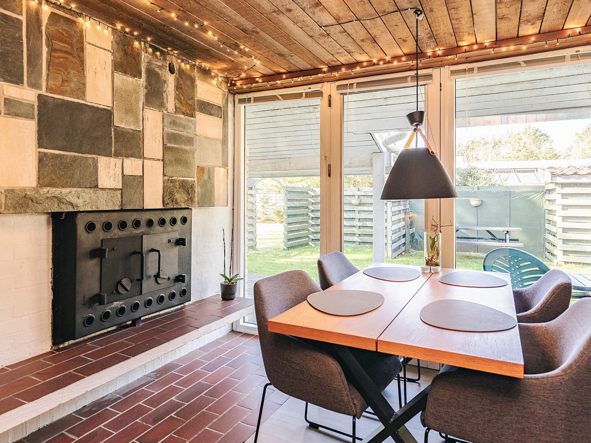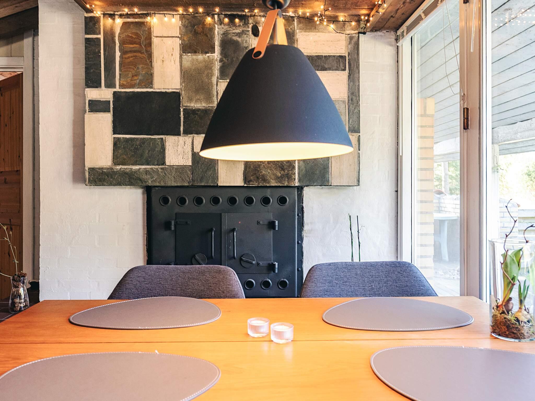 Køkkenet er åbent ud til opholdsrummet, hvilket byder op til det social skal fortsætte, selvom madlavningen går i gang. Opholdsrummet består af en fælles stue/spisestue, med plads til 6 personer ved spisebordet og i sofaarrangementet. I opholdstuen finder man også en pejs som kan tændes op i kolde tider.