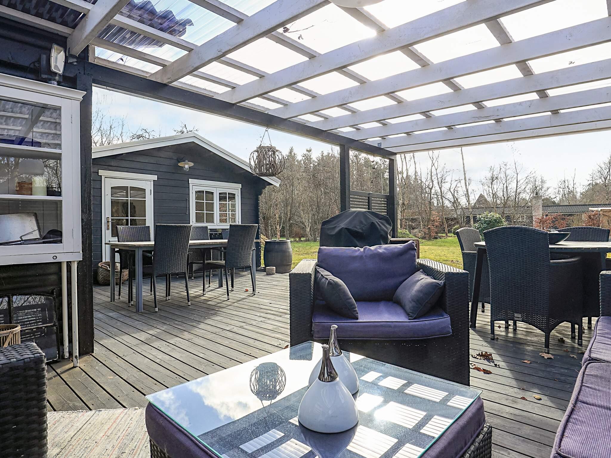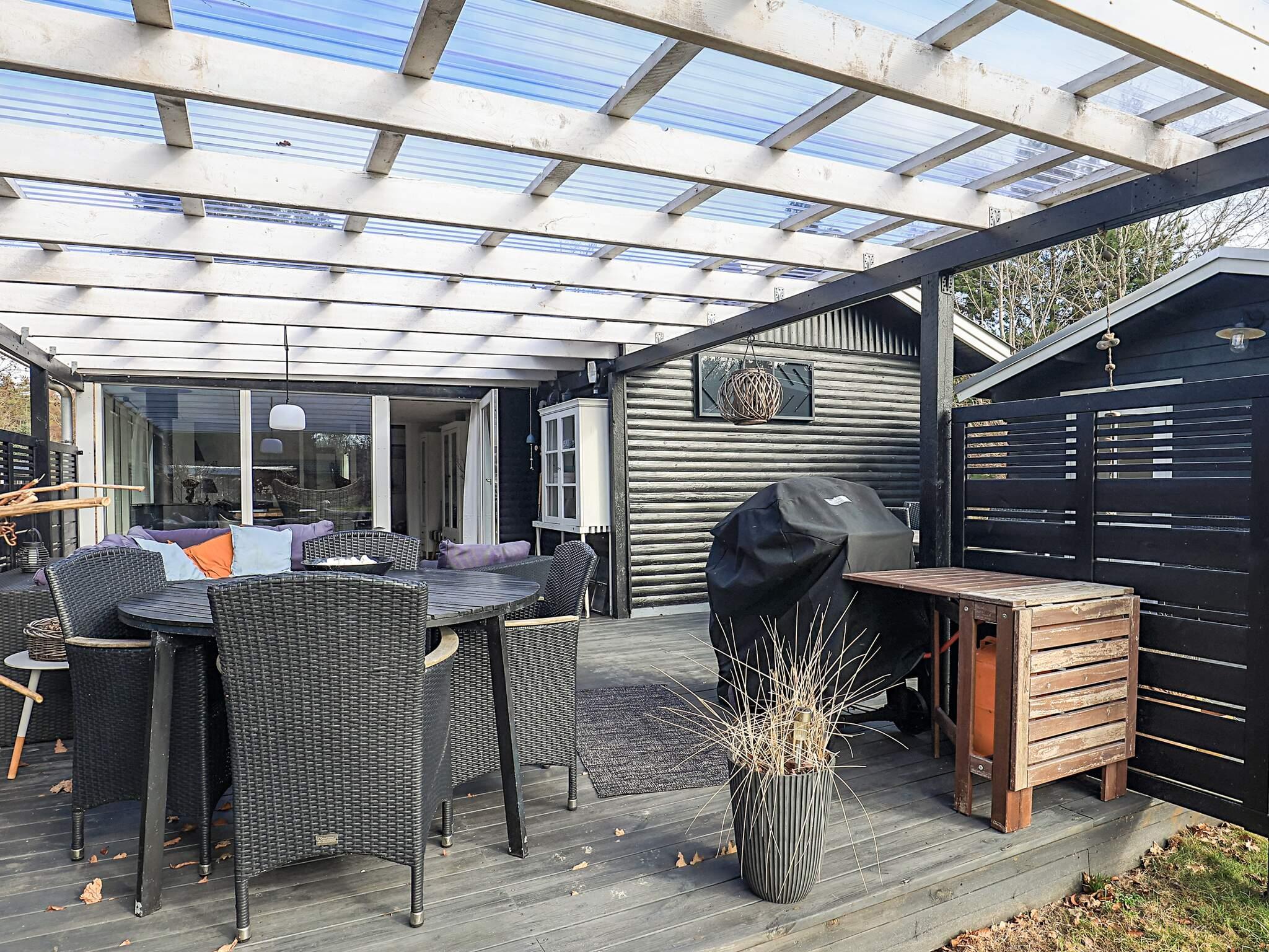 Sommerhuset ligger i et roligt og fredeligt sommerhusområde, kun 950 meter fra vandet, så du nemt kan tage en tur til stranden og nyde naturen. Den store terrasse er perfekt til hyggelige udendørs måltider eller bare afslapning i solen.