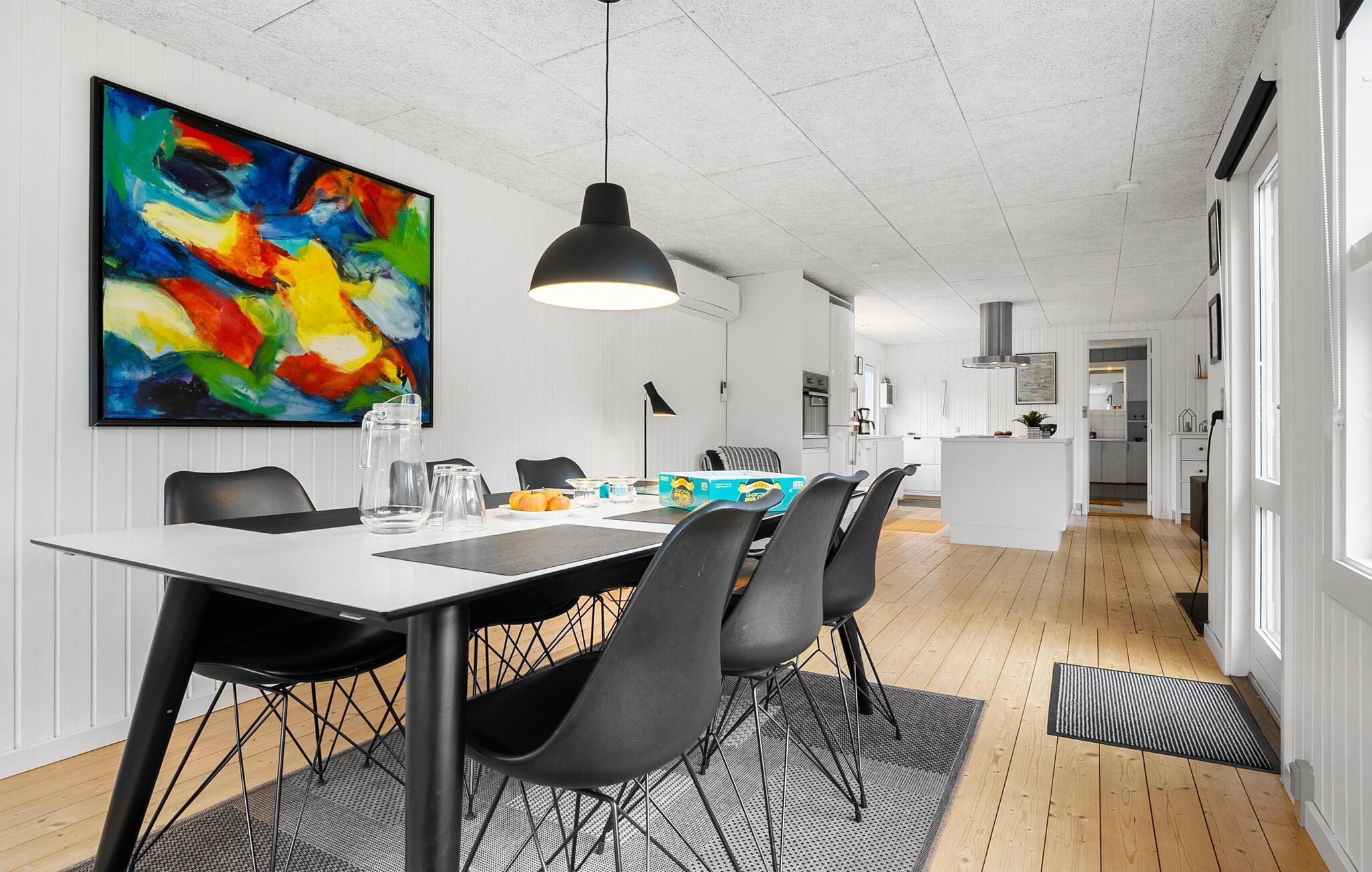 Velkommen til jeres komfortable feriehus, der vil begejstre jer med sit velholdte og stilfuldt indrettede interiør. Tilbered jeres måltider i det moderne køkken, og nyd dem i den hyggelige spisestue. Glæd jer til afslappende læsestunder eller en god film, mens brændeovnen spreder et blødt lys og varme i stuen. Hav det sjovt ved bordfodboldbordet eller dartskiven, og oplev hyggelige øjeblikke med bobspil.
