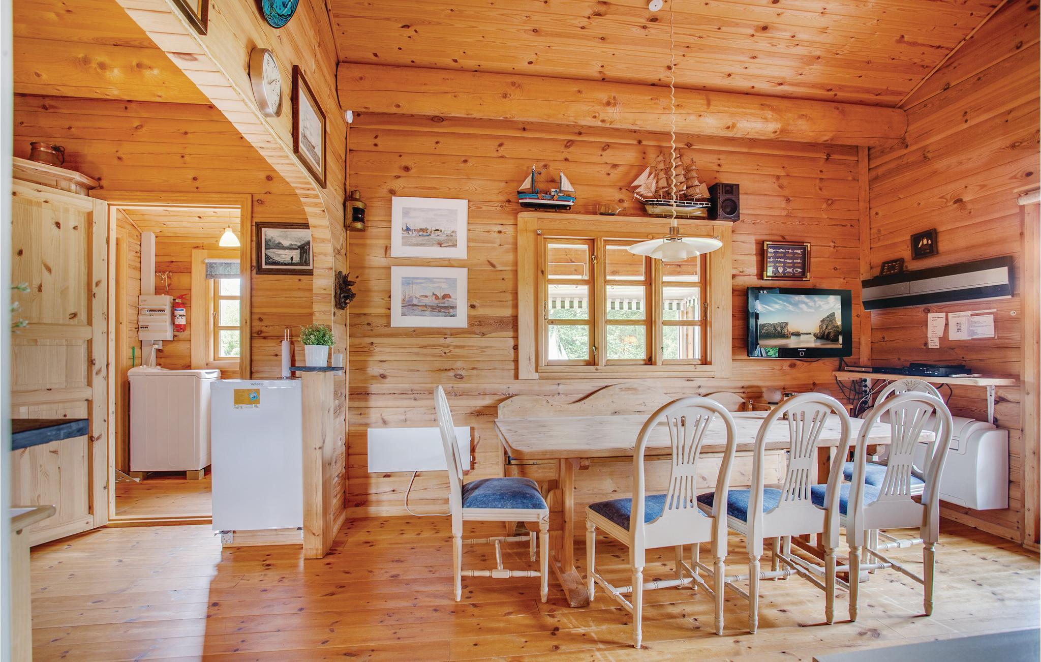 Indenfor finder I en hyggelig stue, der lukker masser af naturligt lys ind med sine store vinduespartier. Møblerne er komfortable og giver plads til hele familien. Køkkenet er praktisk indrettet og giver mulighed for at lave mad sammen selv på ferie. Ved spisebordet kan I spise jeres måltider og lægge planer for dagen.