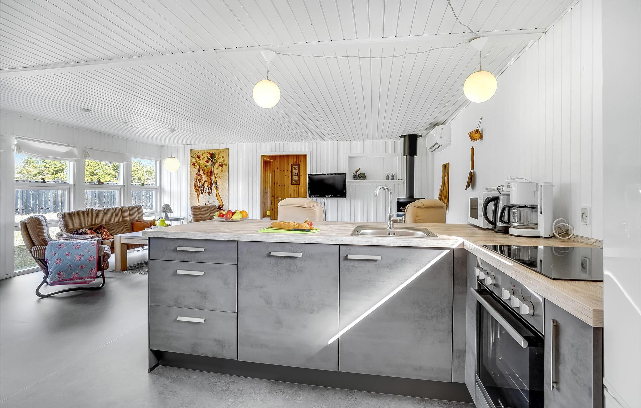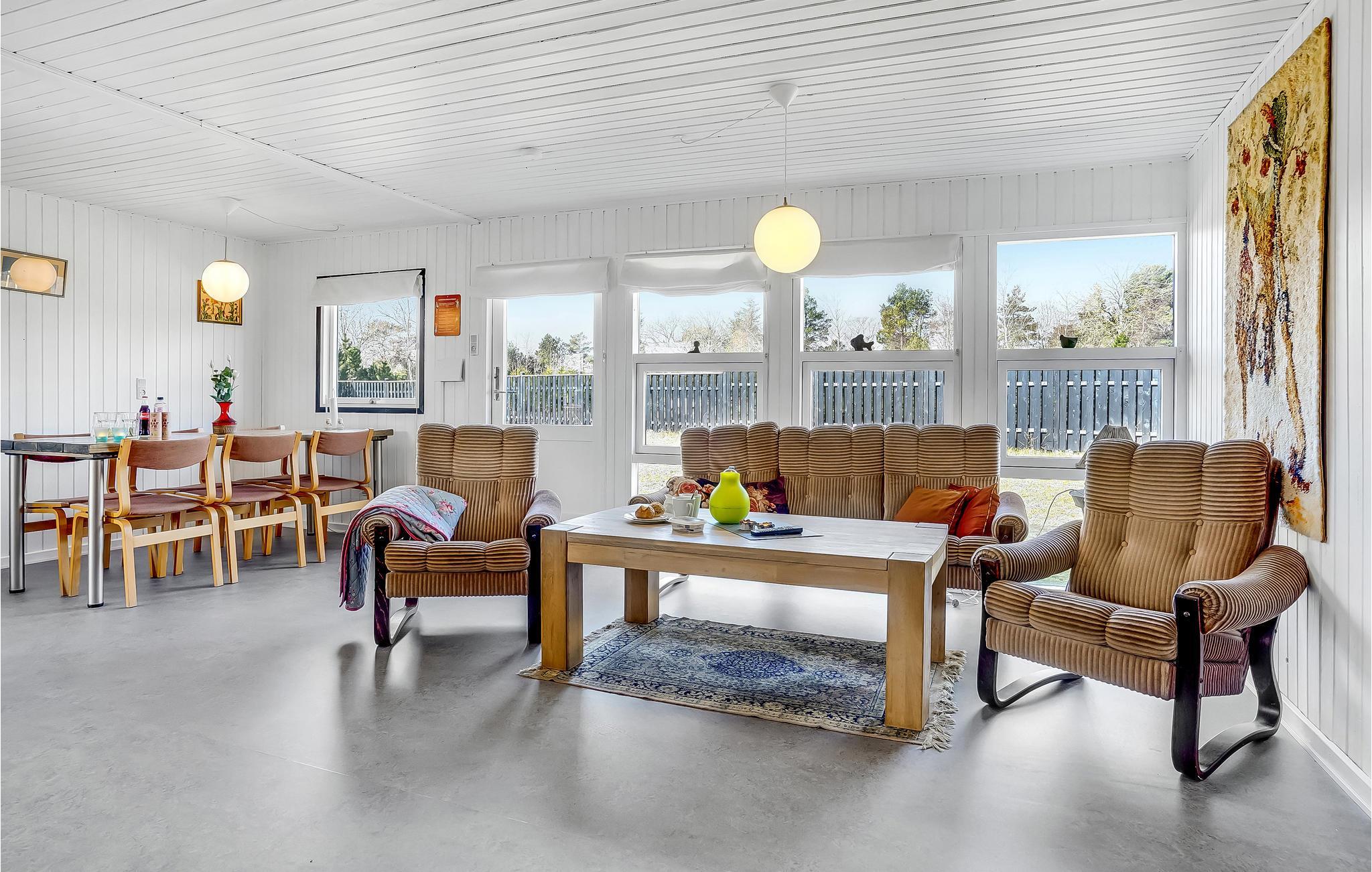 Dette hyggelige feriehus ligger på en stor, åben grund med græsplæne mellem byerne Hou og Hals. Huset er fra 1997, men fik i 2015 et rigtig flot badeværelse. Indretningen fremtræder varmt, hjemligt og flot med komfortable møbler og fin kunst på væggene, der alt sammen er med til at skabe en atmosfære, man ikke kan andet end slappe af i. På de køligere dage kan I tænde op i brændeovnen og nyde dens varme og rolige knitren, mens I ser en film eller hygger jer med brætspil til langt ud på aftenen.