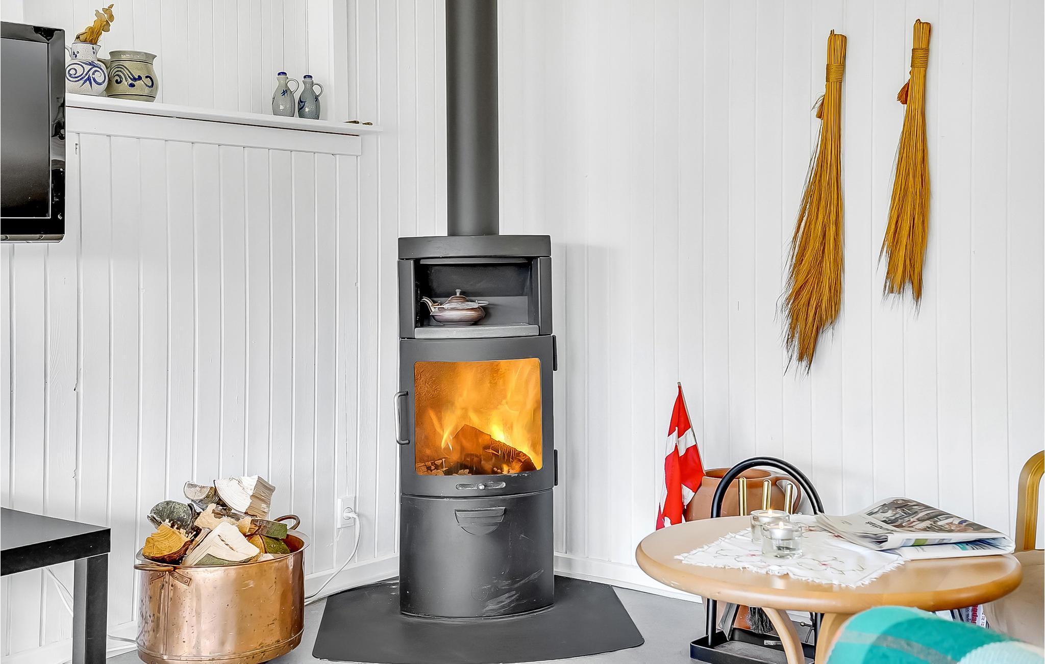 Hyggeligt træhus i Hals nær Kattegat med åben grund, brændeovn og moderne badeværelse.