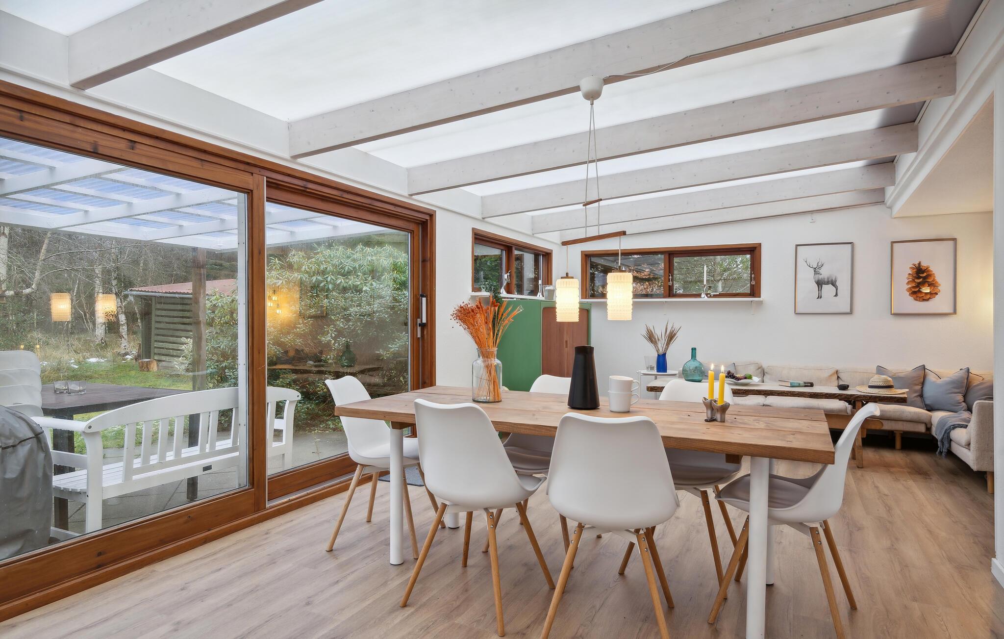 Velkommen til dette charmerende feriehus på en lukket sti i det idylliske klitområde i badeområdet Hou. Den hyggelige feriebolig består af et hovedhus og et anneks, hvor I finder soveværelser og fællesområder. I det lyse hovedhus bliver stuen det naturlige samlingspunkt for hele familien. Her kan I varme jer foran brændeovnen med timevis af brætspil på de køligere aftener.
