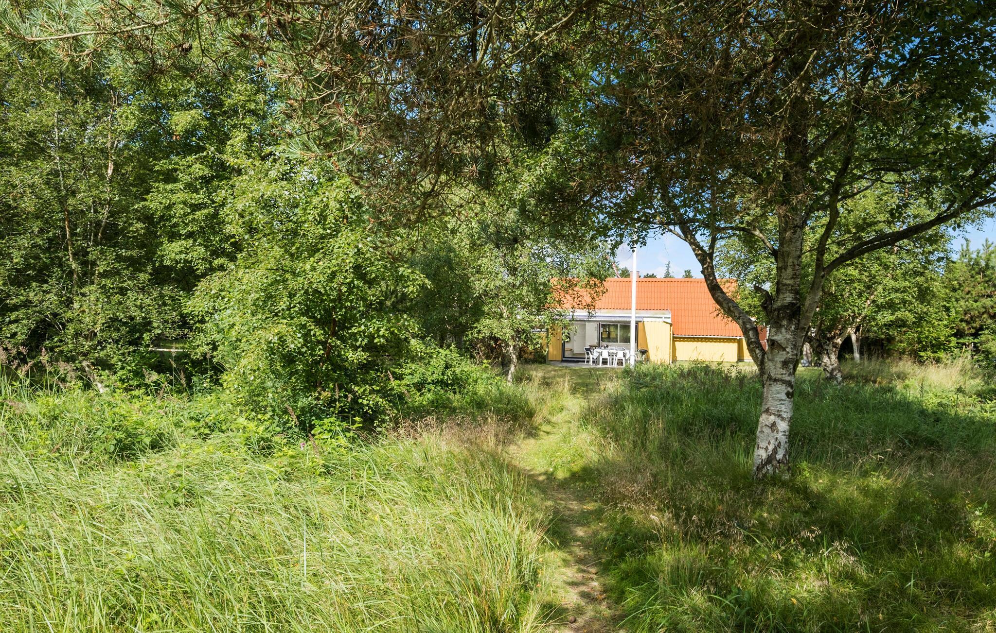 I kan hurtigt komme til vandet via en privat sti på grunden, der fører gennem den lune lyng til den hvide sandstrand. Det fine, hvide sand er et paradis for familier og indbyder til at bygge sandslotte og til at lege i vandet. Stranden er nok en af ??de bedste og mest børnevenlige strande i Danmark.