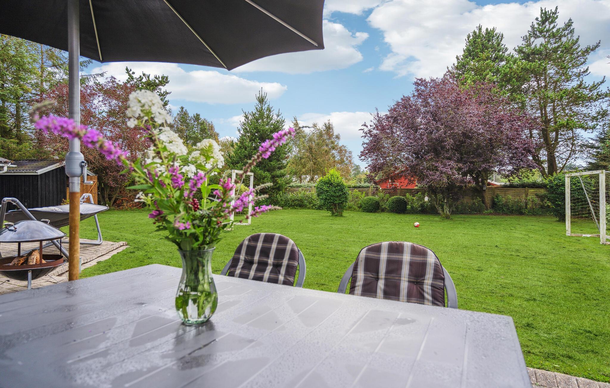 I har en stor fliseterrasse til rådighed, udstyret med komfortable havemøbler til solbadning og udendørsspisning. Hængekøjen er ideel til en lur i det fri med fuglekvidder i baggrunden. Der er selvfølgelig også en grill til rådighed til hyggelige grillaftener. Den store have lægger op til masser af leg og boldspil, og til udendørsspil såsom kubb/vikingespil.