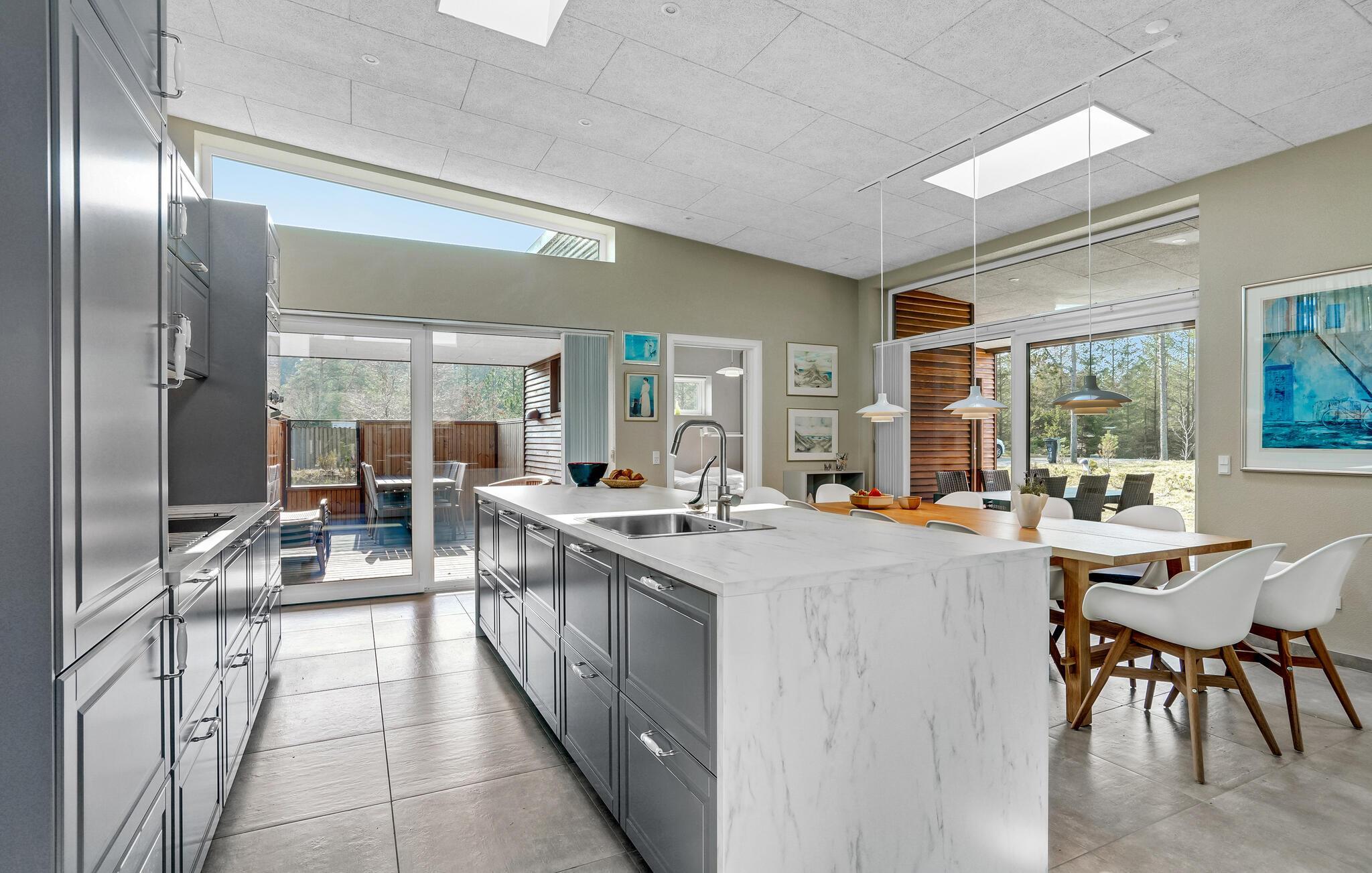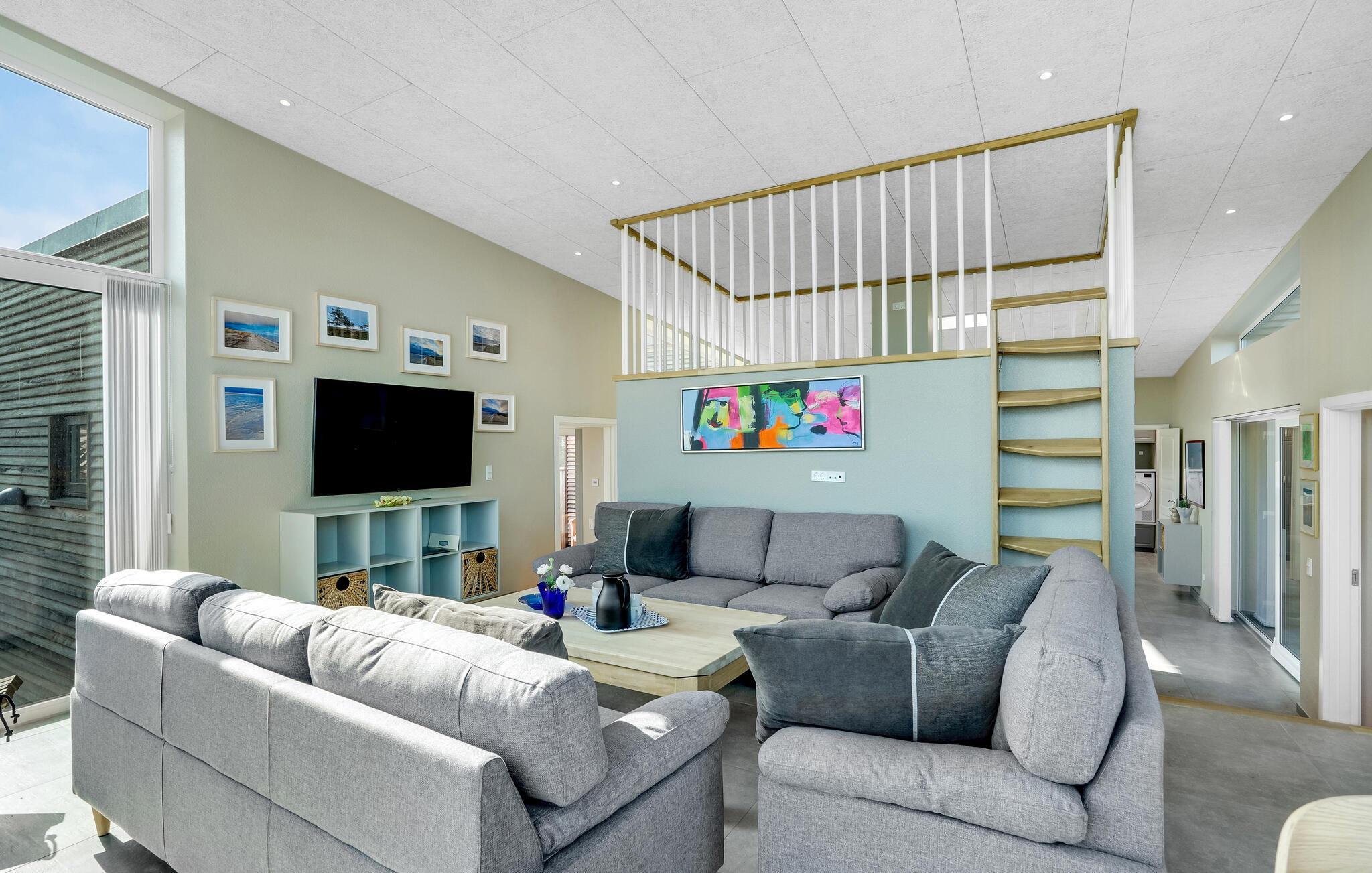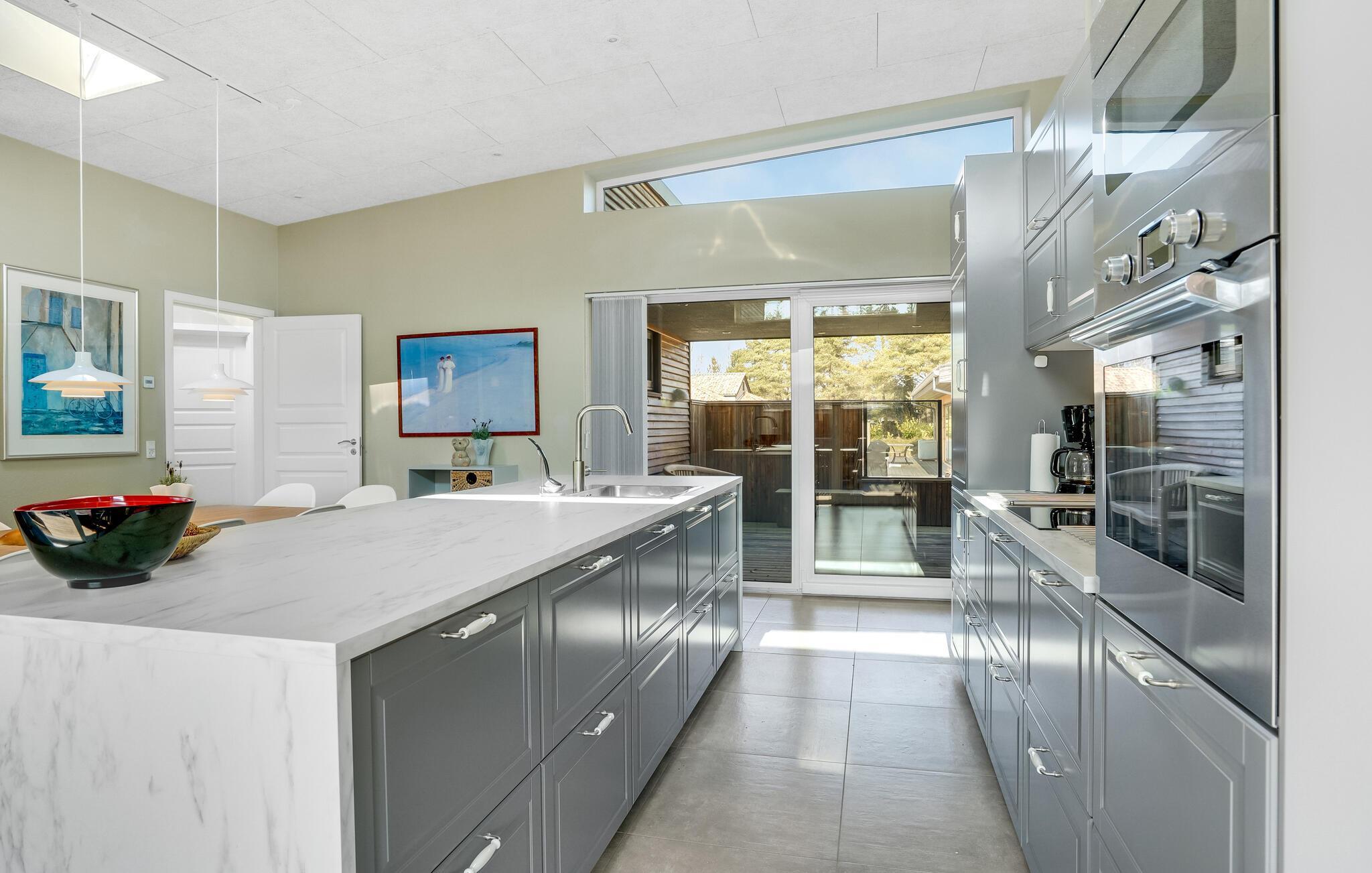 Træd ind i dette helt særlige sommerhus, som er rummeligt og behageligt, mens der samtidig viser sig flotte arkitektløsninger overalt. Her bliver boligen en ekstra del af oplevelsen ved at være af sted.