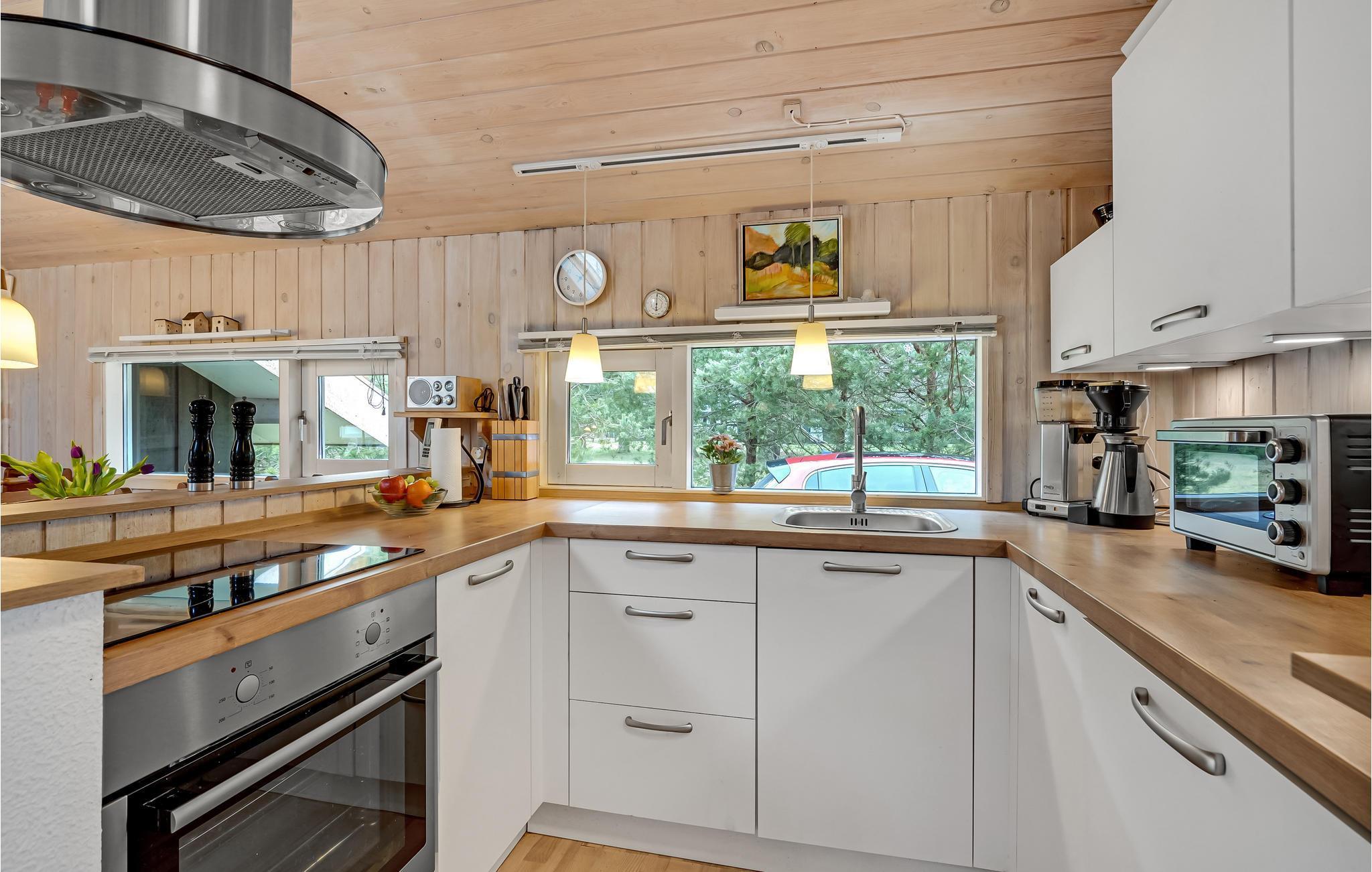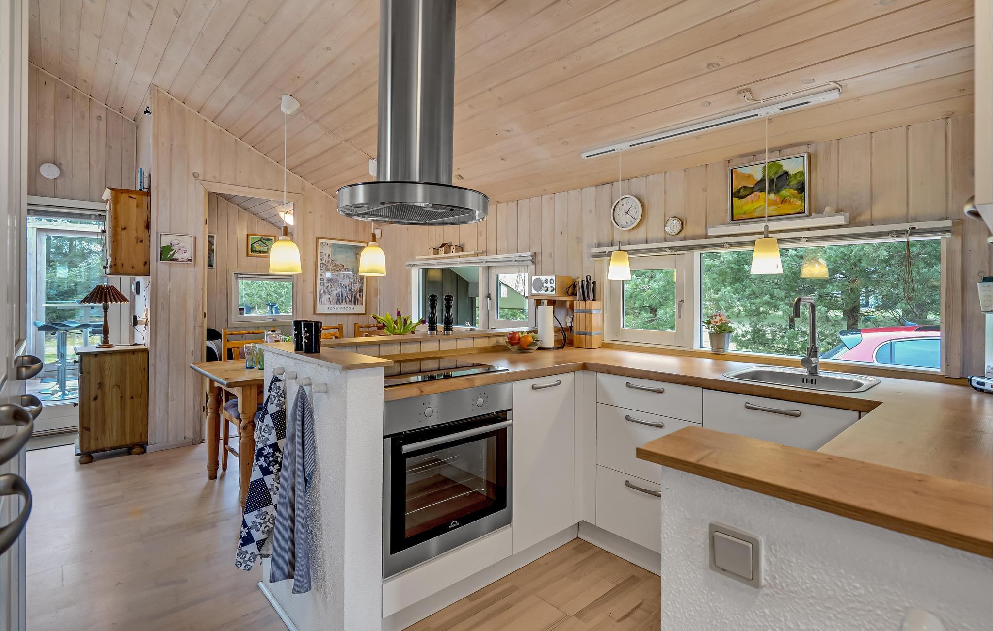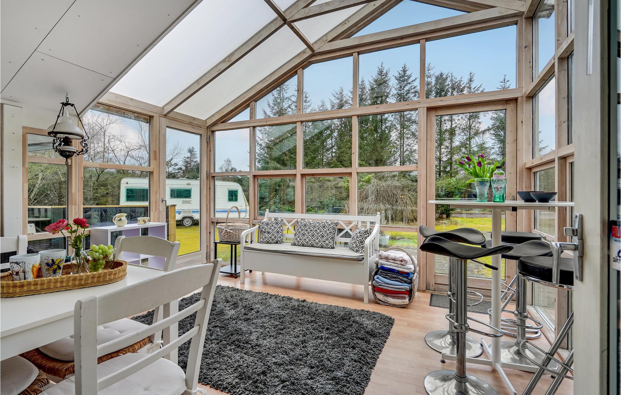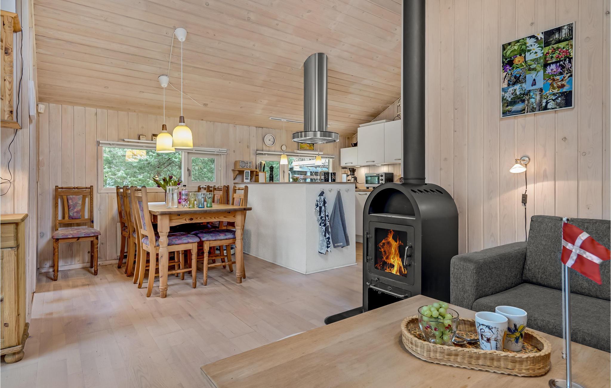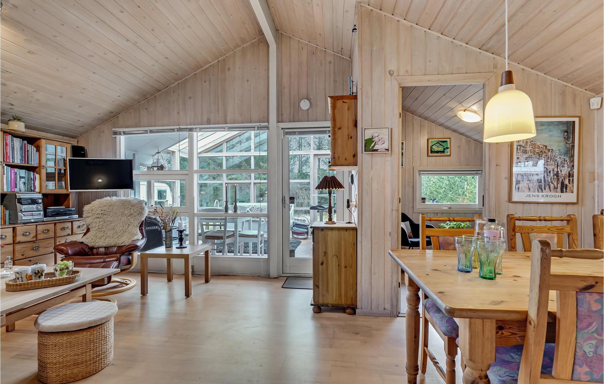 Det indbydende hus ligger på en velholdt grund, som er omgivet af træer. Her kan I nyde nogle dejlige feriedage tæt ved stranden. Der er gode rammer til familien, for huset er en fantastisk lille oase, der får jer til at glemme alt om den travle hverdag. I de hyggelige lokaler med lys træbeklædning kan I rigtig nyde hinandens selskab efter en lang dag på farten. Læn jer godt tilbage i udestuens møbler med brætspil og kaffe eller sæt jer bare og nyd udsigten til haven. I vinterhalvåret kan I skrue ekstra op for hyggen ved at tænde ild i brændeovnen og snakke om dagens oplevelser, ??mens flammerne knitrer i baggrunden.