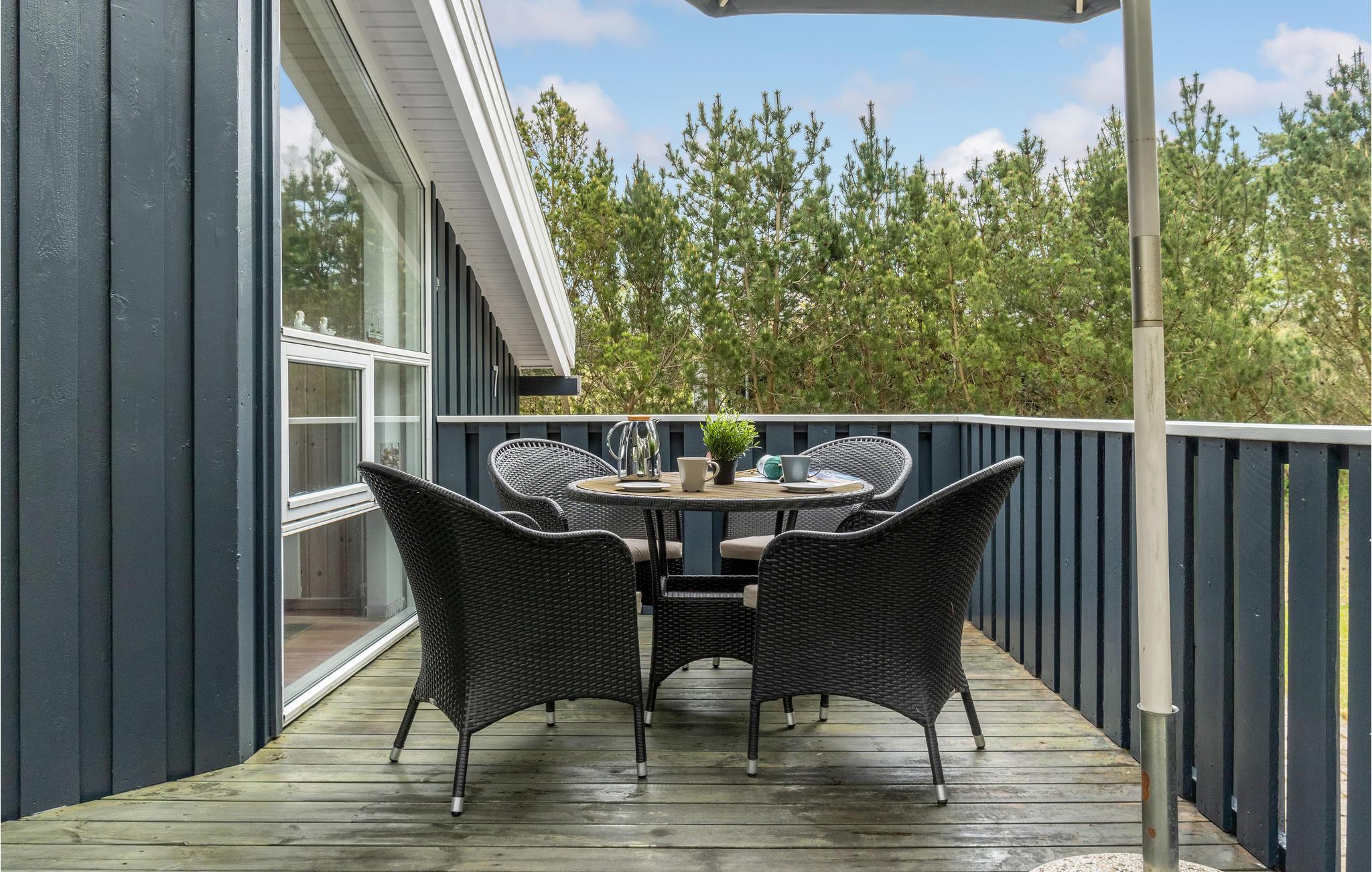 Nyd en afslappende ferie i dette smukke og komfortable feriehus. Huset har en moderne og lys atmosfære, der inviterer jer til at have det godt og slappe af. Med sauna og spabad tilbyder huset jer ideelle forhold for afslapning og velvære. På kølige dage kan I finde jer godt tilpas i lænestolene foran brændeovnen og afslutte aftenen med at lave mad, spise og lege sammen. Den åbne stue gør det let for jer at nyde hinandens selskab.