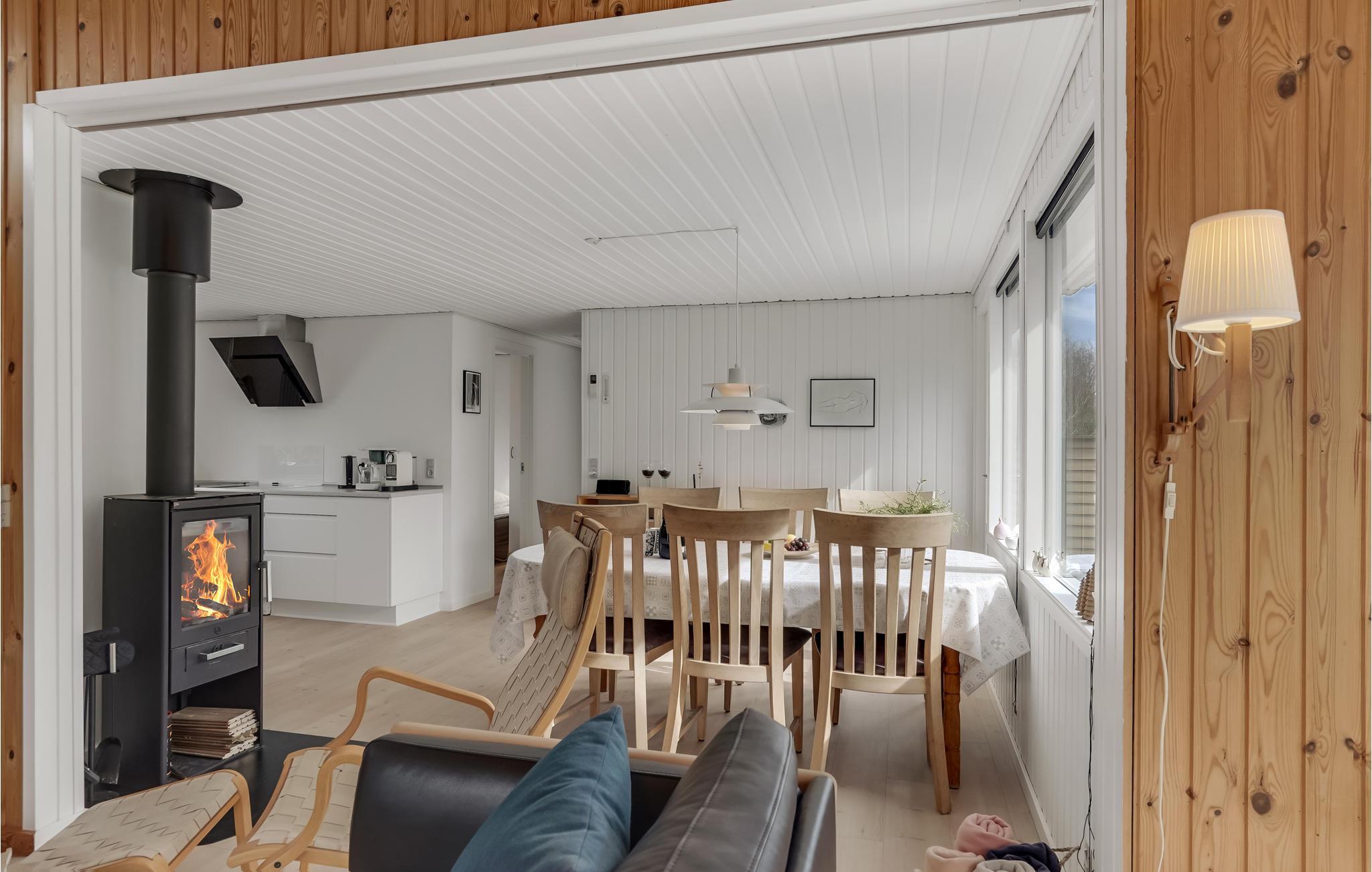 Sæt den travle hverdag på pause og forsvind ind i den nordjyske ferieidyl. Tæt ved kysten mod Kattegat ligger dette charmerende feriehus, som er flot indrettet med moderne elementer, der blandet sig med husets oprindelige detaljer. På kølige dage kan I nyde lyset fra de store vinduespartier, mens I hygger jer indendørs med brætspil, og ilden knitrer i brændeovnen. Boligen er godt udstyret, så I kommer ikke til at mangle noget, heller ikke udendørs, hvor I kan nyde solen på den skønne terrasse og senere tænde bål for at bage snobrød og riste skumfiduser.