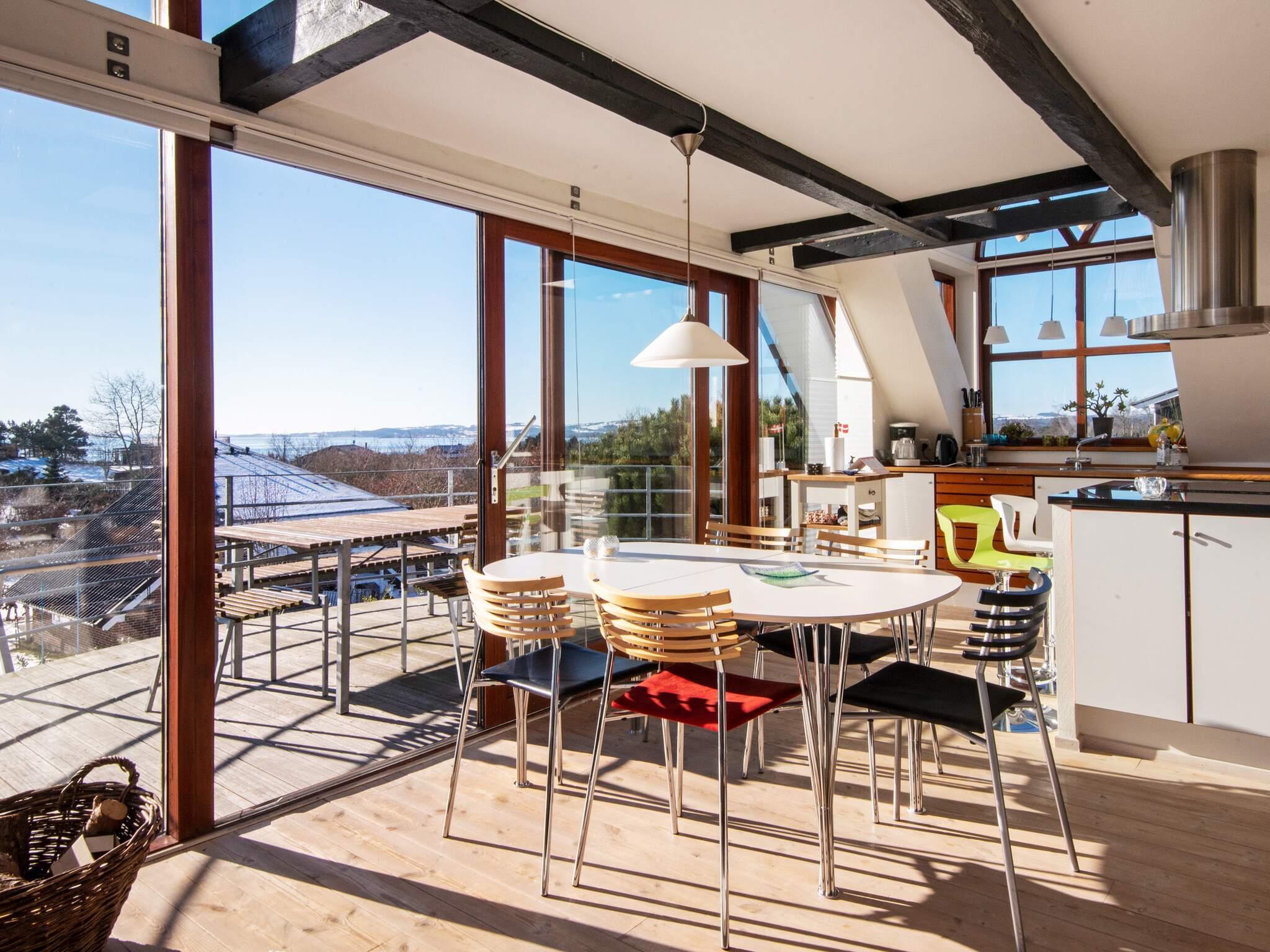 Og: Terrasse, el-varme, luft/luft varmepumpe, havegrill, naturgrund med træer 1560 m2, moderne møblering, panoramaudsigt over vand, ikke-ryger hus