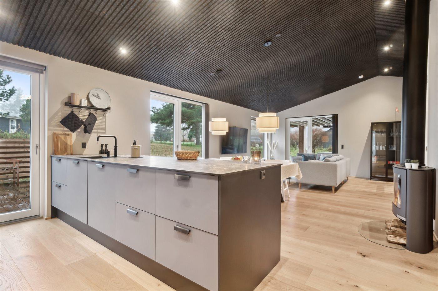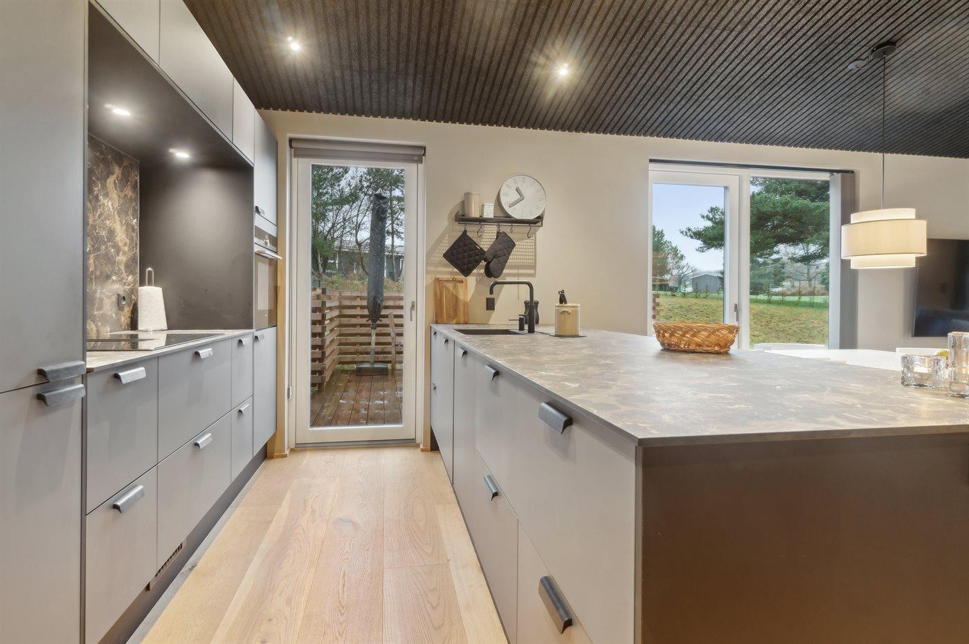 Køkkenet er udstyret med 1 køleskab. Der er 4 induktionskogeplader, varmluftovn, mikrobølgeovn samt opvaskemaskine.