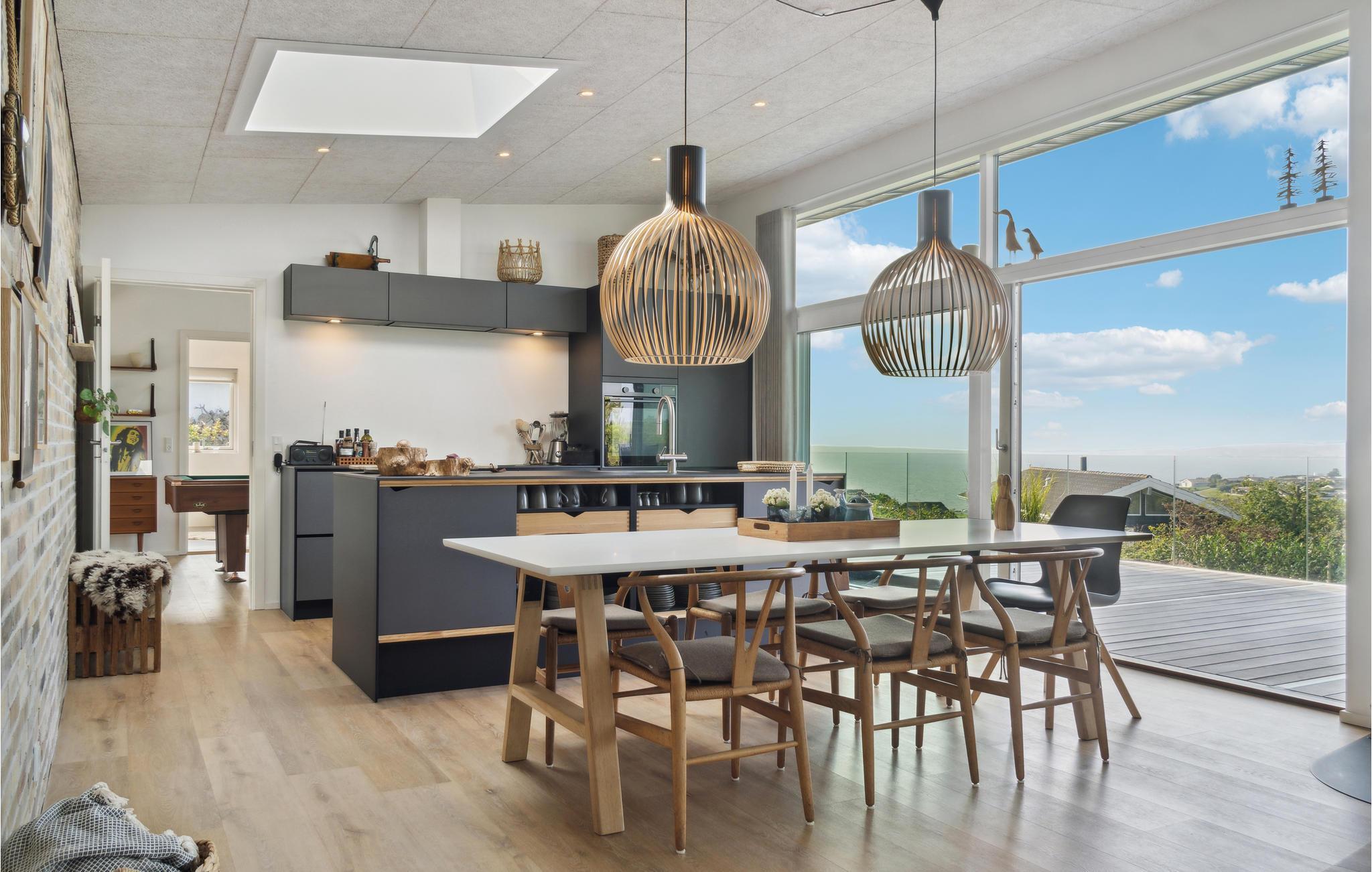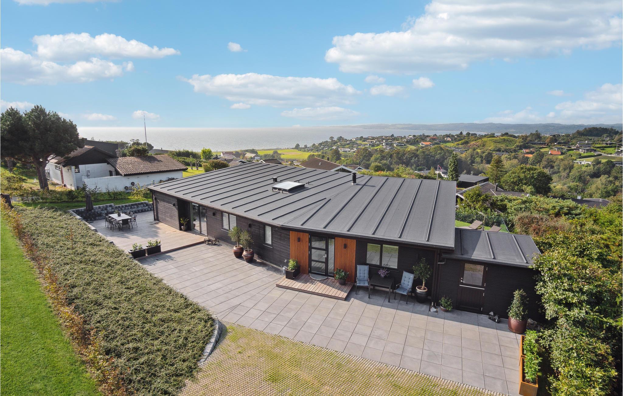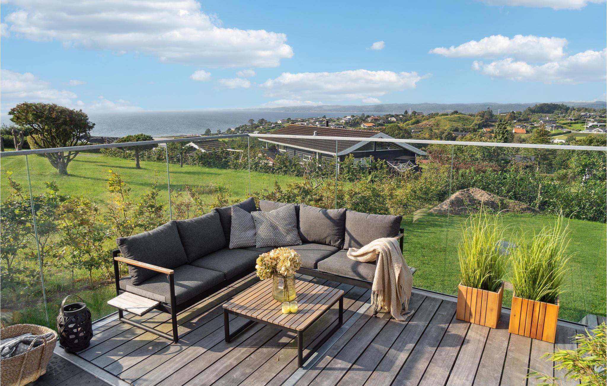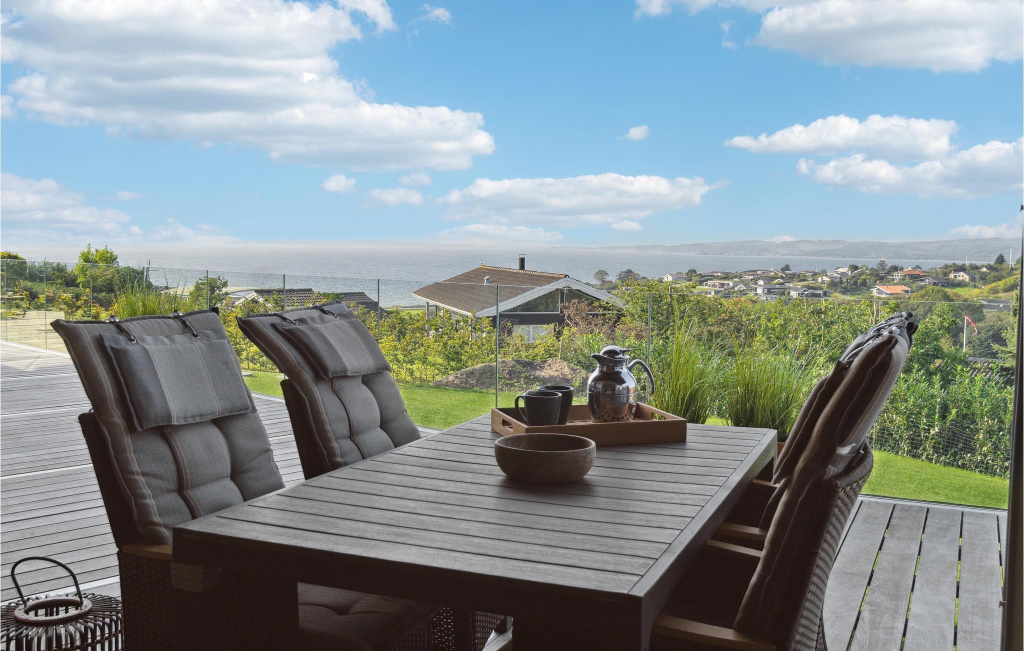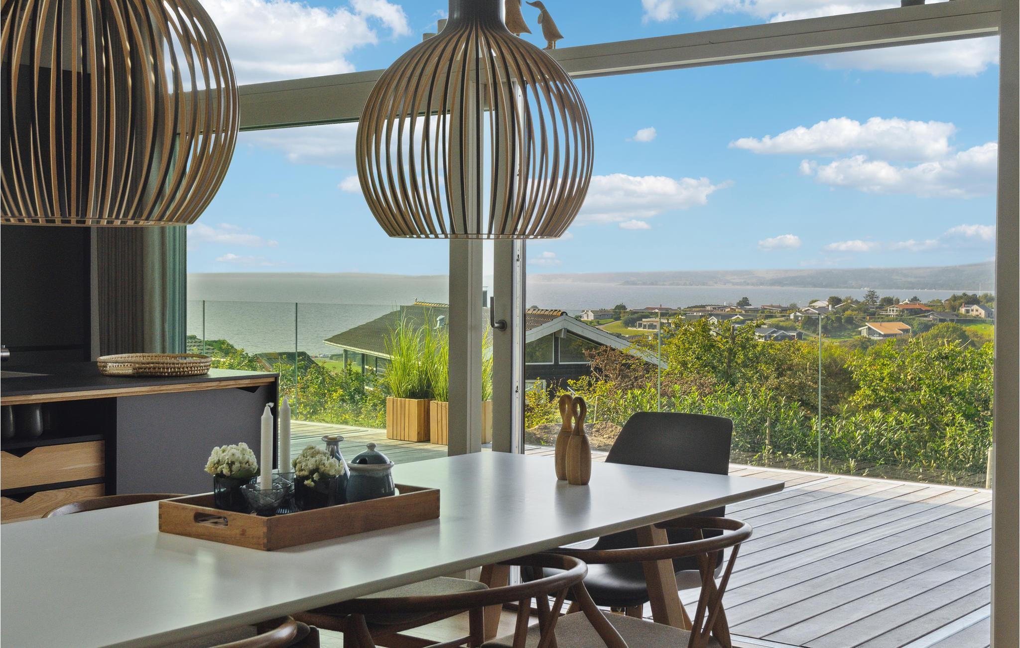 Velkommen til dette moderne og stilfulde feriehus med fantastisk panoramaudsigt over havet og udendørs wellness.
