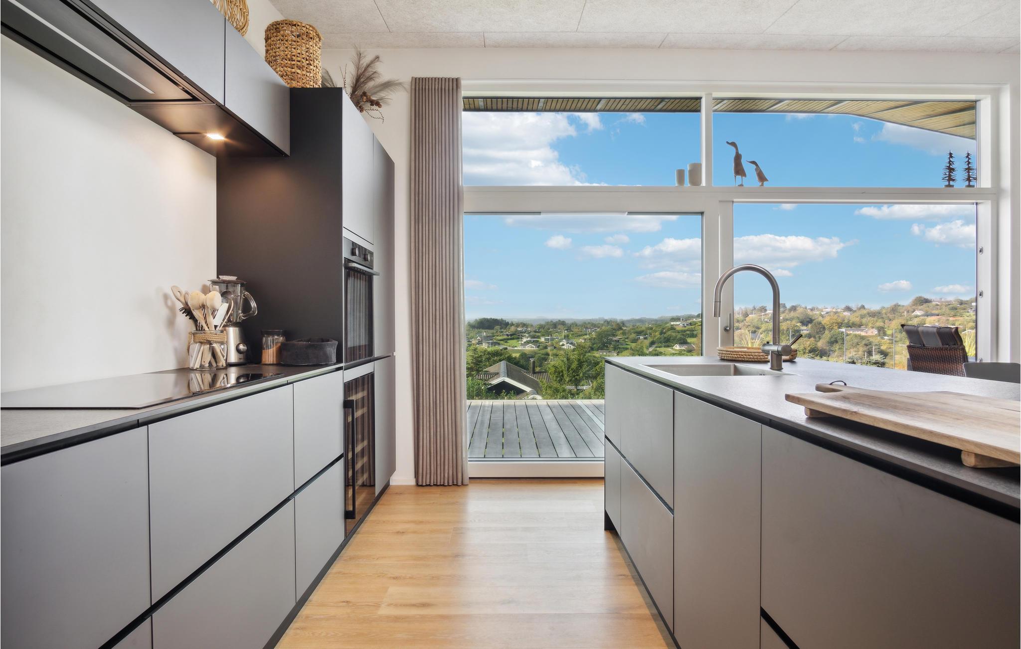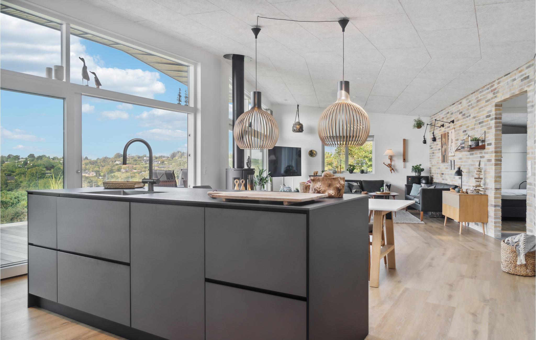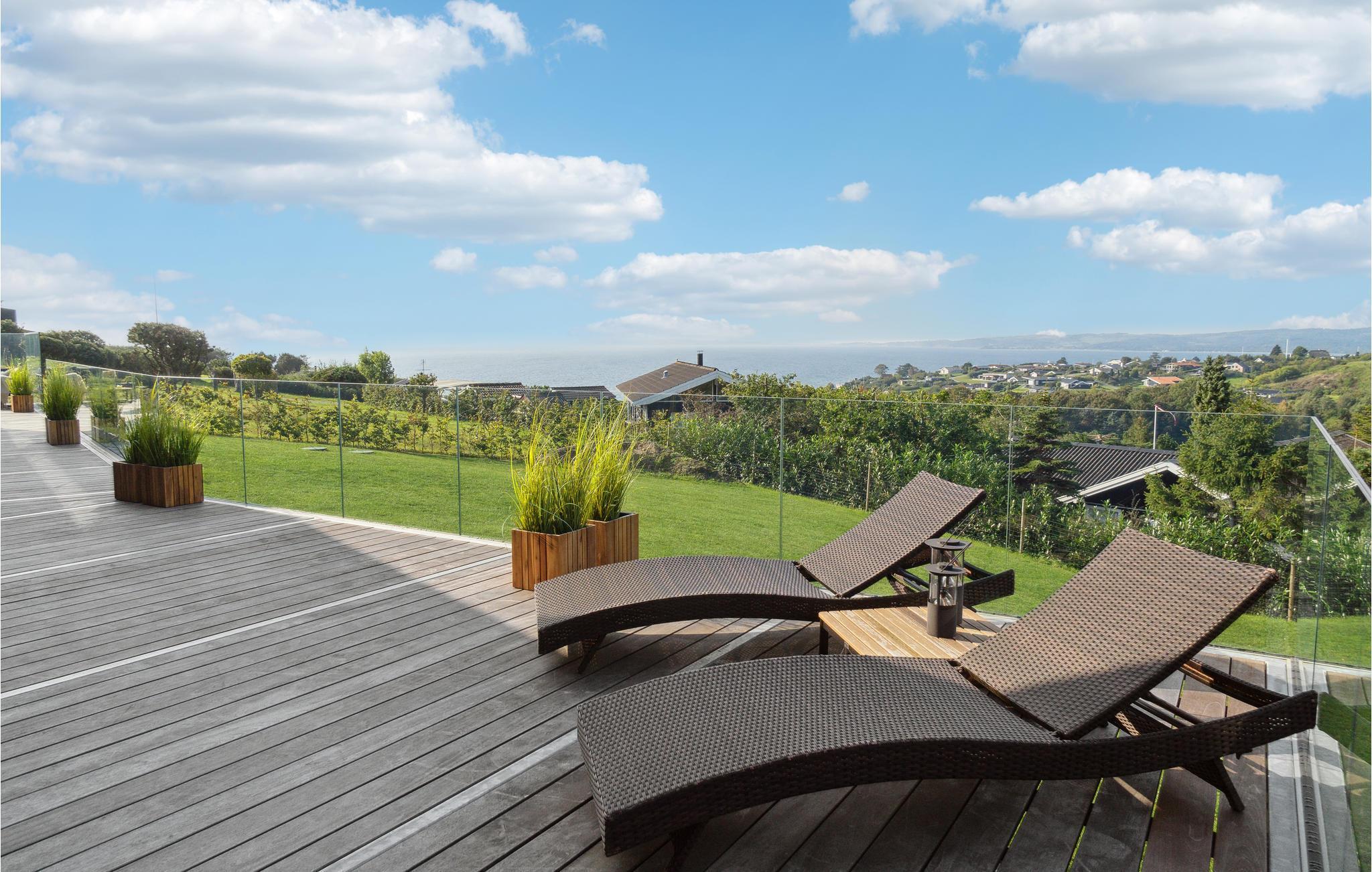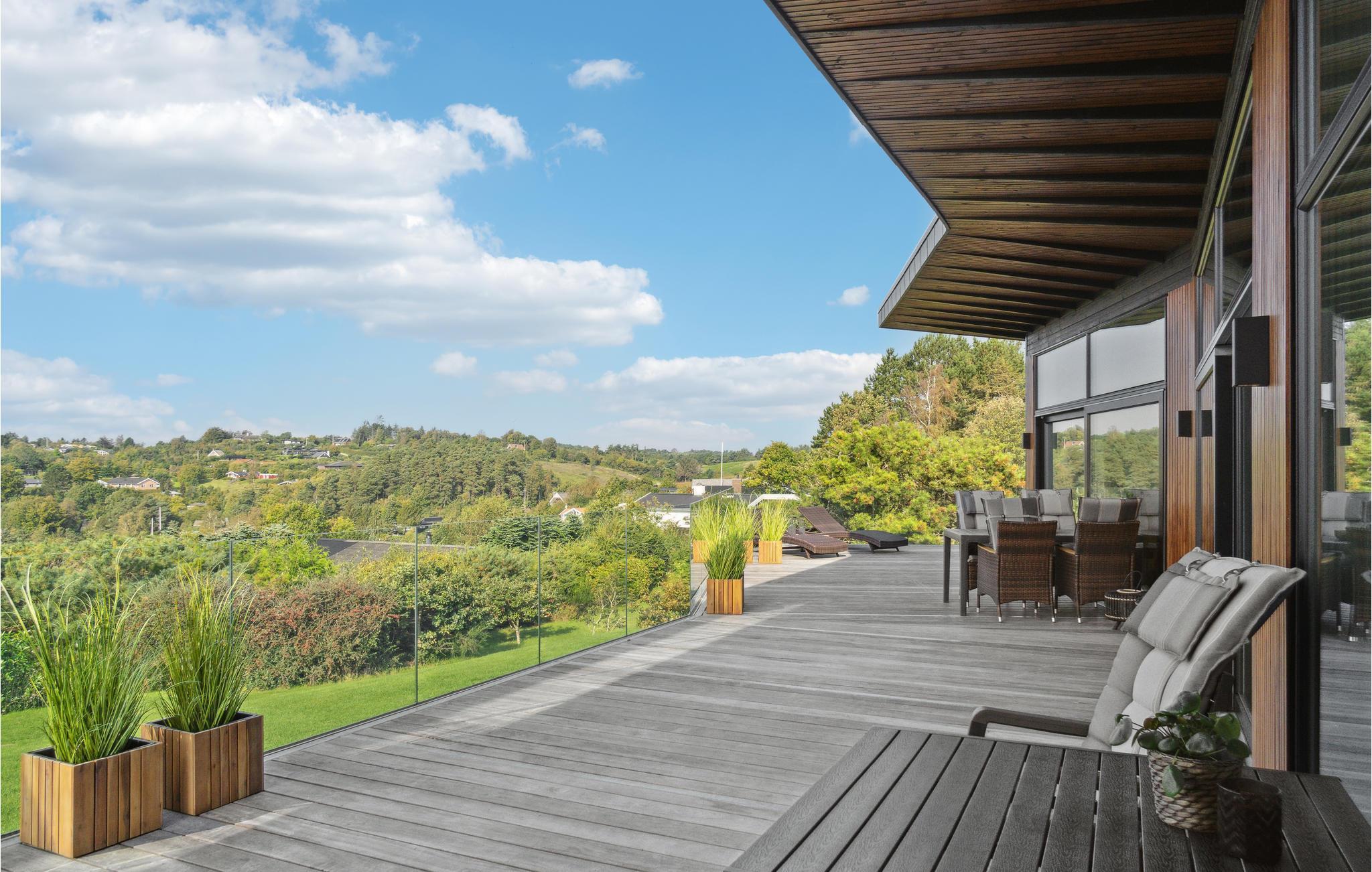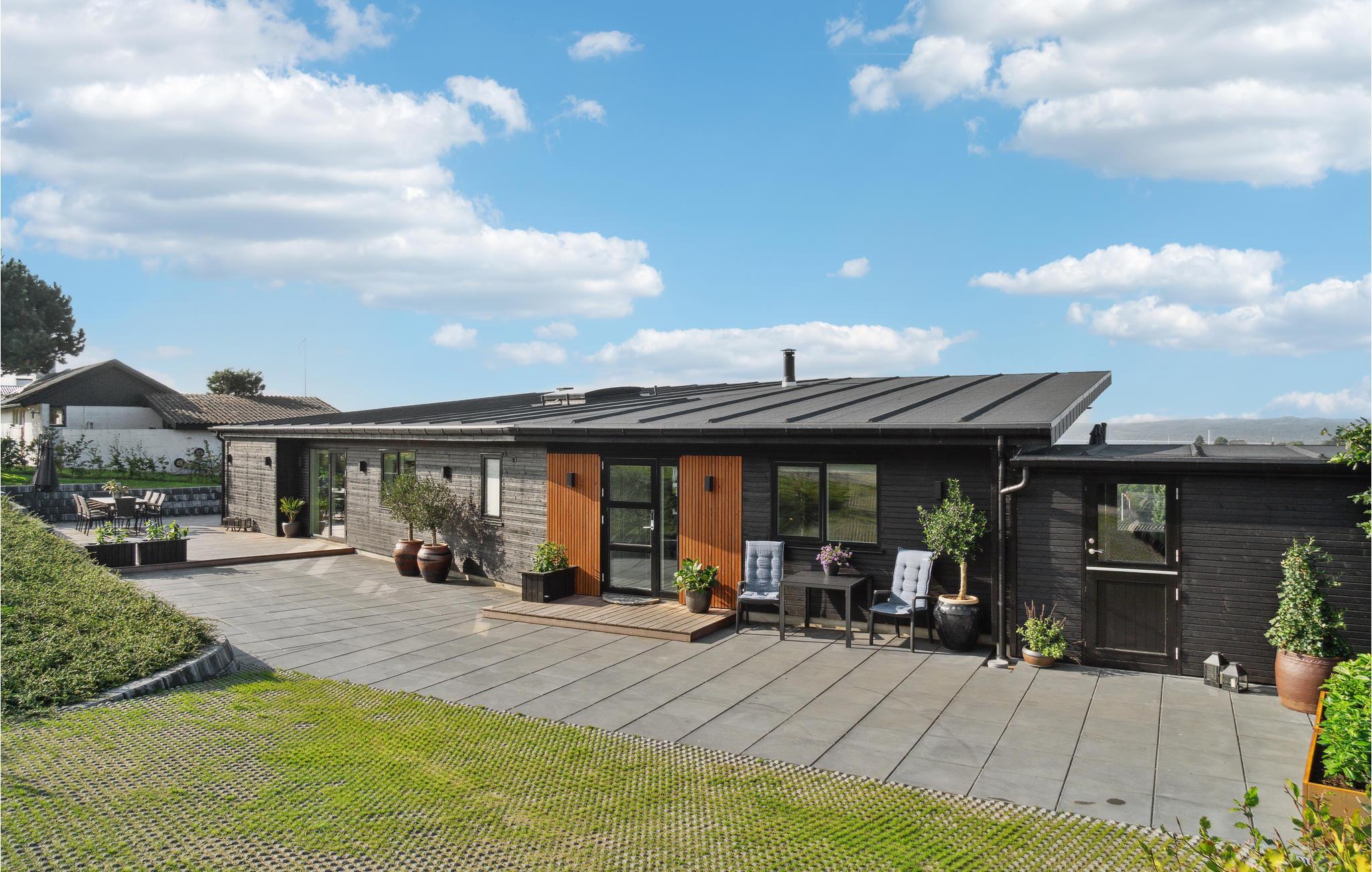 Velkommen til dette moderne og stilfulde feriehus med fantastisk panoramaudsigt over havet og udendørs wellness.