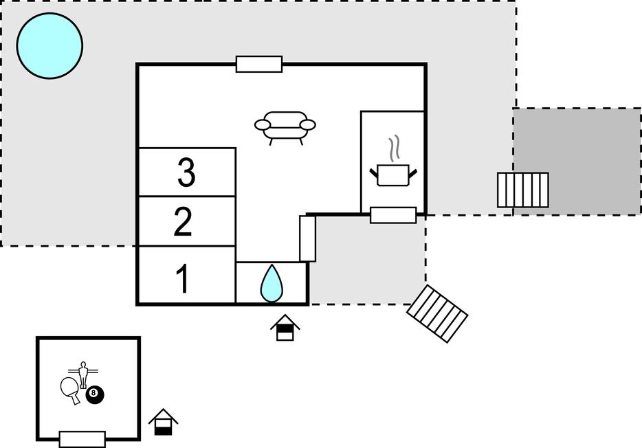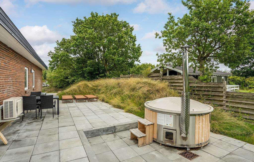 På terrassen er der en opvarmet solkrog med overdækning og dejlige loungemøbler. Vildmarksbadet er ren luksus på en kølig dag, og så kan I have det sjovt på græsplænen, hvor der er fodboldmål.