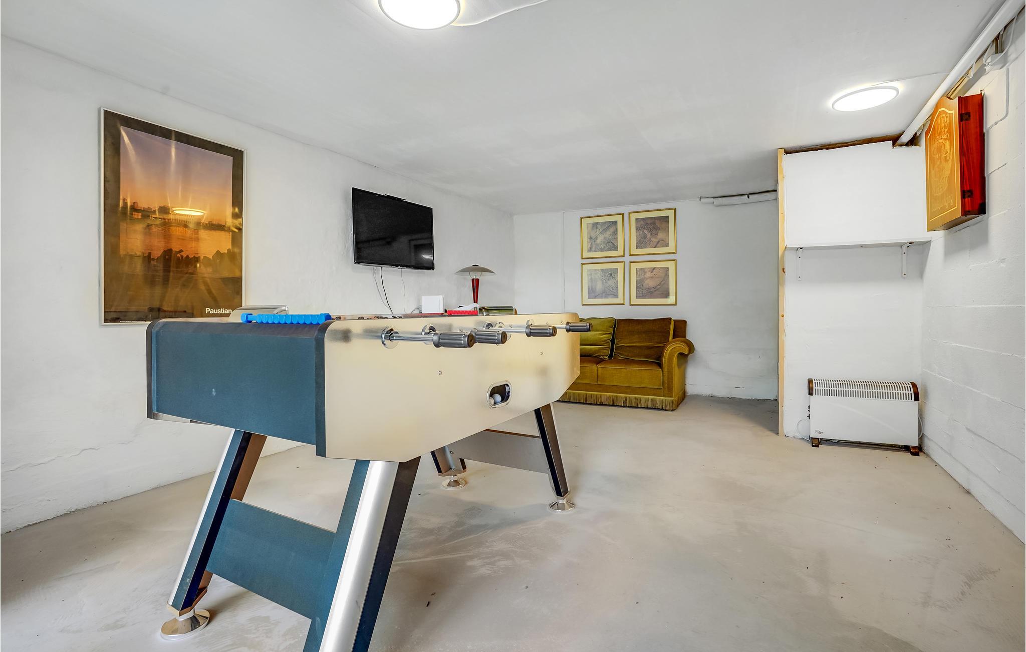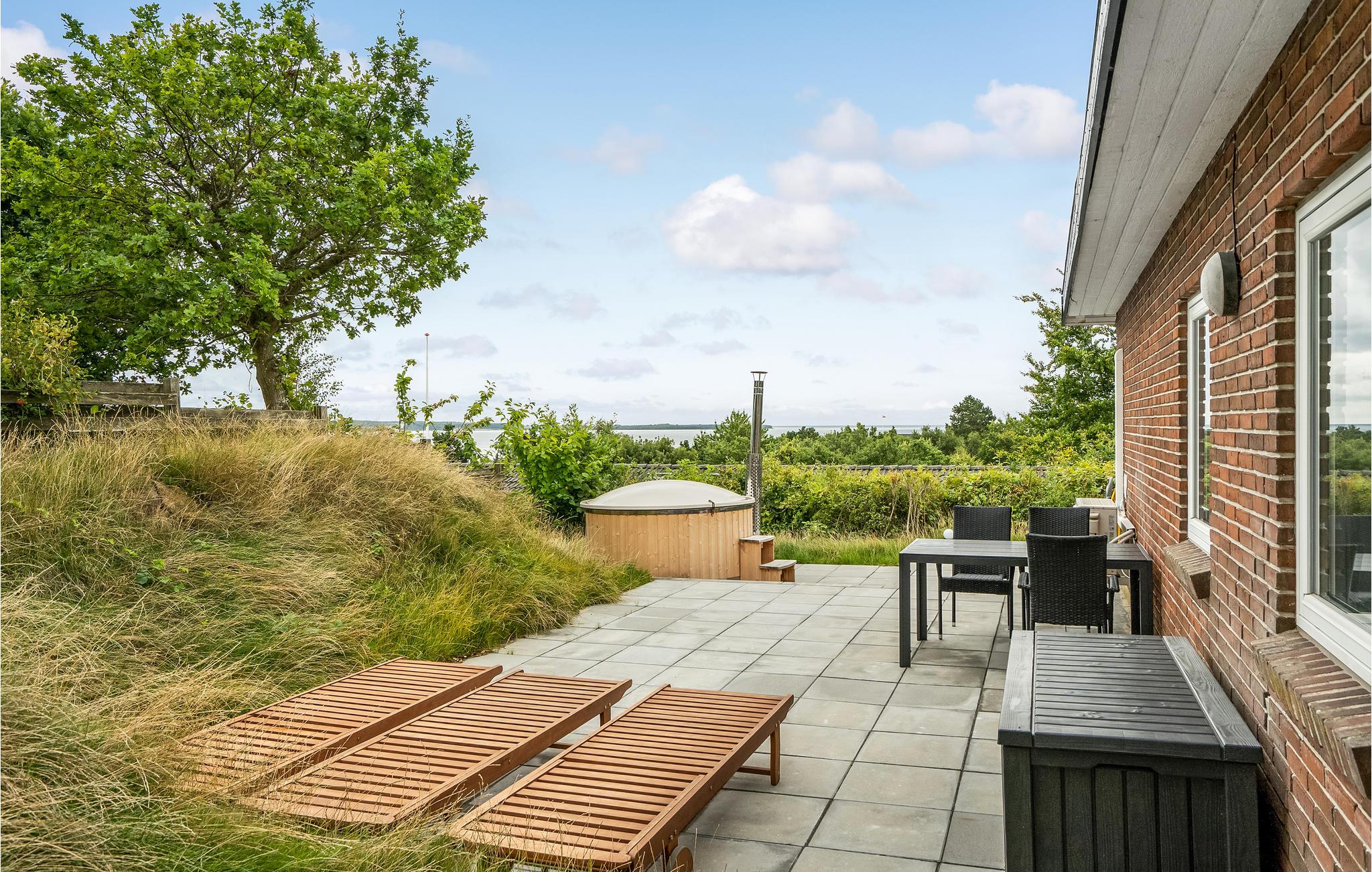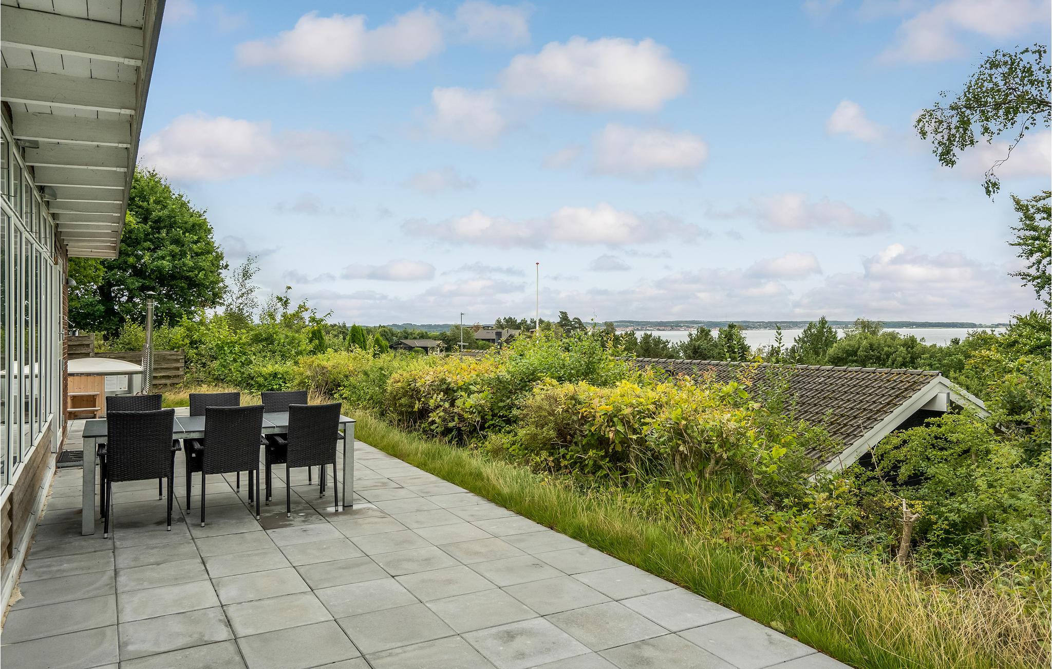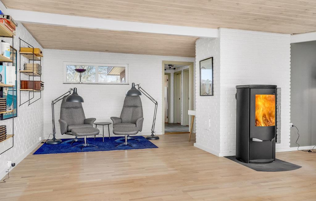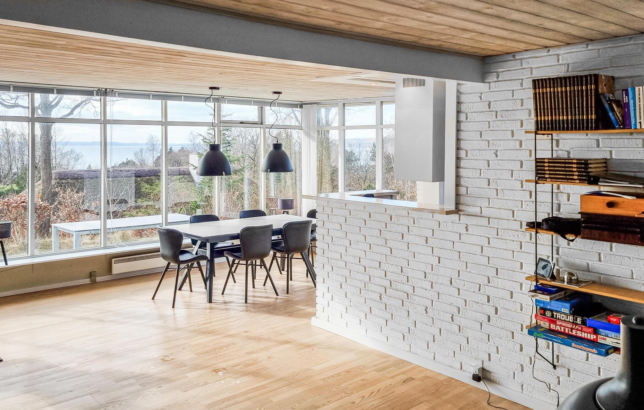 Det indbydende murstenshus har gulv til loft-vinduer i stuen, som lukker masser af lys ind og samtidig sørger I en ubrudt linje mod Ebeltoft Vig. Feriestemningen kommer derfor automatisk, og når I tænder op i brændeovnen, er der en ekstra hyggelig atmosfære. Der er separat indgang til kælderen, hvor I også finder et aktivitetsrum.
