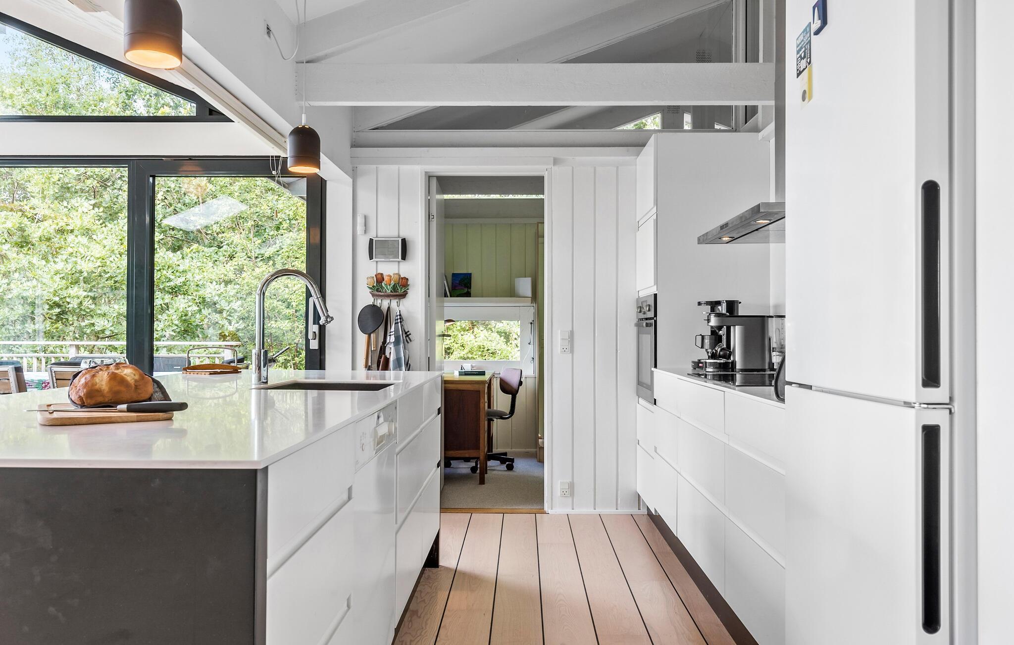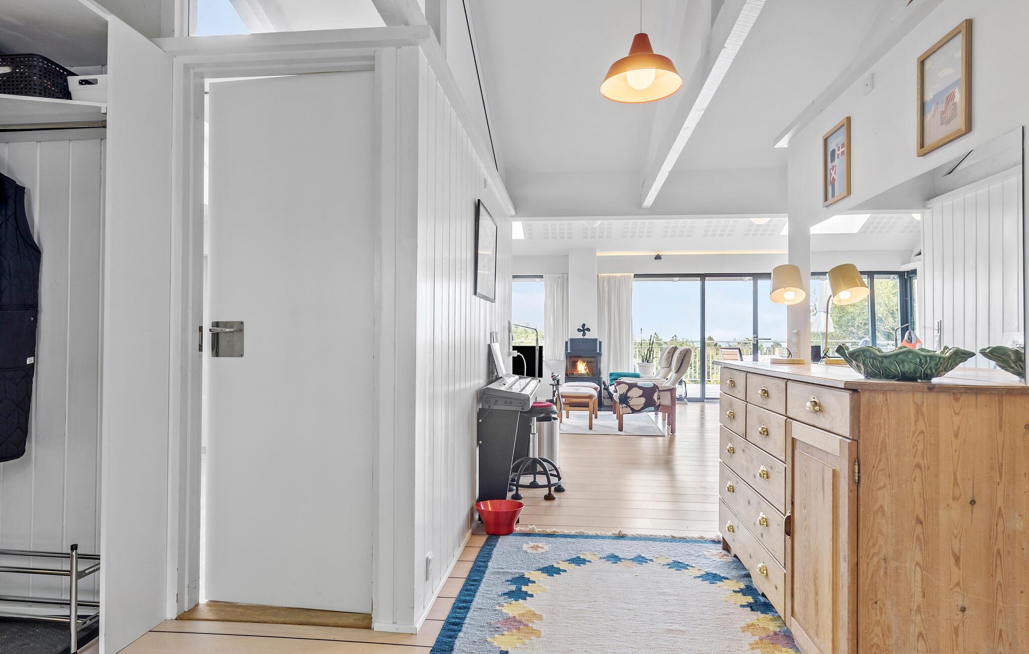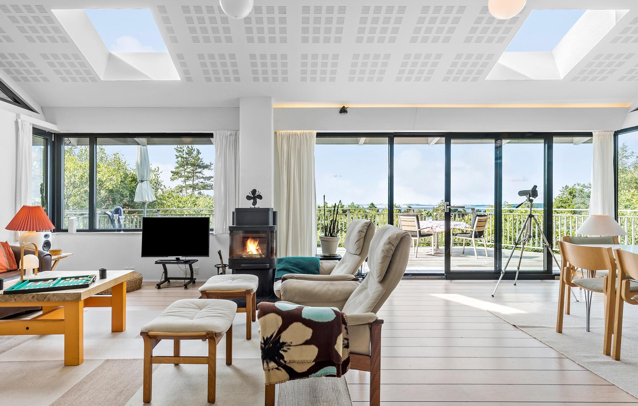 I får en perfekt oase i dette sommerhus ved Handrup Strand, som har en skøn stemning med brede vinduesfronter og en fantastisk udsigt over Ebeltoft Bugt. Boligen er lys, elegant og komfortabel, så her vil I straks føle jer hjemme. Den åbne udformning skaber en følelse af plads og høj komfort.