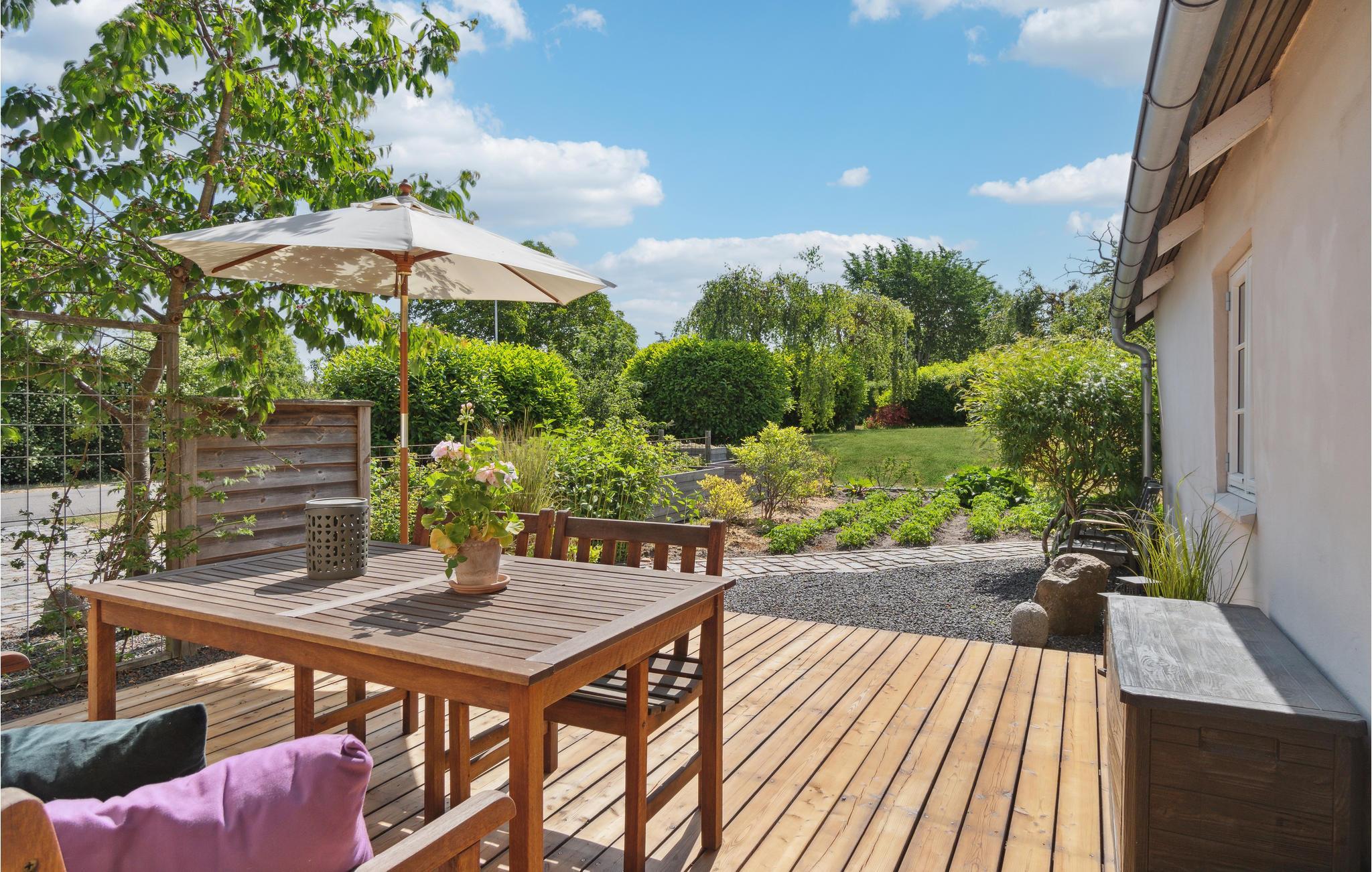 Velkommen til et dejligt stort hus, hvor der er god plads til hele familien. Her får I en velindrettet feriebolig med indbydende soveværelser og dejlige fællesarealer, hvor I kan slappe af sammen efter en lang dag på farten. Tænd op i brændeovnen på en kølig dag og sæt jer med brætspil, bøger og varm kakao, mens maden simrer på komfuret. I sommerhalvåret kan I dække op til dagens måltider udendørs og lade børnene boltre sig på græsplænen.