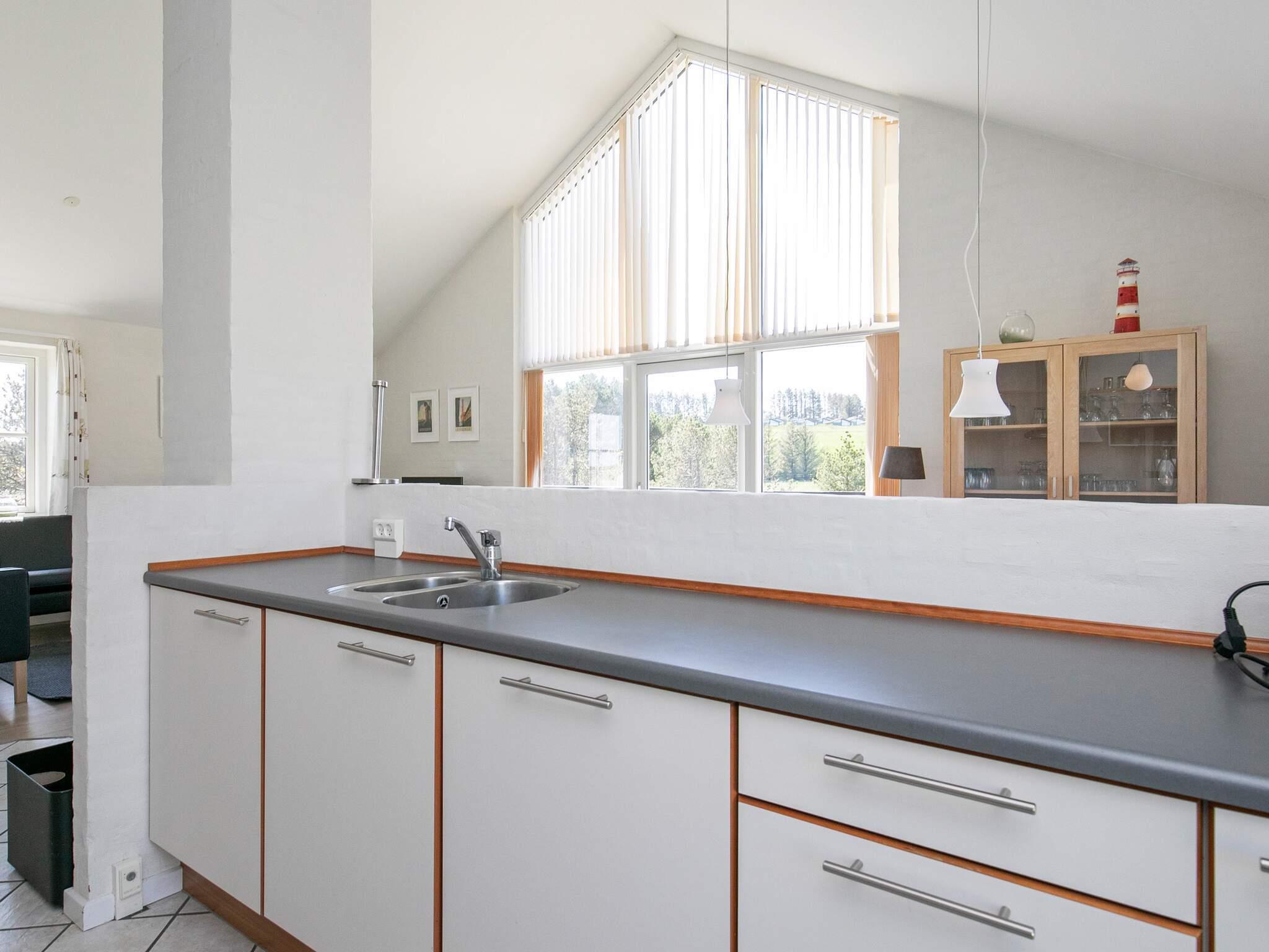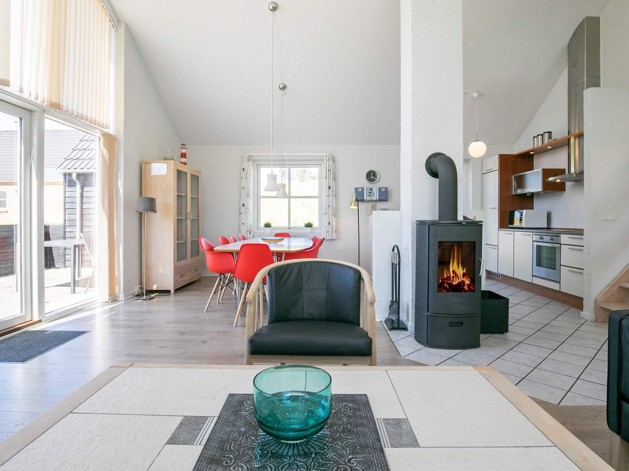 Stort 2-etages sommerhus beliggende ugeneret på en stor naturgrund ca. 600 m fra vandet med adgang gennem et ubebygget naturområde. Til huset hører et åbent terrasseareal med havemøbler. Indvendig er der vandskurede vægge, hvidmalede lofter samt trægulv i stuer og på værelserne. Stor forgang med opvarmet klinkegulv samt vaskemaskine og tørretumbler. To badeværelser med bruseniche og gulvvarme. Det ene er endvidere indrettet med 2-personers spabad. Stort køkken med bl.a. opvaskemaskine, mikroovn, varmluftovn, komfur med keramiske kogeplader, elkedel og fryser. Køkkenet er kombineret med opholdsstuen med brændeovn, tv med parabol (digital), dvd-afspiller og stereoanlæg med cd-afspiller samt udgang til sydvendt terrasse. Fra stuen fører en trappe op til 1. sal, der indeholder en stor stue med udgang til altan med udsigt over Vesterhavet. Husets sovepladser fordeler sig på 3 soveværelser med dobbeltseng i stueetagen. På 1. sal er der endvidere 2 enkeltsenge. Et godt sommerhus på alle årstider. Gratis adgang til badeland i Vigsø Feriecenter fra anden uge i februar og resten af året. Bemærk, at badelandet holder lukket fredag og lørdag i uge 37, 38 og 39 på grund af arrangementer.