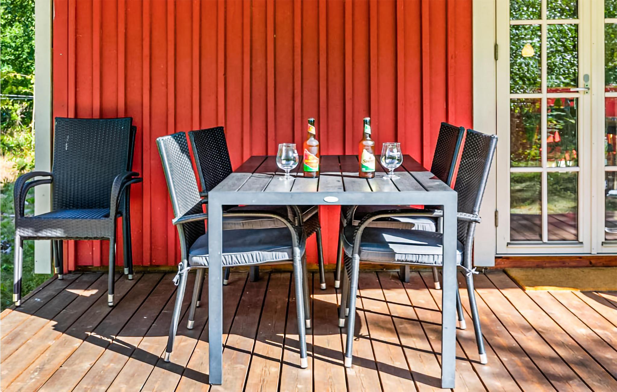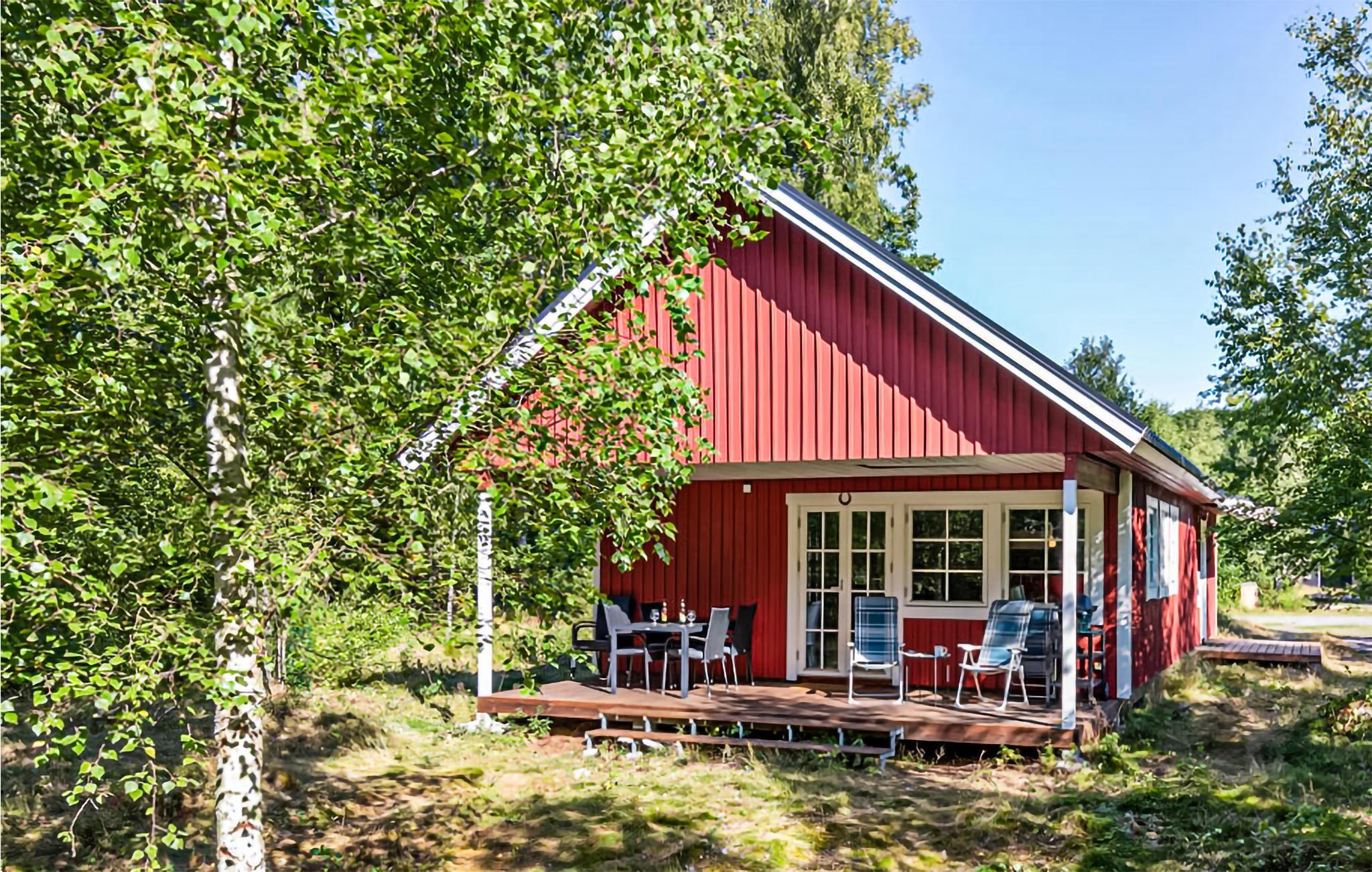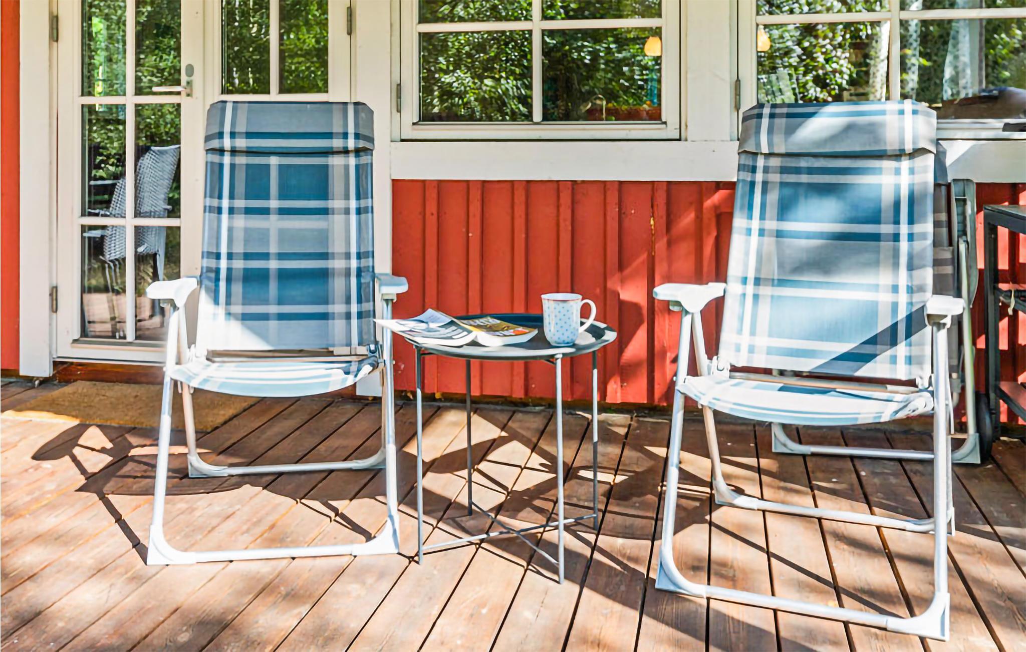 Hyggeligt træsommerhus nær børnevenlig strand med brændeovn, gratis WiFi og overdækket terrasse.