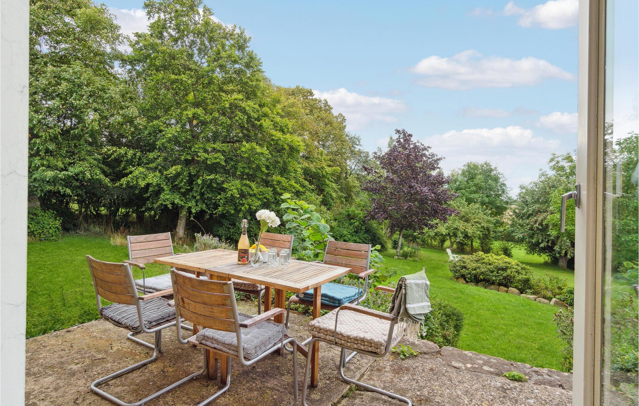 Dette indbydende feriehus er en oase for dem, der ønsker en fredelig og afslappende ferie med gode naturoplevelser. Huset har to etager. I stueetagen finder I en opholdsstue samt endnu en stue med TV og Apple-TV. Derudover er der et stort, åbent og veludstyret køkken med bl.a. brændeovn, et soveværelse med to enkeltsenge, et badeværelse med behagelig gulvvarme og badekar samt et bryggers med vaskemaskine. På 1. sal finder I tre store soveværelser og et gæstetoilet. Der er gratis trådløst internet i huset. Til huset hører en hyggelig have med frugttræer og to store terrasser med havemøbler og gasgrill, så I kan tilberede lækre feriemåltider og nyde de flotte solnedgange med et godt glas vin.
