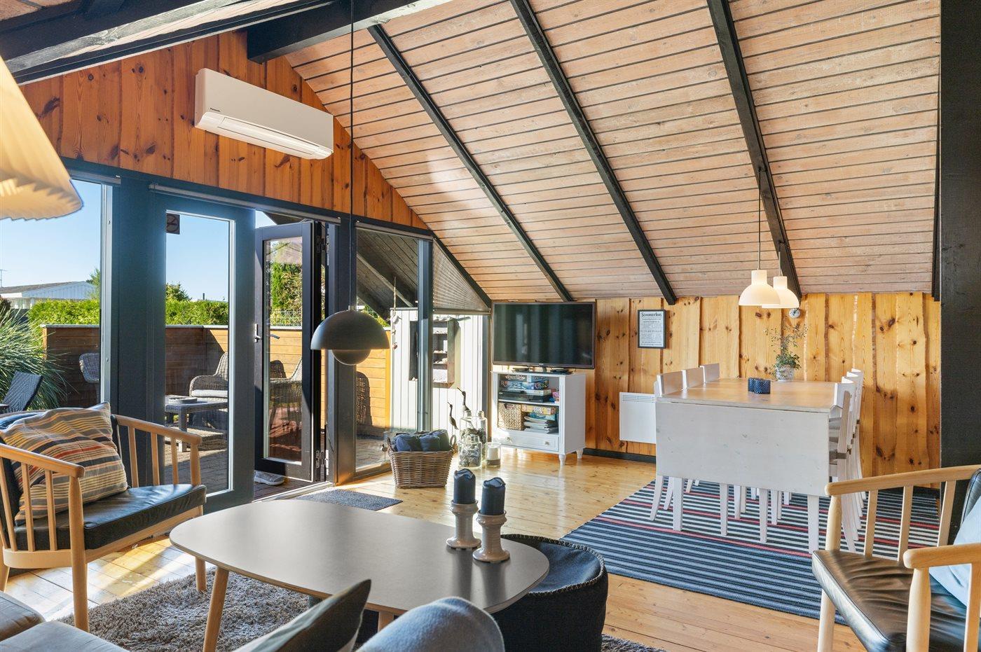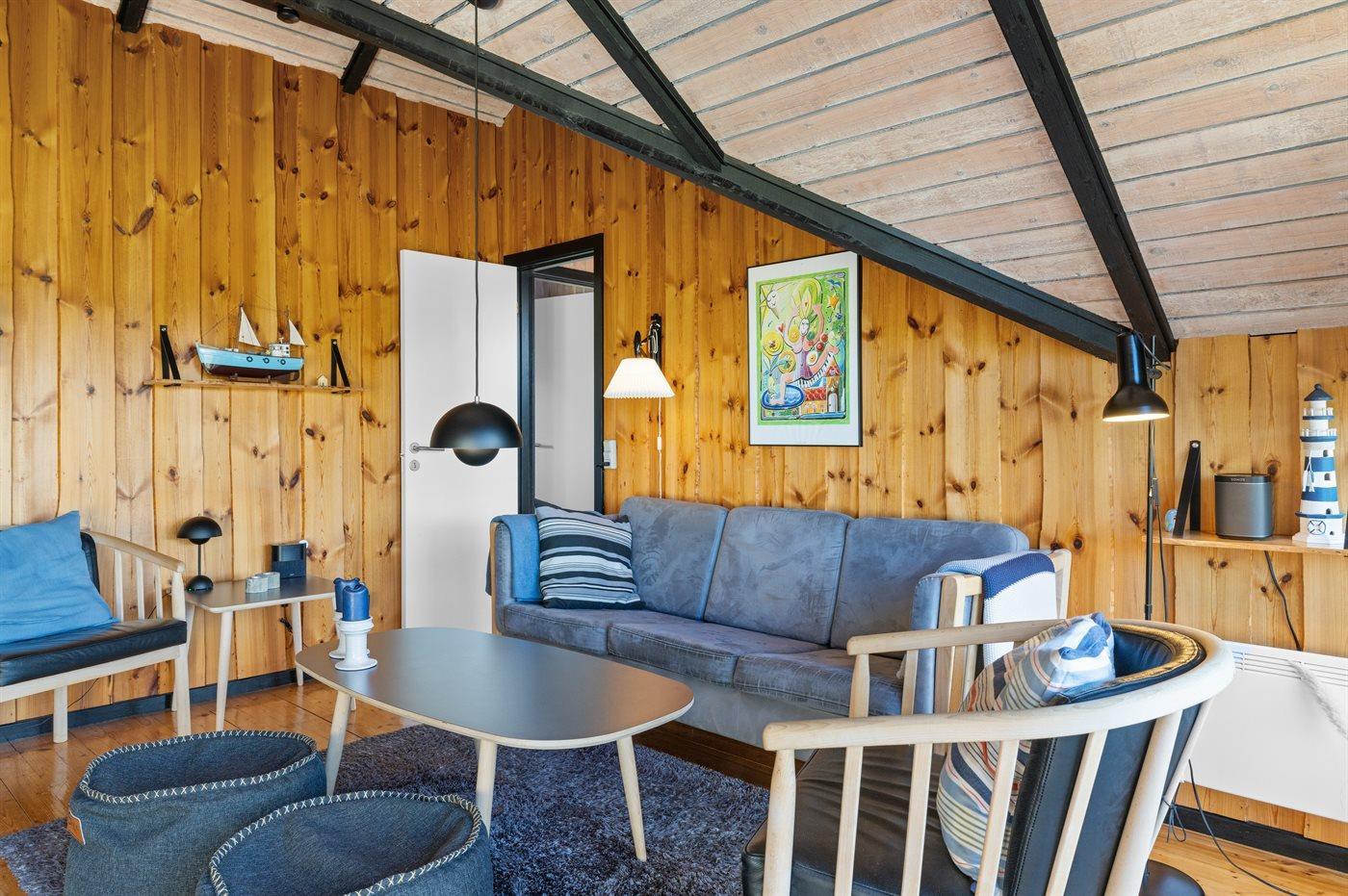 Huset er hyggeligt indrettet med ægte sommerhusstemning og er løbende moderniseret. Der er senest kommet nyt køkken. På grunden er der god plads til udendørs aktiviteter, og der er på en af terrasserne altid mulighed for at finde læ på selv blæsende dage.