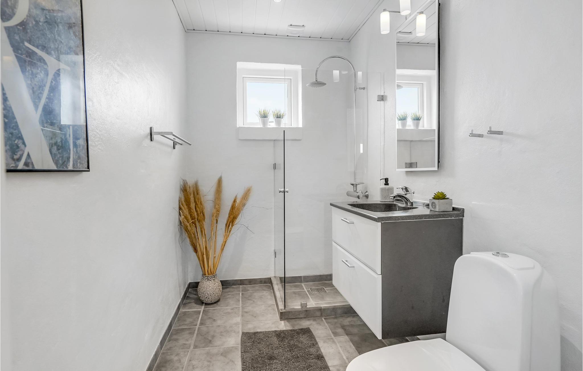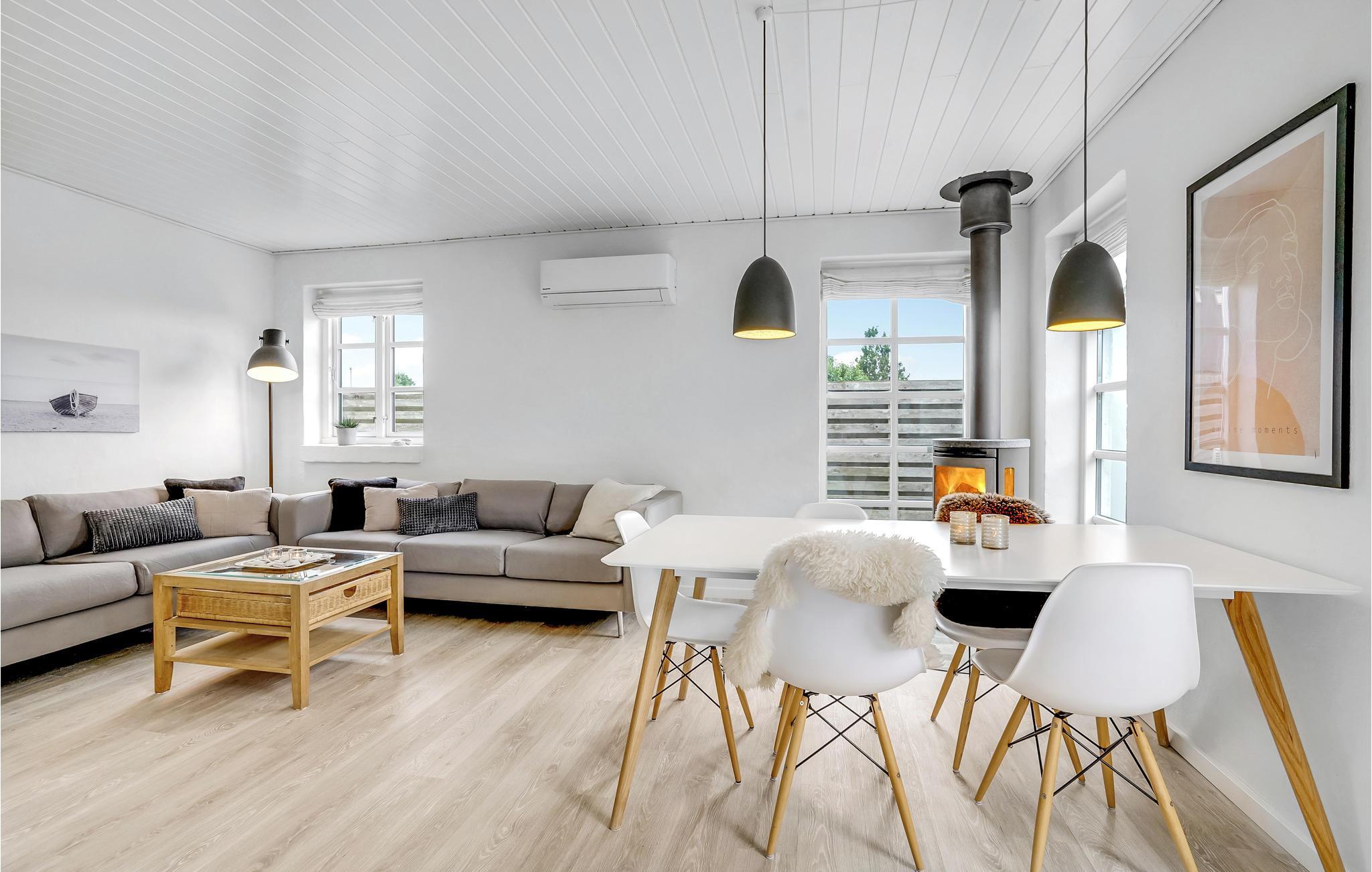 Glæd jer til at holde ferie i dette lyse, moderne indrettede sommerhus, som består af 2 soveværelse, 1 badeværelse, en hyggelig opholdsstue med spiseplads, som ligger i forlængelse af det åbne køkken. Udendørs finder I terrassen, hvor der er loungeområde og havemøbler, så i let kan nyde de lune sommeraftener, eller slappe af med en god bog i solen på en af liggestolene.