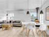 Moderne sommerhus kun 70 m fra sandstrand med terrasse, loungeområde og nær aktiviteter.