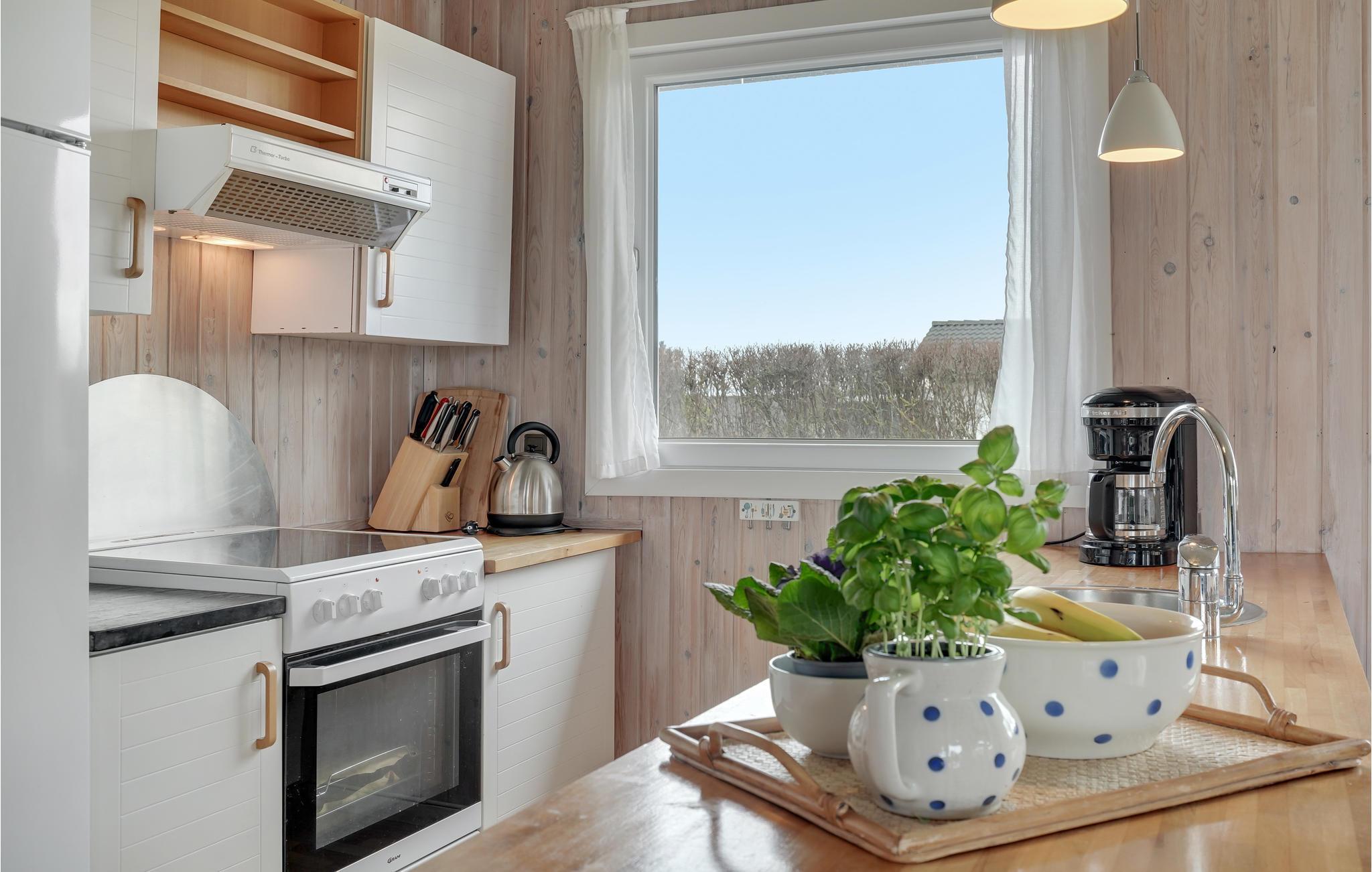 Velkommen i dette lyse, klassiske sommerhus. Loft, vægge og gulve er i træ, hvilket giver rummene en meget harmonisk og afslappende atmosfære. Her kommer I hurtigt til at føle jer godt tilpas. Huset byder på plads og hyggekroge, hvor I rigtigt kan komme i feriestemning. Sæt jer ved et af de fine borde og start dagen sammen over en afslappet morgenmad. Det behagelige sofahjørne er senere et godt sted at læse en god bog eller spille spil om aftenen.