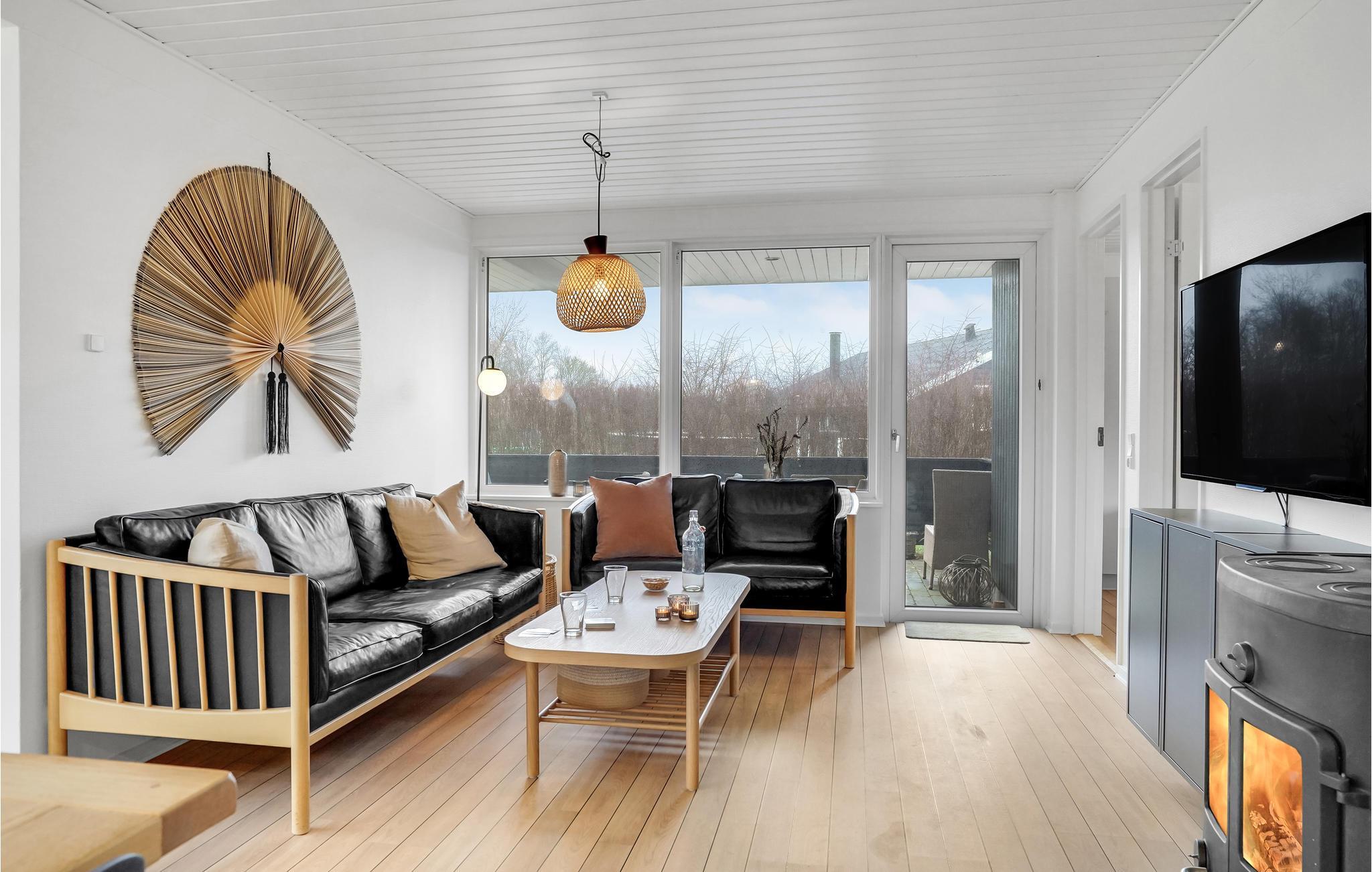 Dette hus fremstår rigtig flot og er indrettet med en kærlig hånd og sans for materialer og detaljer. Træpanelerne og mange stilfulde, dekorative elementer giver huset en behagelig atmosfære. Værelserne har fine trægulve undtagen i badeværelserne som har klinker og gulvvarme. Huset er nyistandsat og har to badeværelser, spa og sauna indenfor. Føl jer hjemme foran den knitrende ild fra brændeovnen eller på en liggestol i den store private have, mens børnene leger på græsplænen. Der er også en sandkasse og en gynge til de mindste. Grillen er også ideel til lune sommeraftener, hvor I kan lave mad udenfor og tilbringe kvalitetstid sammen.