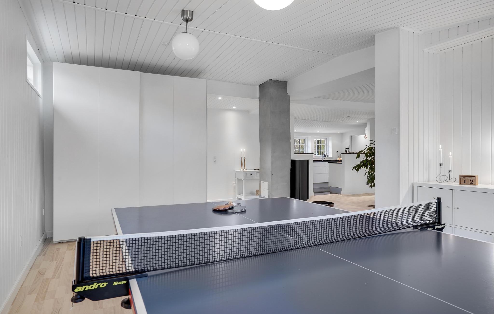 Her findes fire gode soveværelser, to badeværelser, et flot køkken/alrum, separat spisestue med udsigt ud over haven samt et større aktivitetsrum med bordtennis. Huset er opdelt således, at I kan følge med i aktiviteterne omkring bordtennisbordet på behørig afstand i sofaen foran brændeovnen, hvis der er brug for at lade batterierne op.