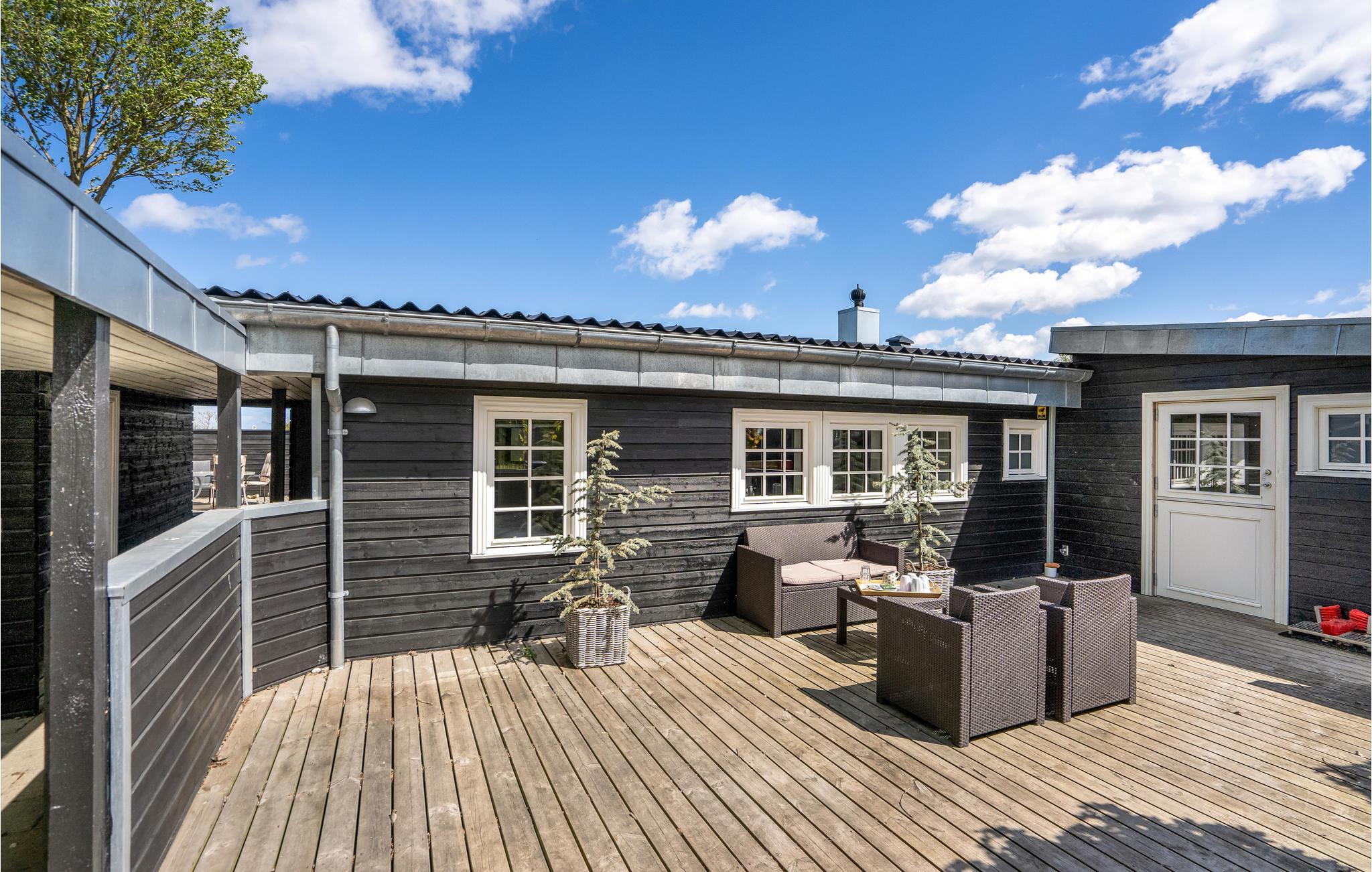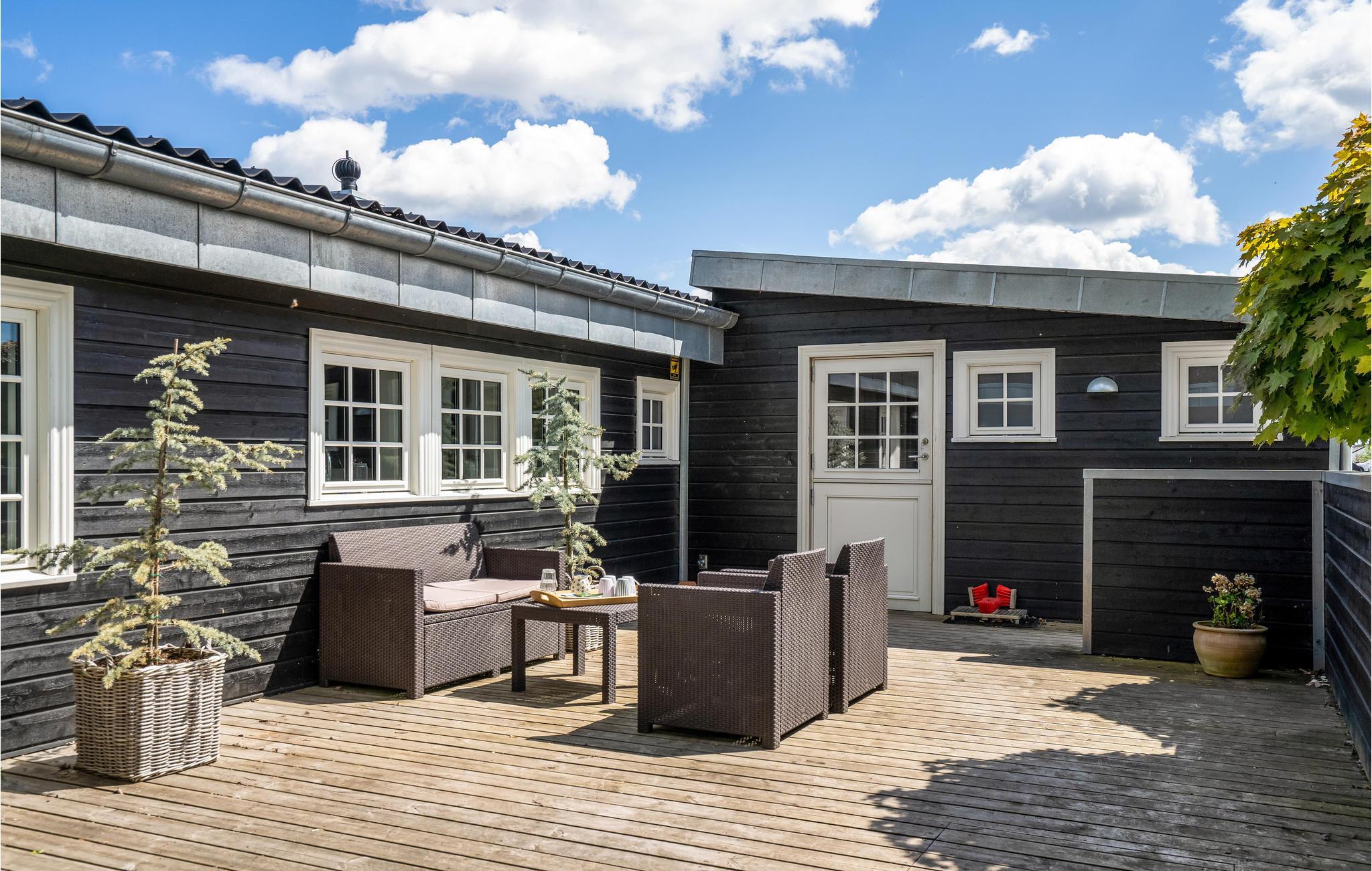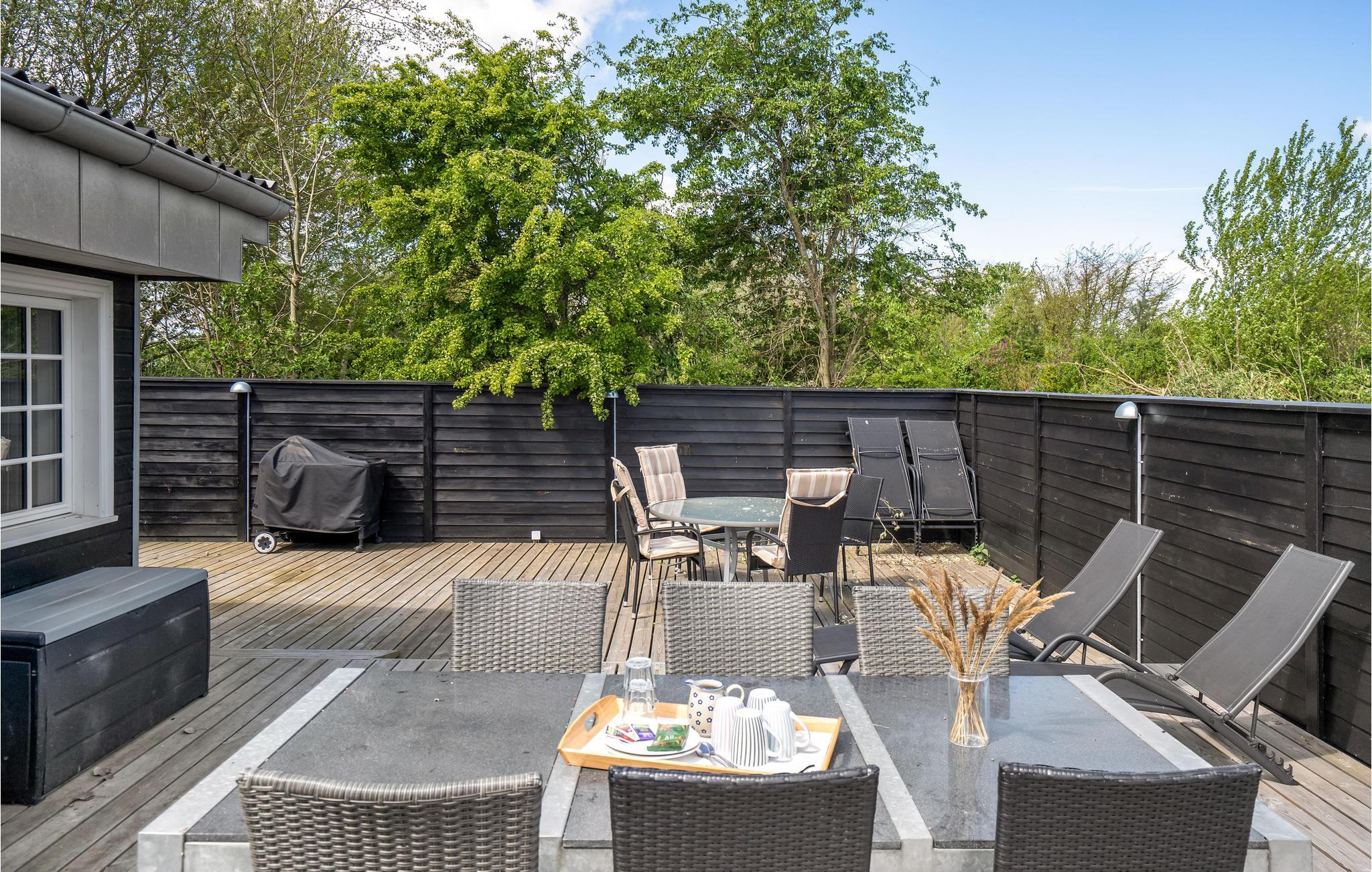 Flot, stort sommerhus nær Hasmark Strand med aktivitetsrum, flere terrasser og kort afstand til strand og faciliteter.