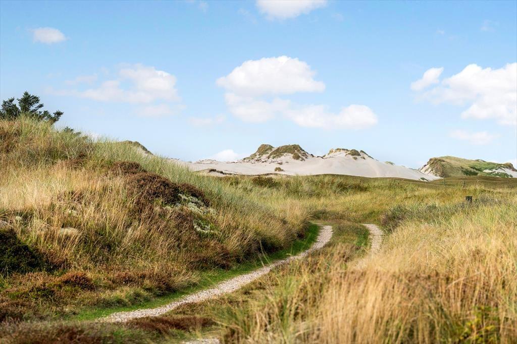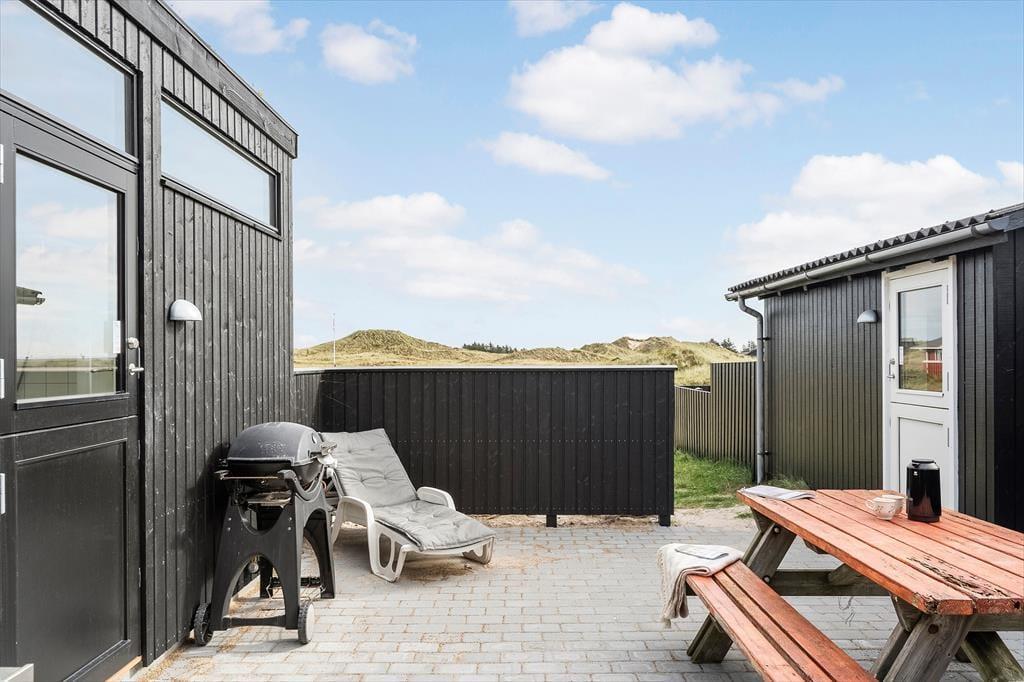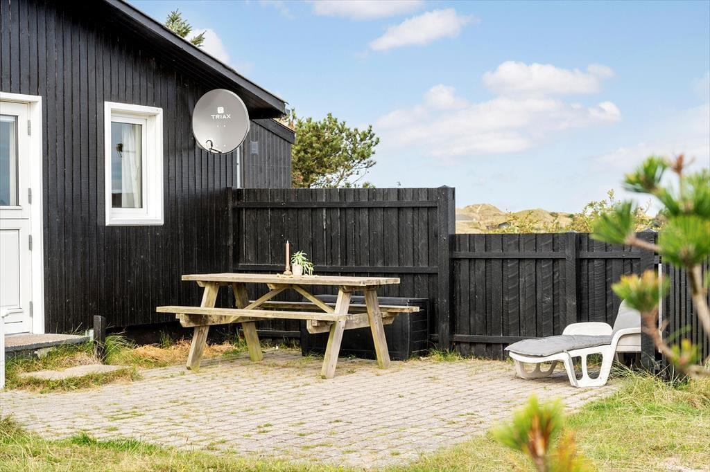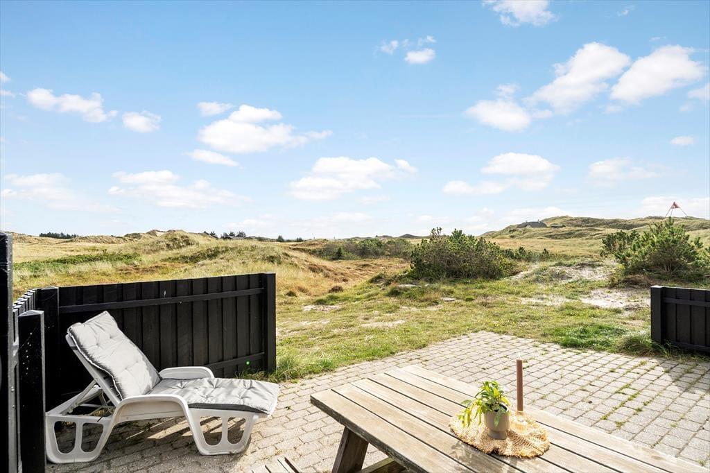 Herude er I omgivet af natur på alle sider – og helt fri for nysgerrige blikke. Sommerhuset ligger godt trukket tilbage fra vejen, og rundt om huset finder I flere terrasser, der giver jer mulighed for at finde læ, sol eller skygge dagen igennem. Udsigten til klitterne er intet mindre end magisk, og det hyggelige gårdmiljø danner rammen for alt fra stille morgenstunder med kaffe til lange aftener under åben himmel. Her er det let at sænke tempoet, mærke brisen fra Vesterhavet og bare være til stede.