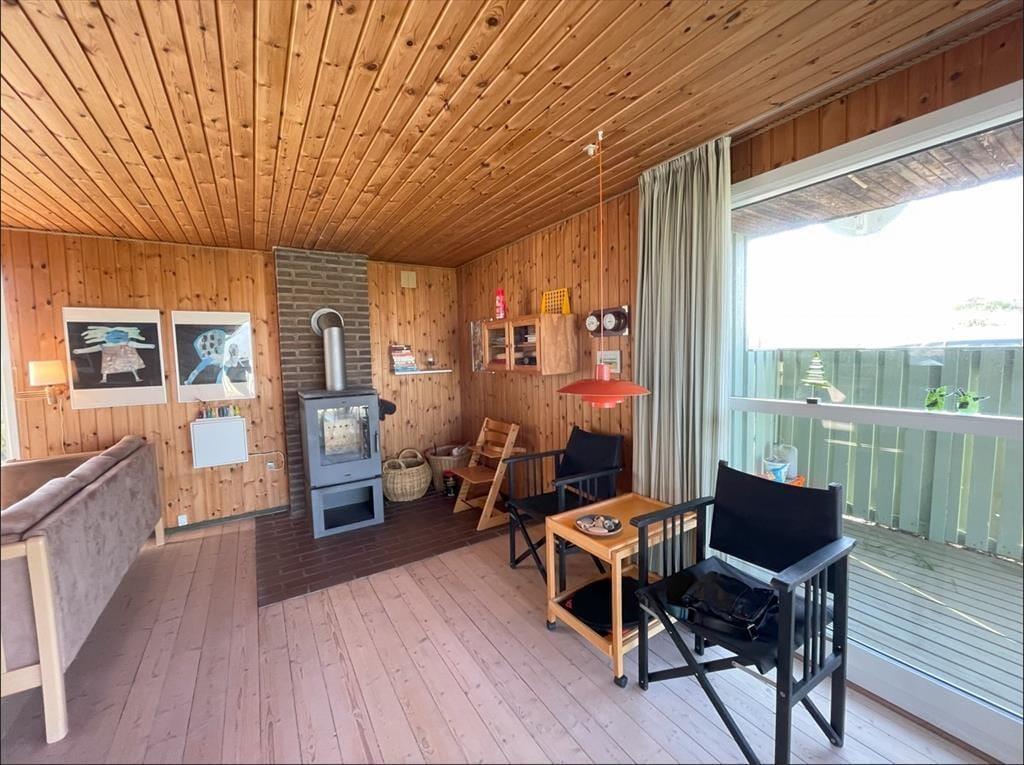 Sommerhus i Haurvig, Vestjylland, med plads til 6 voksne. Der er en hyggelig indretning med bl.a. brændeovn, og du finder desuden opvaskemaskine i boligen.