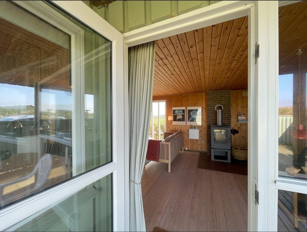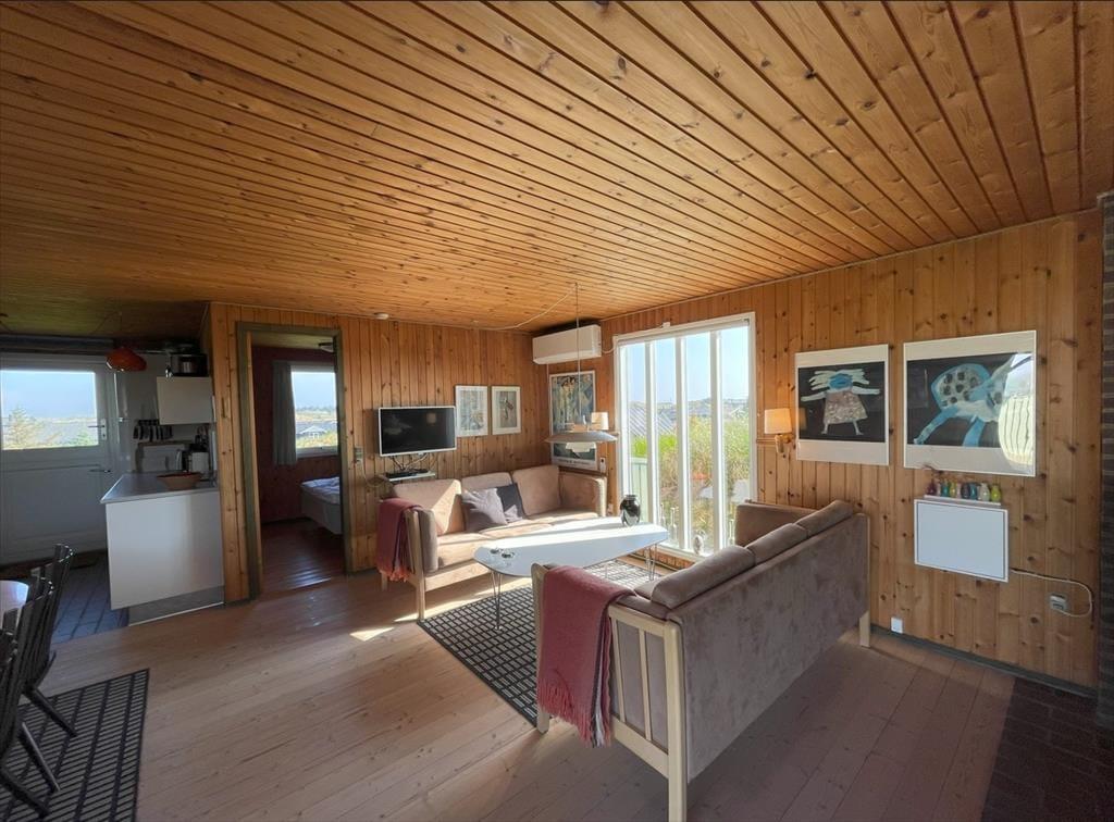 Hyggeligt sommerhus i Haurvig med sauna, brændeovn og 0 meter til strand, perfekt til en afslappende ferie ved Vestkysten.
