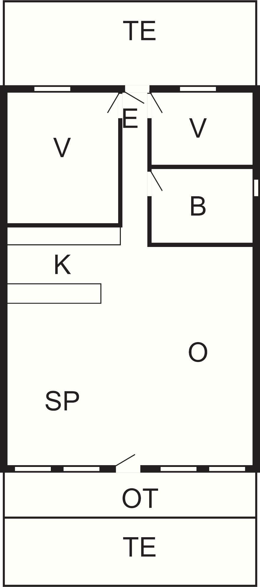 2 Soveværelser: (1DS)+(2K), barneseng
