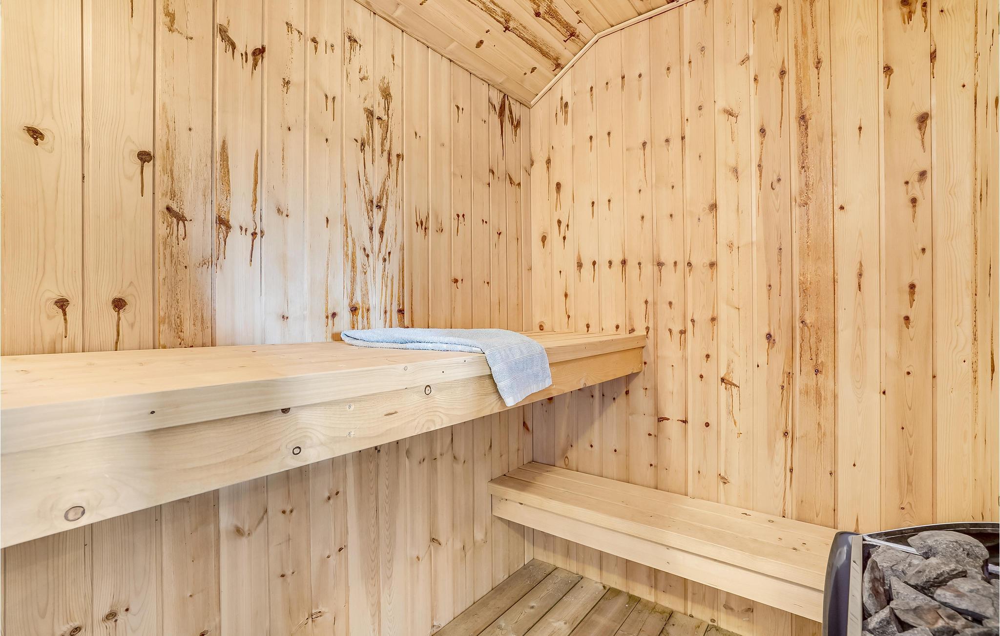 Lækkert feriehus i Haurvig tæt på Vesterhavet med sauna, spabad og moderne faciliteter i naturskønne omgivelser.