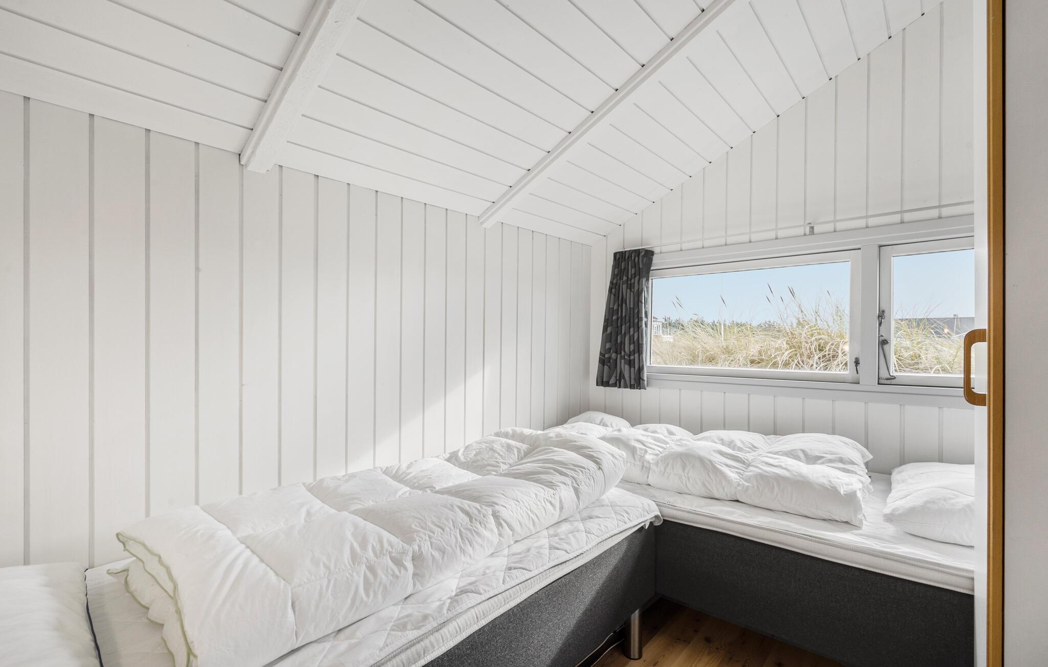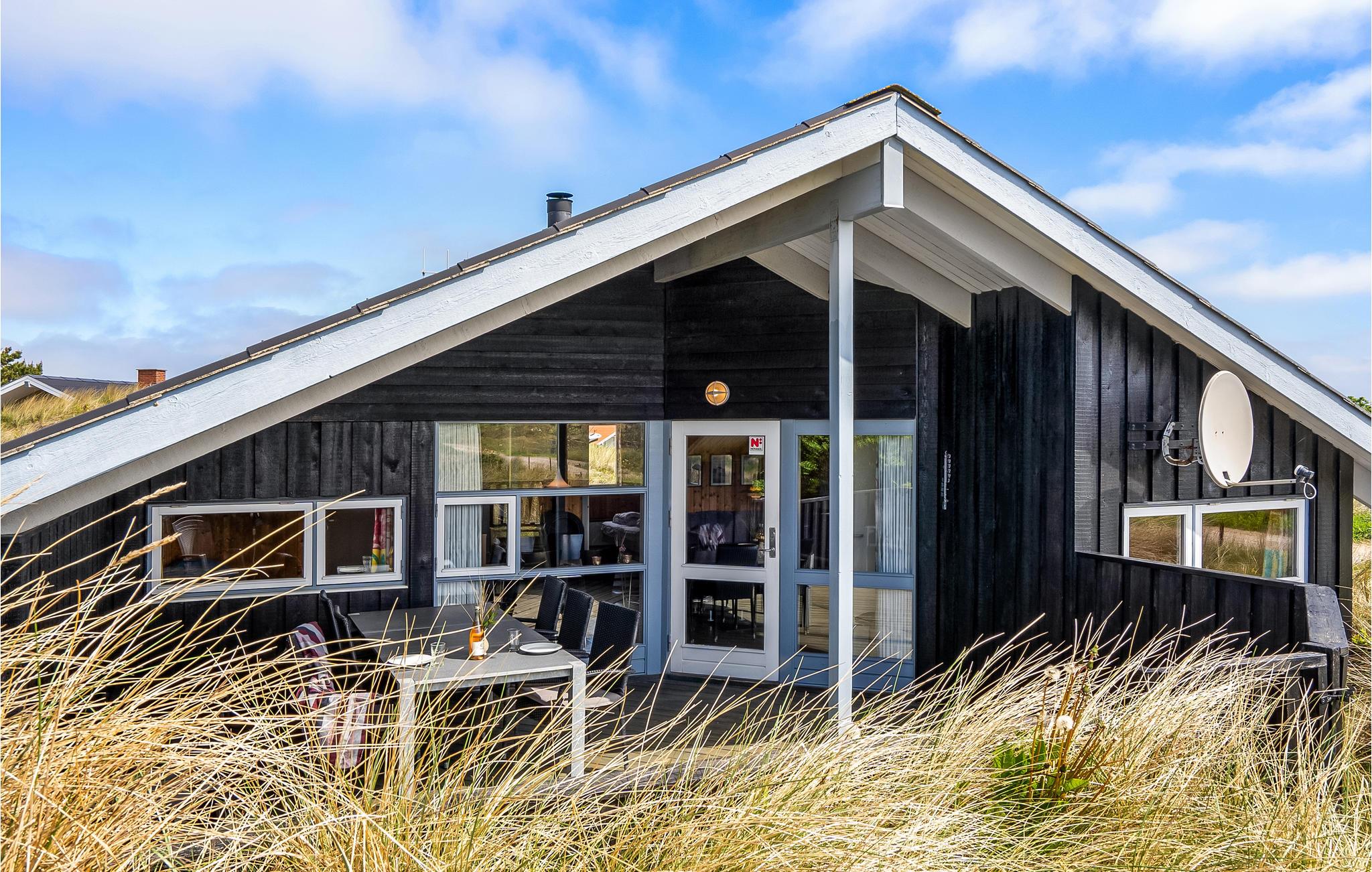 Velkommen til dette indbydende hus, som ligger på en stor klitgrund i gåafstand fra Vesterhavet. Indretningen er lys, åben og indbydende, så alt lægger op til at slappe af og nyde den helt særlige vestjyske feriestemning. Læn jer tilbage i spabadet og saunaen efter en frisk gåtur på stranden. Efter dagens eventyr kan I finde jer til rette i de bløde møbler og nyde skønne udsigt. Hvis I trænger til at få varmen tilbage i fødderne efter gåturen, kan I tænde op i brændeovnen.