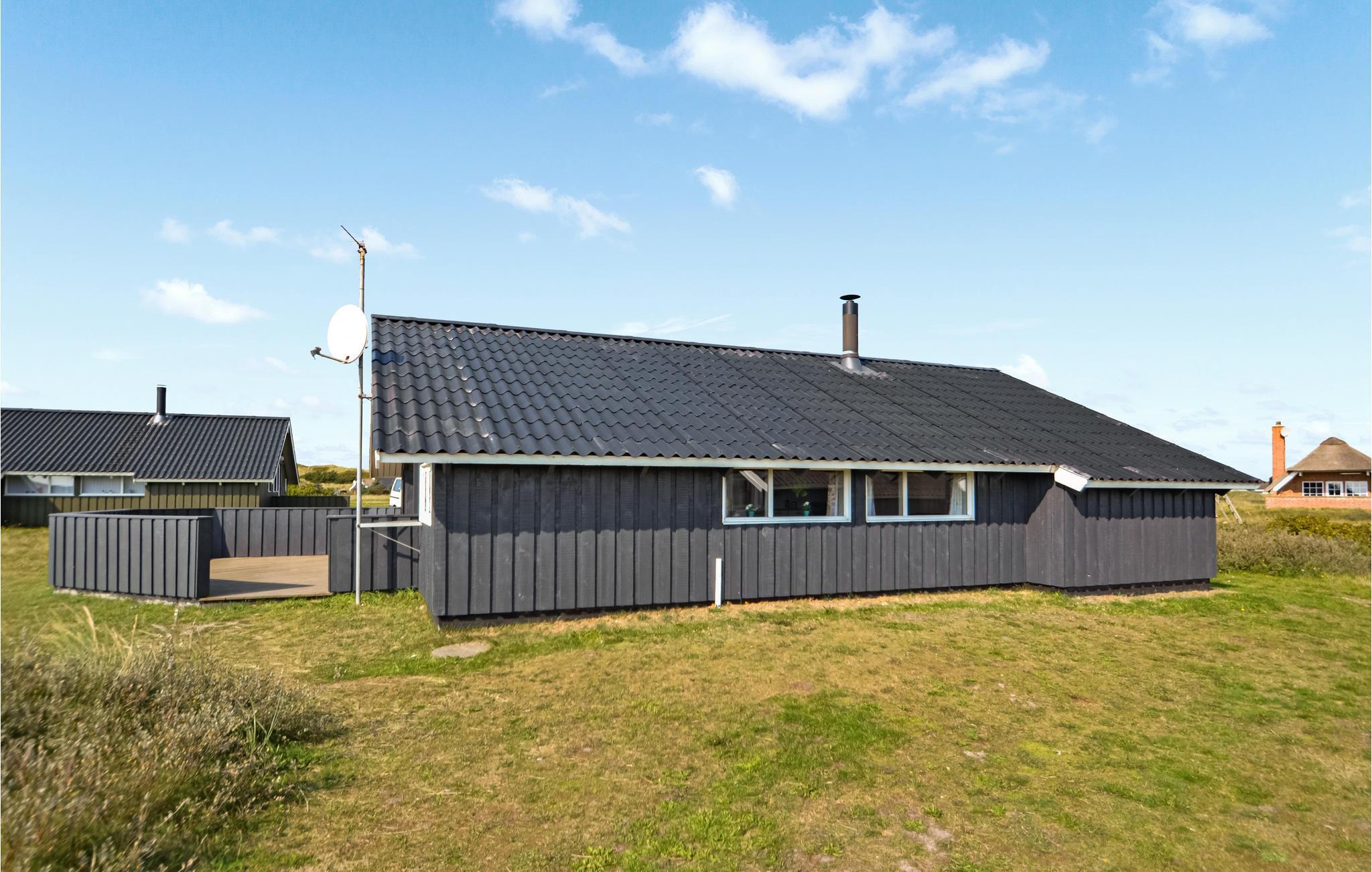Velholdt og hyggeligt feriehus på naturgrund. Det er lyst og venligt indrettet og har stuen som centrum for feriens hyggelige stunder. Der er to gode terrasser ved huset, hvoraf en stor del af den sydvendte er overdækket. Fra den sydvendte terrasse er der udsigt over mod ridecentret og klitterne og mod øst kan fjorden lige skimtes. Den dejlige strand og de store, fredede klitområder kan nydes til fods eller cykel og efter en dag i den friske vesterhavsluft, kan I afslutte dagen med en tur i spabadet eller saunaen.