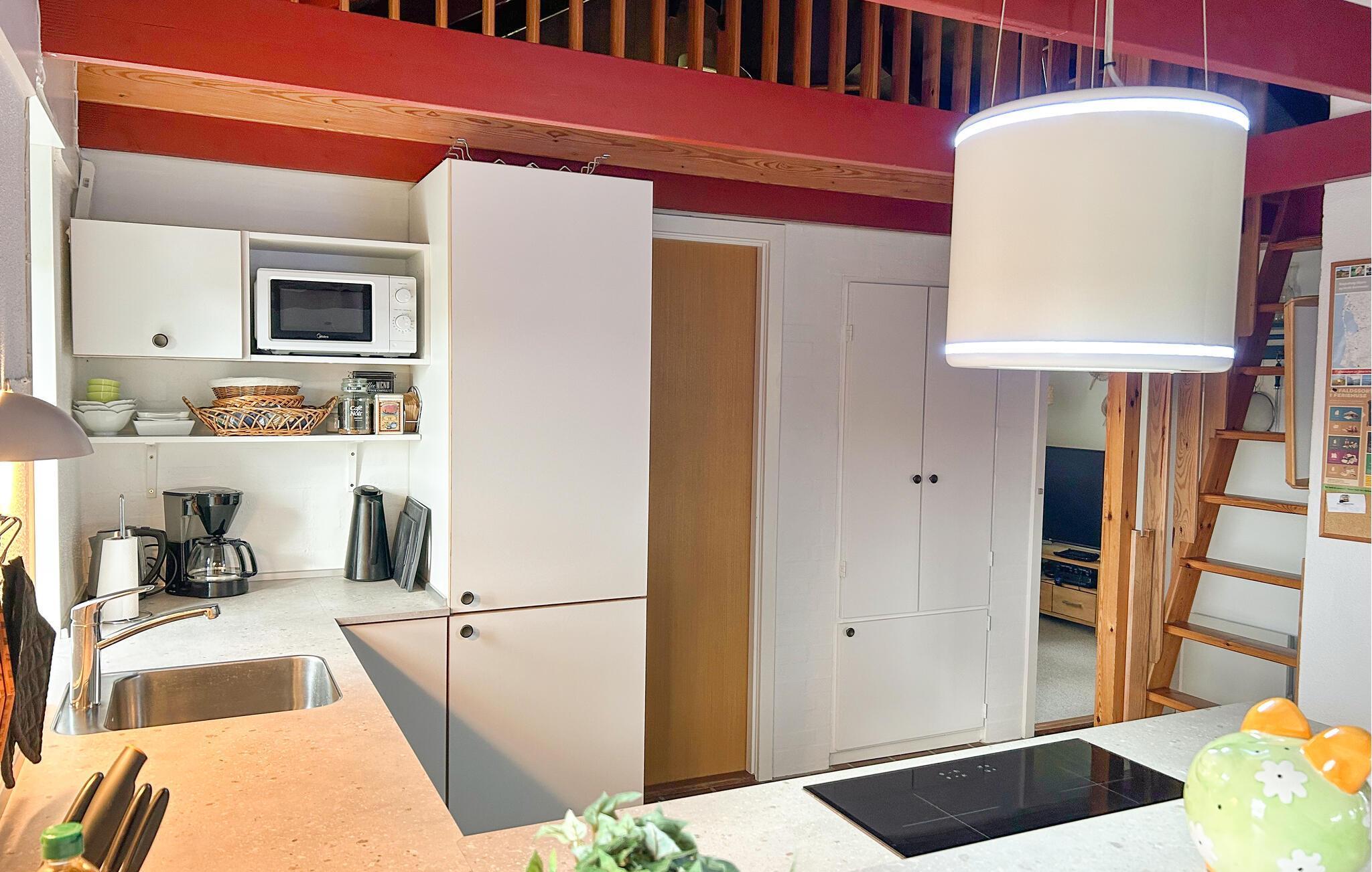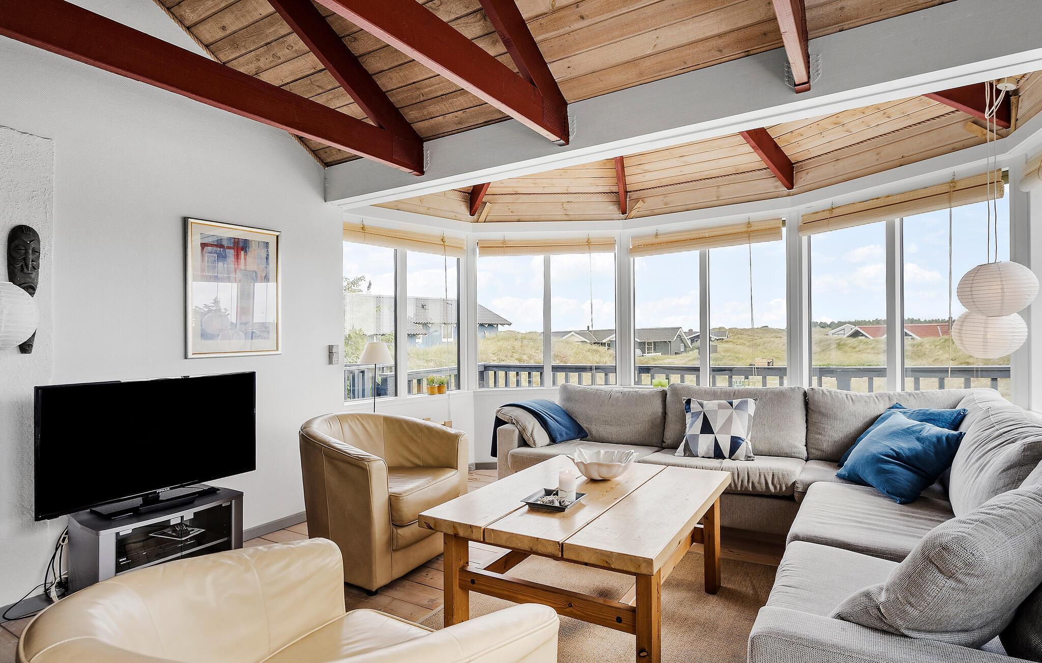 Der er lagt op til en skøn ferie tæt ved Vesterhavet i denne charmerende feriebolig. Her venter jer en varm og hjemlig atmosfære, der understreges af træbjælkerne, de store vinduespartier og det åbne rum, der er husets hjerte. Her kan familiens amatørkokke folde sig ud i køkkenet, mens andre hygger sig med en god bog, en podcast eller en krydsogtværs i sofaen.