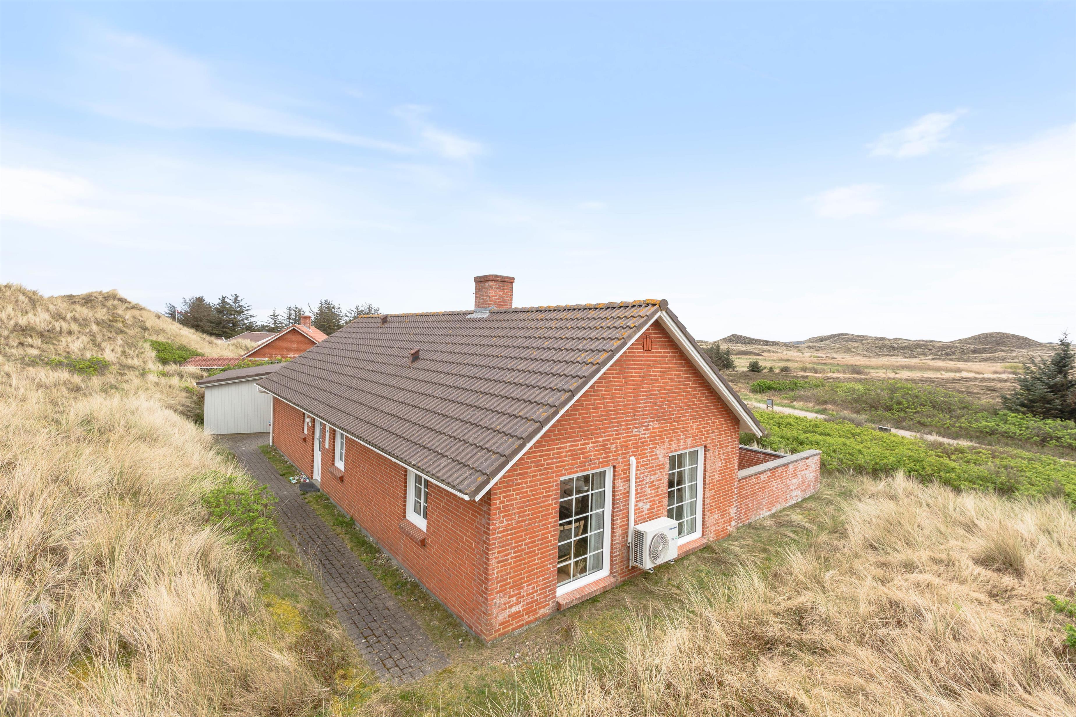 Er du til åbne vider, udsigt til klitter så langt øjet rækker og komfort, så er dette personlig indrettede feriehus noget for dig. Tag familien og hunden eller jeres gode venner med på en skøn ferie i et sommerhus med wellness og en fantastisk udsigt. Feriehuset er opført af en anerkendt lokal håndværker og er meget solidt og velindrettet med gode gennemtænkte løsninger både ude og inde.