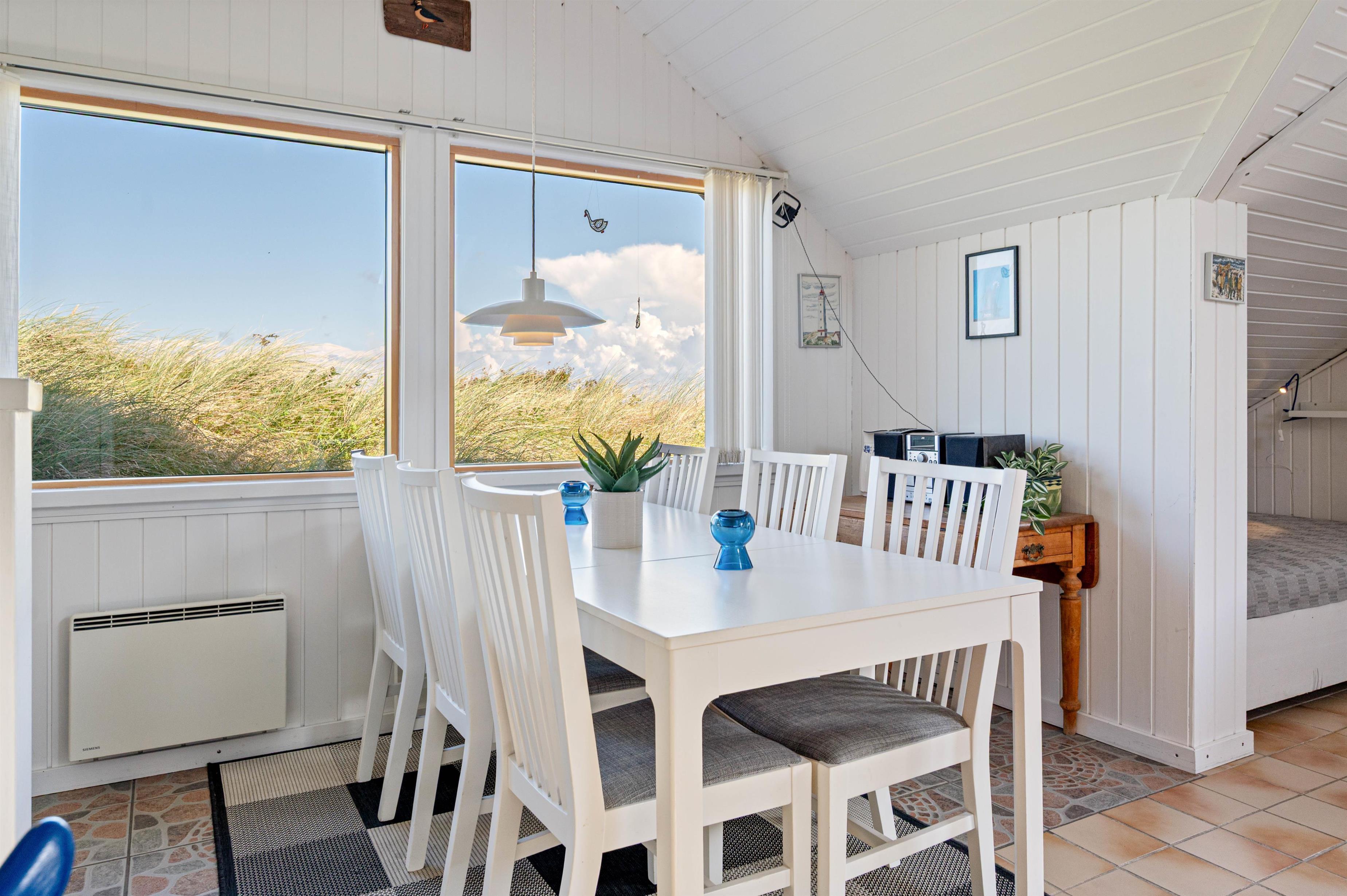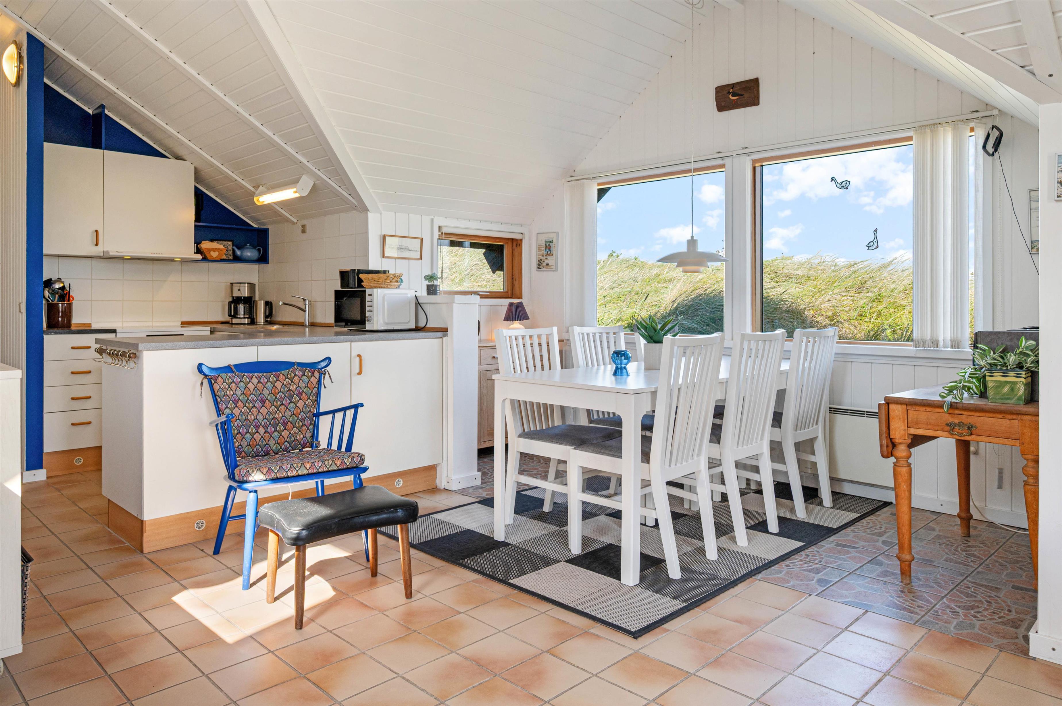 Sommerhuset på Tornbjerrevej 6 er indrettet til 5 personer (og 2 hunde). Så snart I træder indenfor, vil I blive budt varmt velkommen af de lyse farver og små, personlige dekorationer, som tilsammen skaber en hyggelig og imødekommende ferieatmosfære.