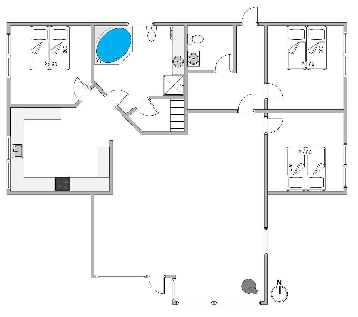 I sommerhuset er der plads til 6 feriegæster, som kan fordele sig på 3 soveværelser. Alle soveværelser er udstyret med dobbelsenge, hvor I kan lade batterierne op med en god nats søvn inden næste dages aktiviteter. Badeværelset indeholder både sauna og spa, hvor I kan varme kroppen igennem efter en gåtur med hunden langs stranden, når vinden suser til efteråret. Der er derudover et gæstetoilet i sommerhuset, så der ikke opstår en lang kø om morgnen.